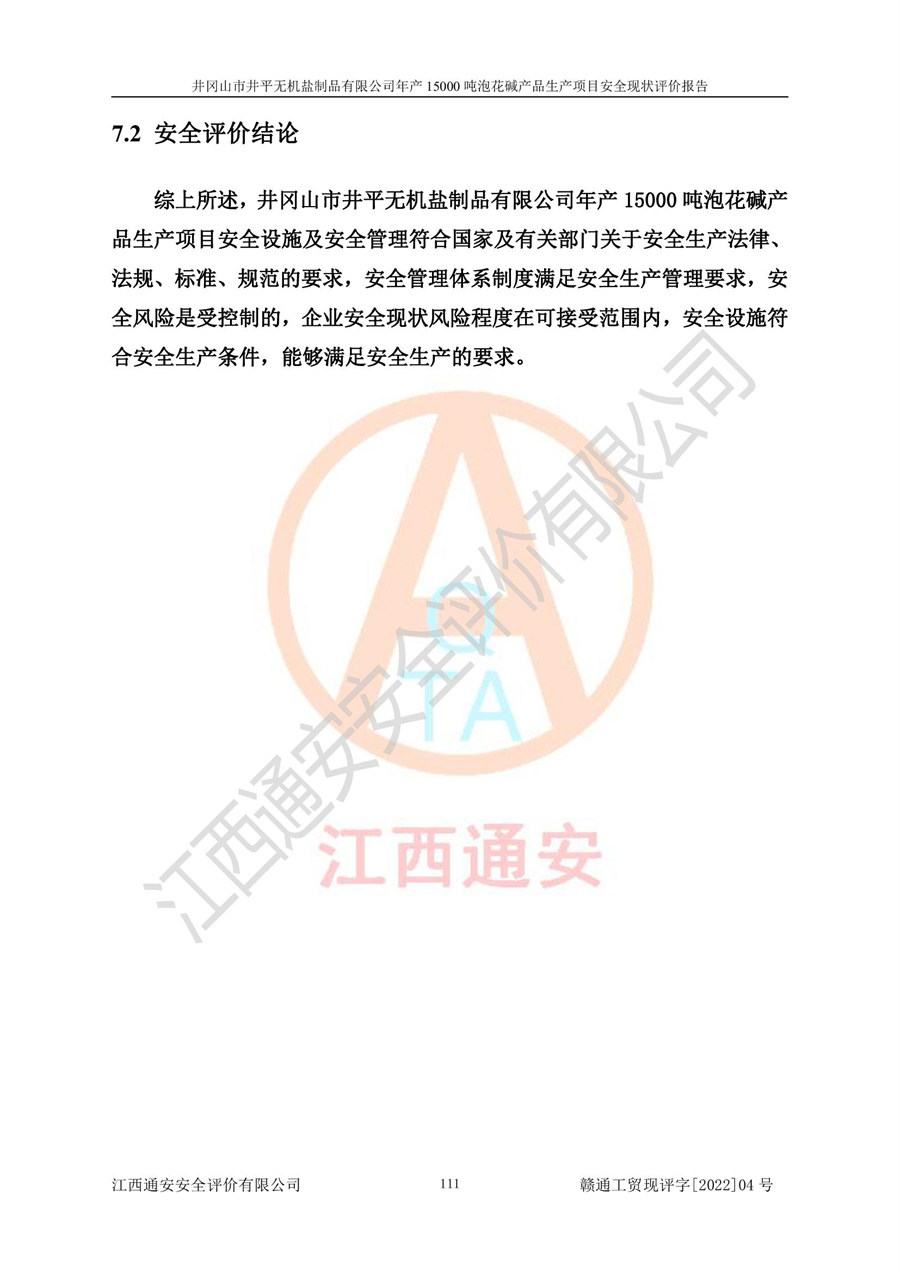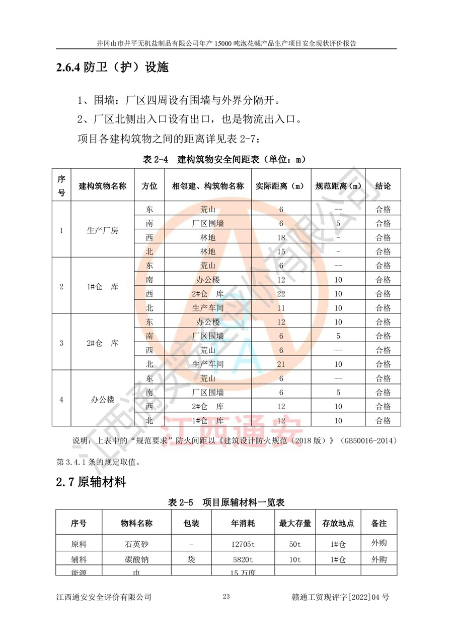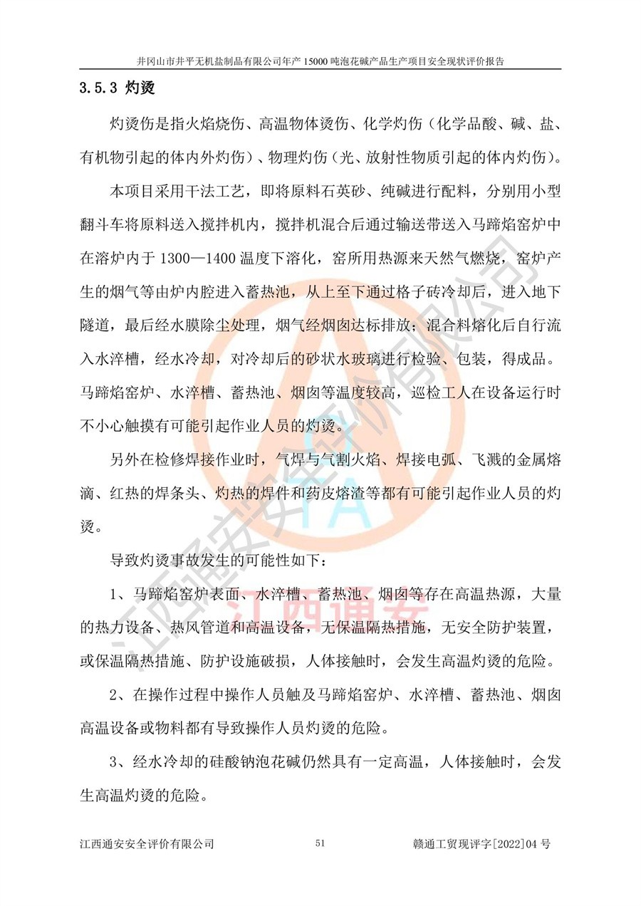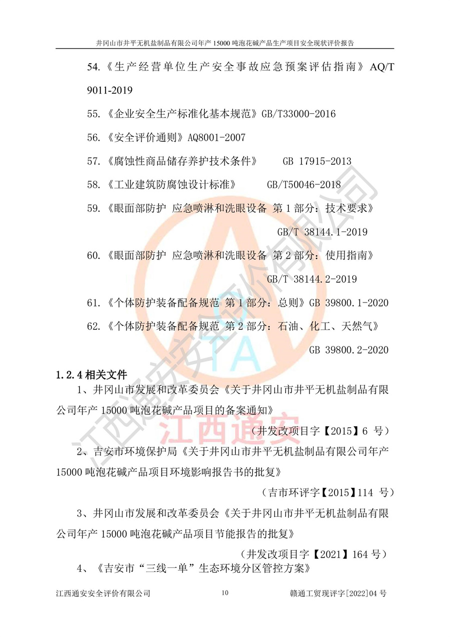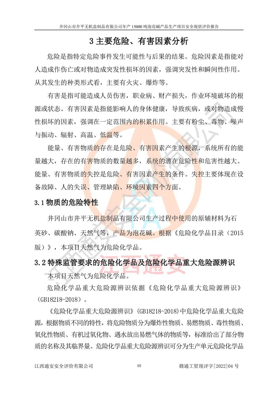 井岡山市井平無機鹽制品有限公司年產(chǎn)15000噸泡花堿產(chǎn)品生產(chǎn)項目安全現(xiàn)狀評價報告