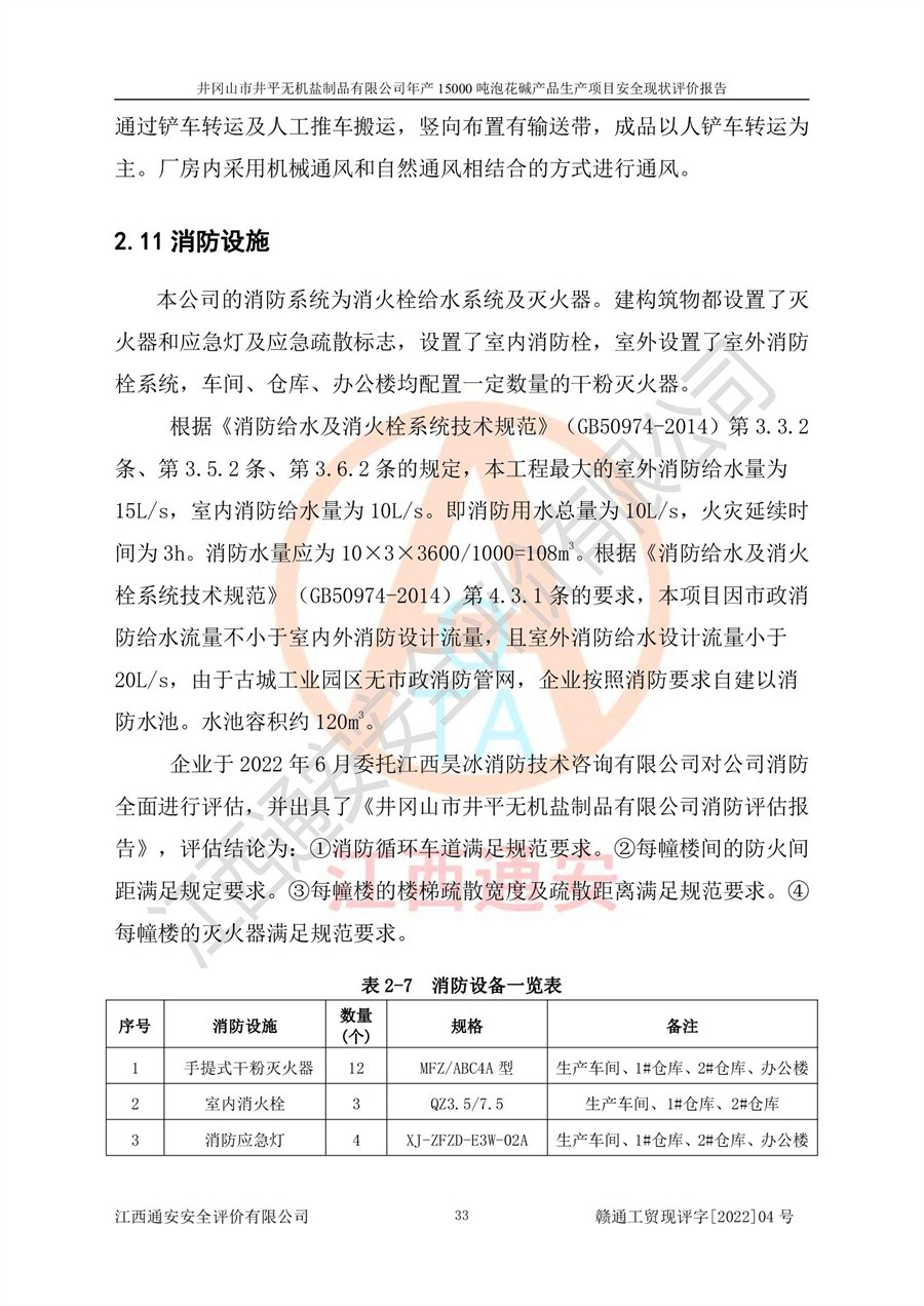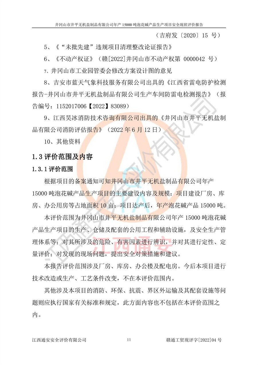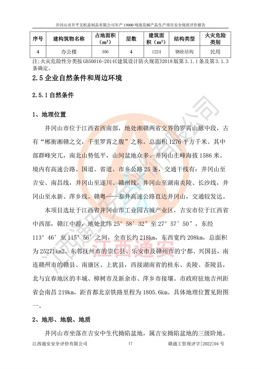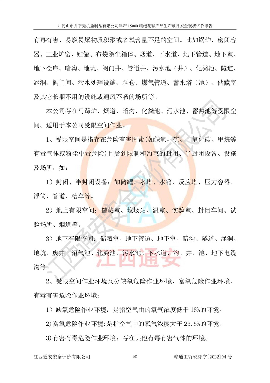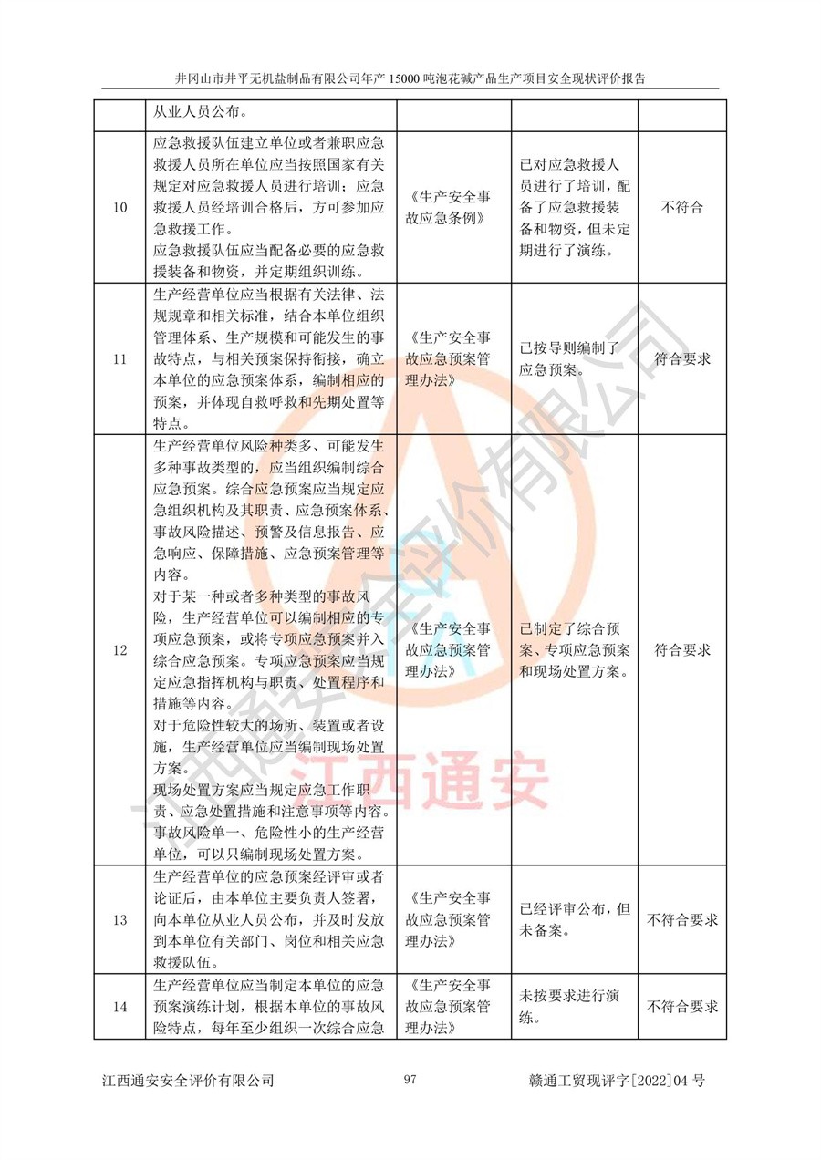 井岡山市井平無機鹽制品有限公司年產(chǎn)15000噸泡花堿產(chǎn)品生產(chǎn)項目安全現(xiàn)狀評價報告