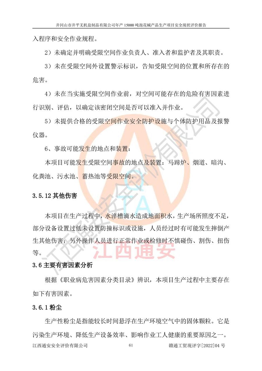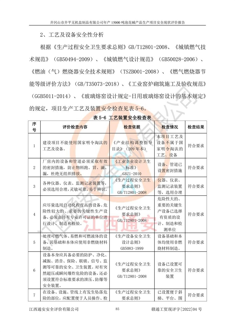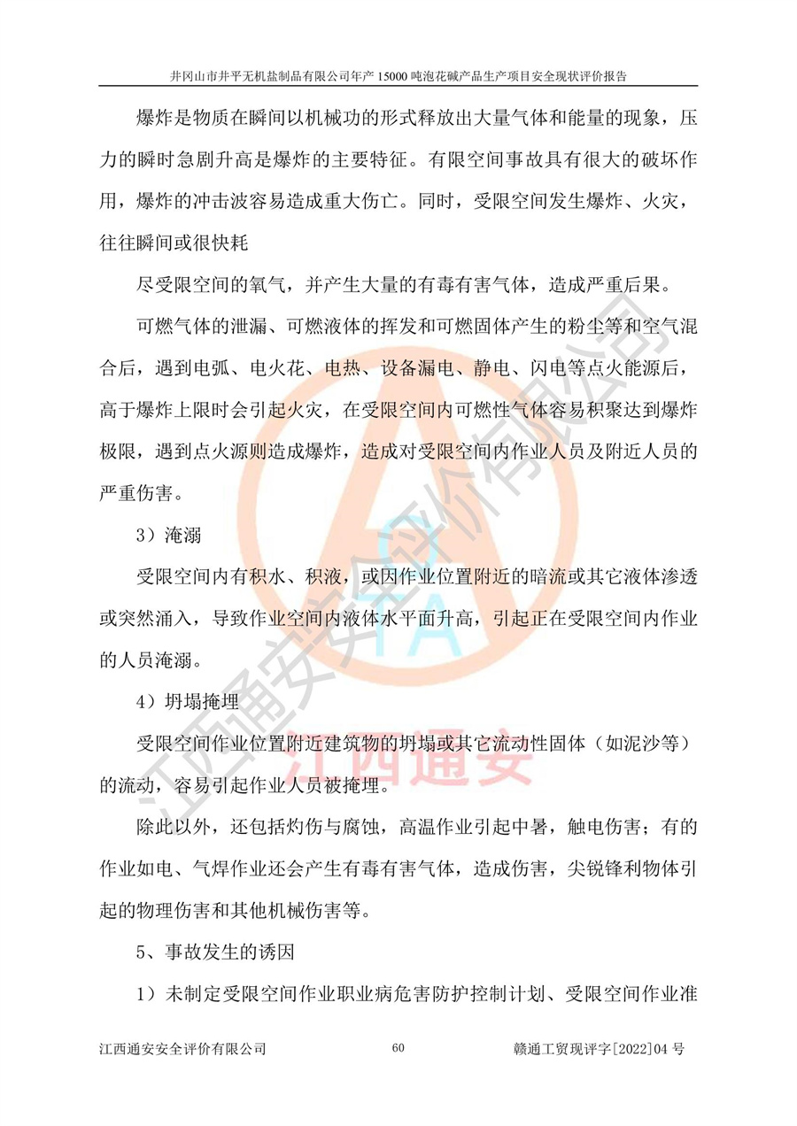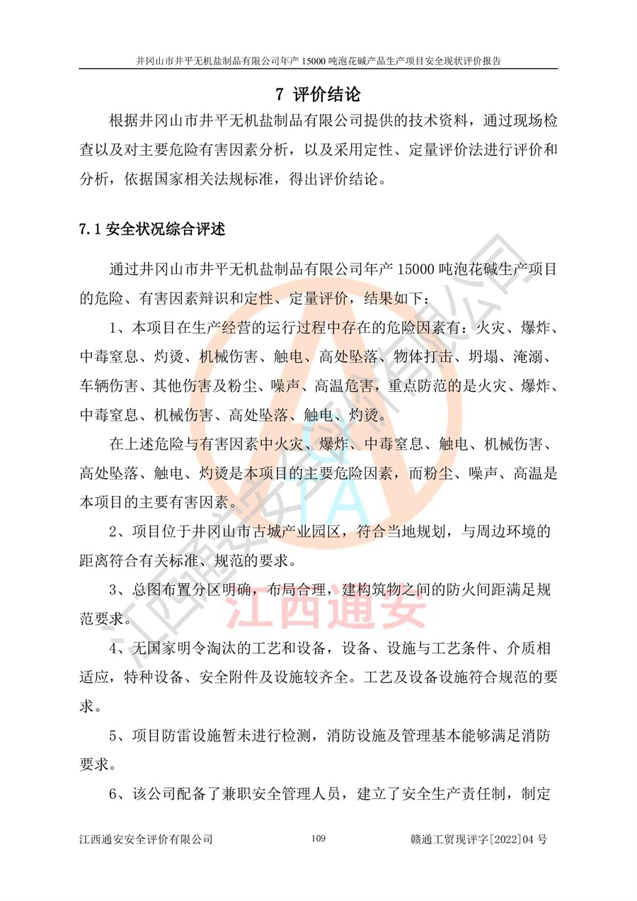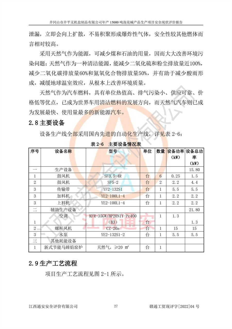 井岡山市井平無機鹽制品有限公司年產(chǎn)15000噸泡花堿產(chǎn)品生產(chǎn)項目安全現(xiàn)狀評價報告
