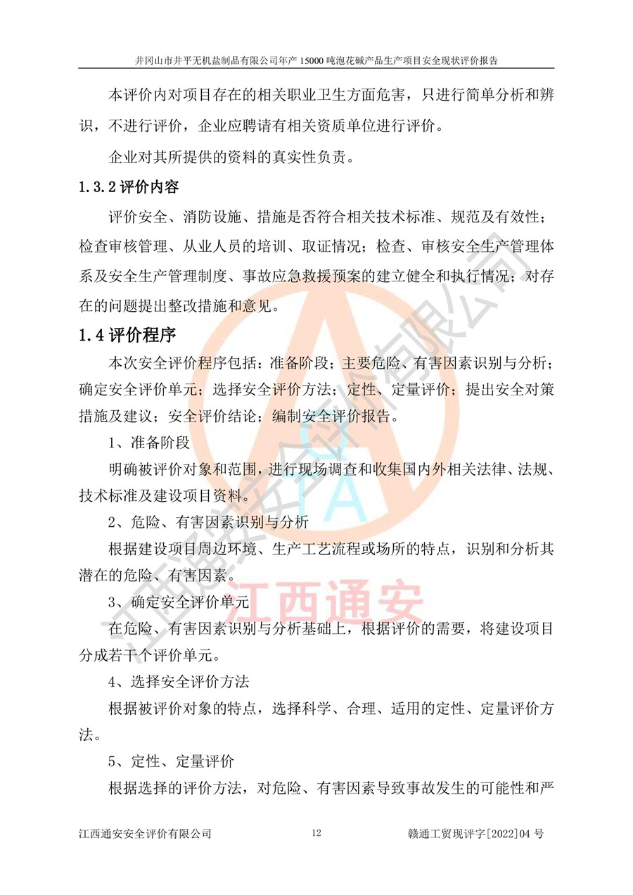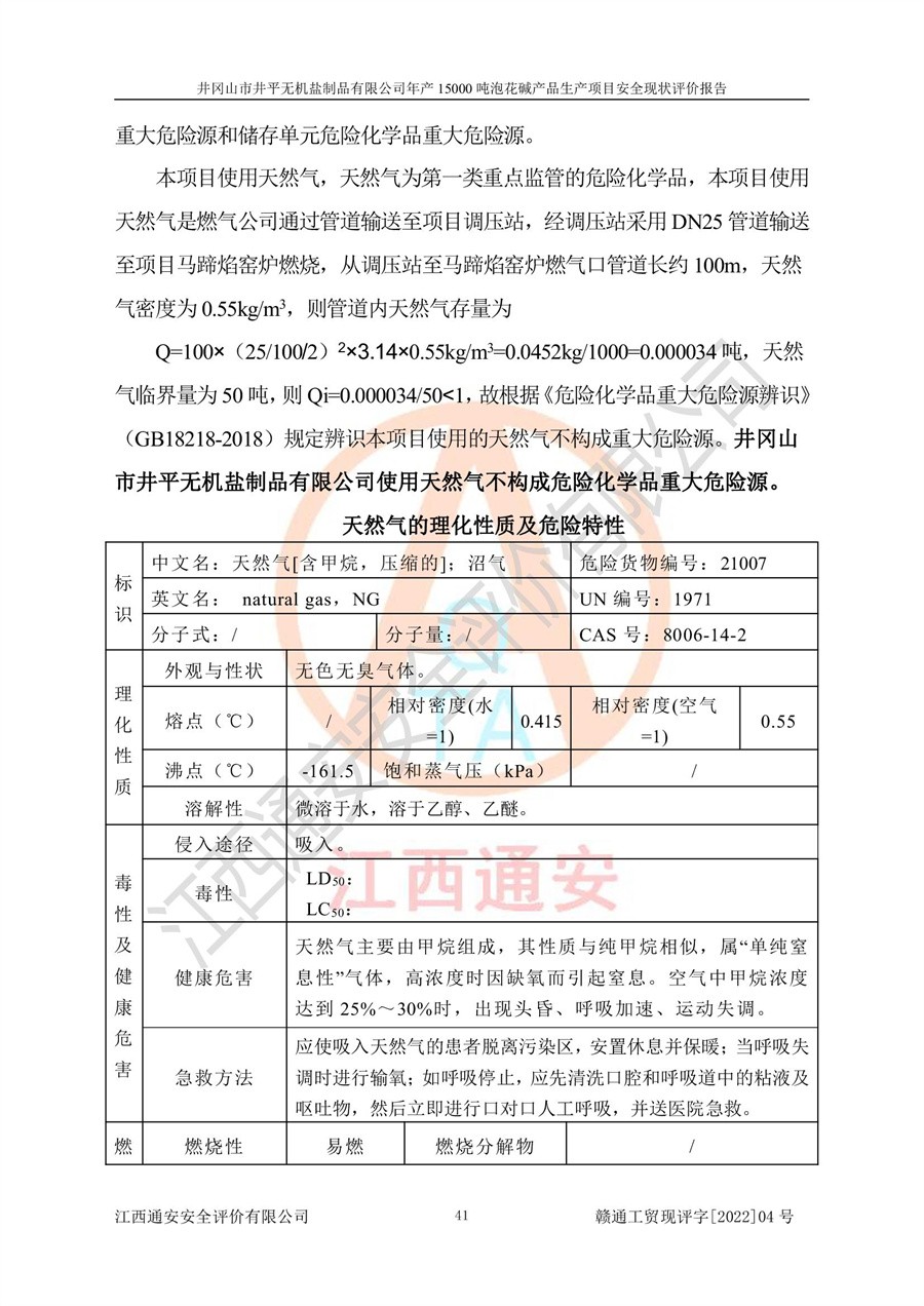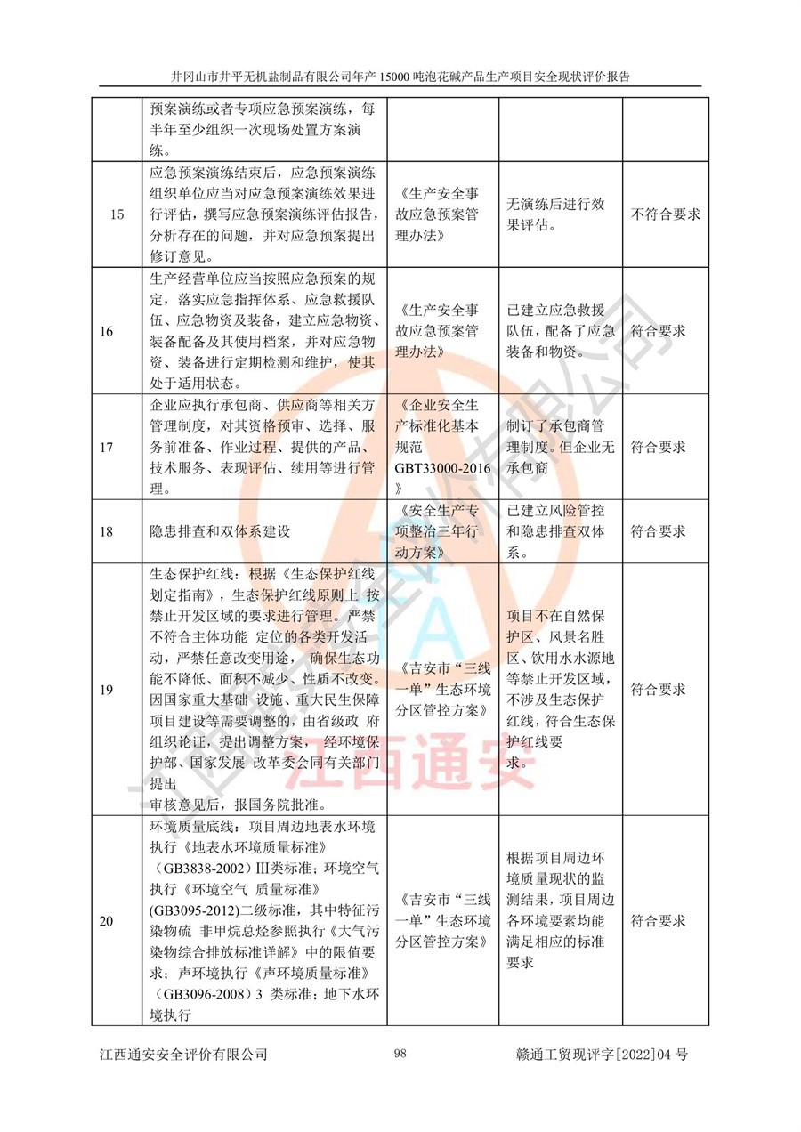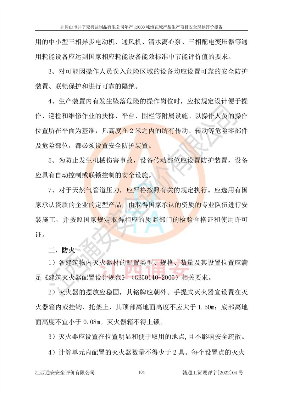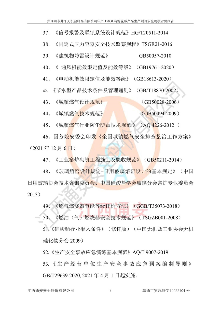 井岡山市井平無機鹽制品有限公司年產(chǎn)15000噸泡花堿產(chǎn)品生產(chǎn)項目安全現(xiàn)狀評價報告