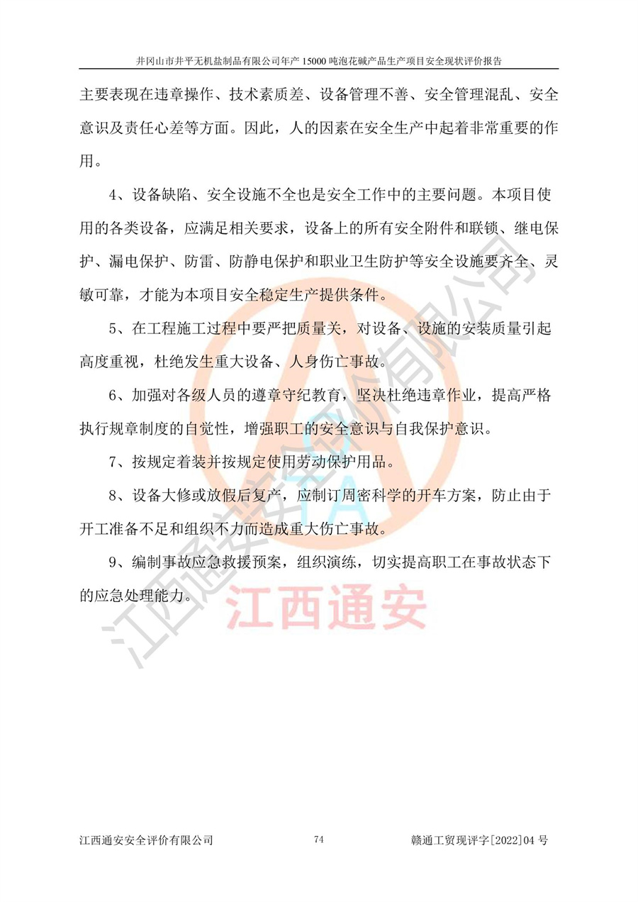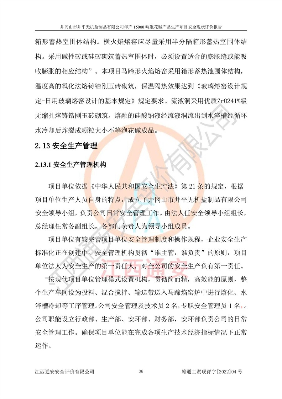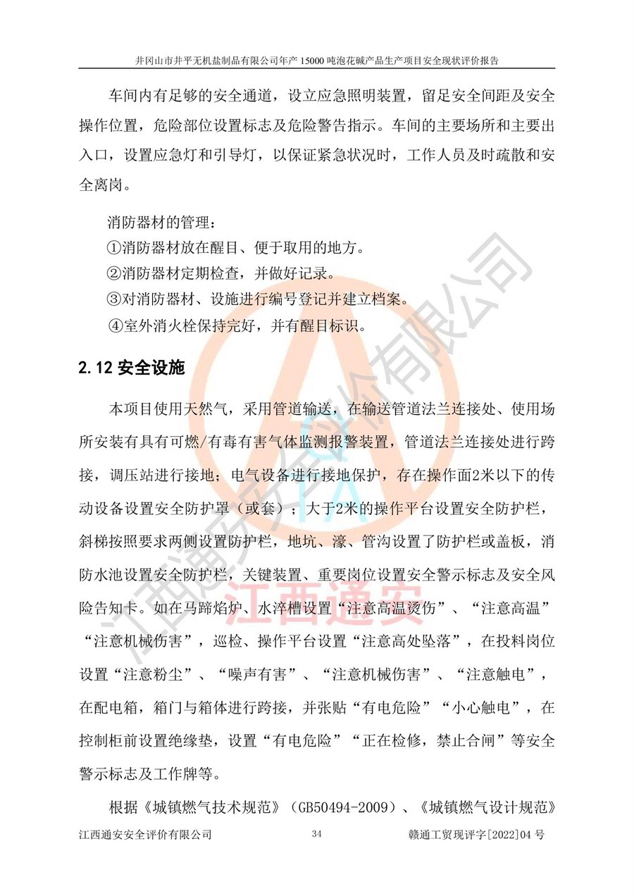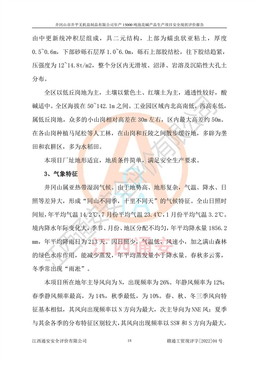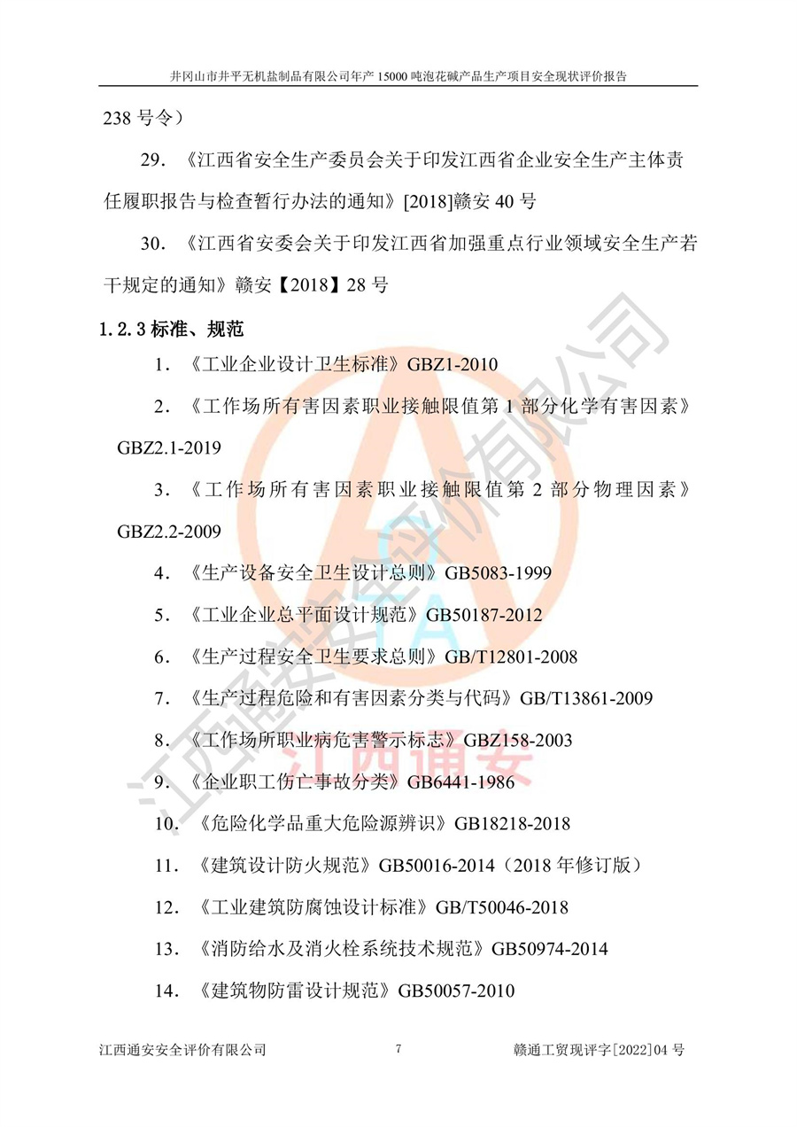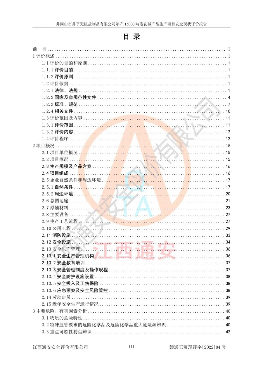 井岡山市井平無機鹽制品有限公司年產(chǎn)15000噸泡花堿產(chǎn)品生產(chǎn)項目安全現(xiàn)狀評價報告
