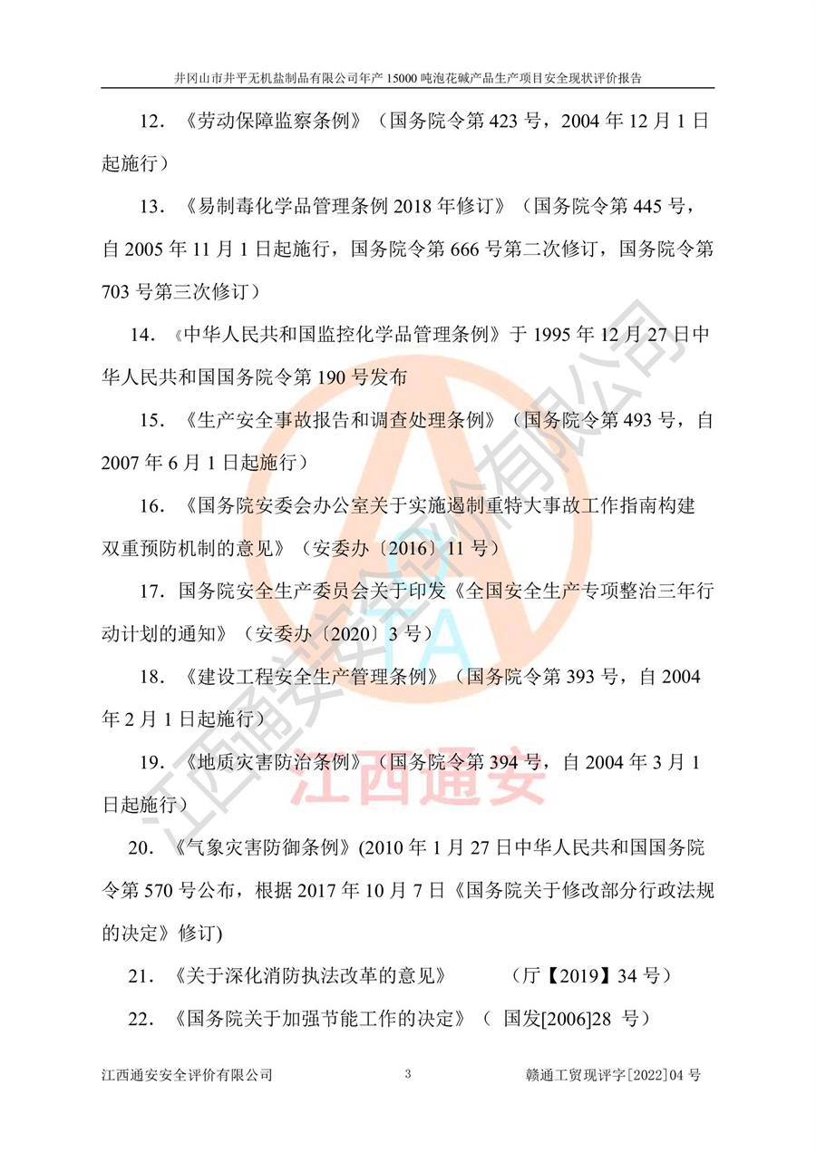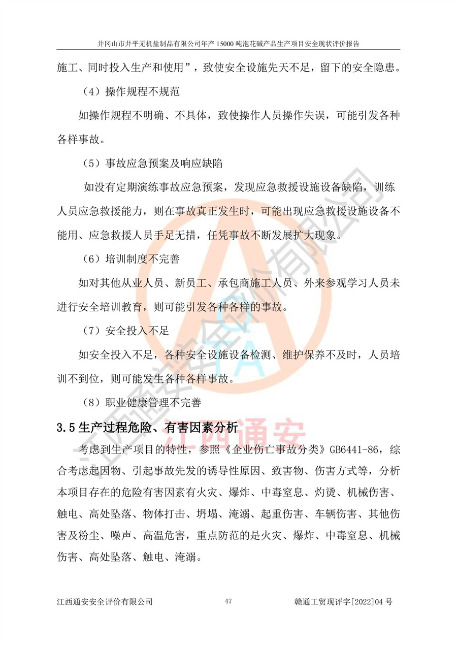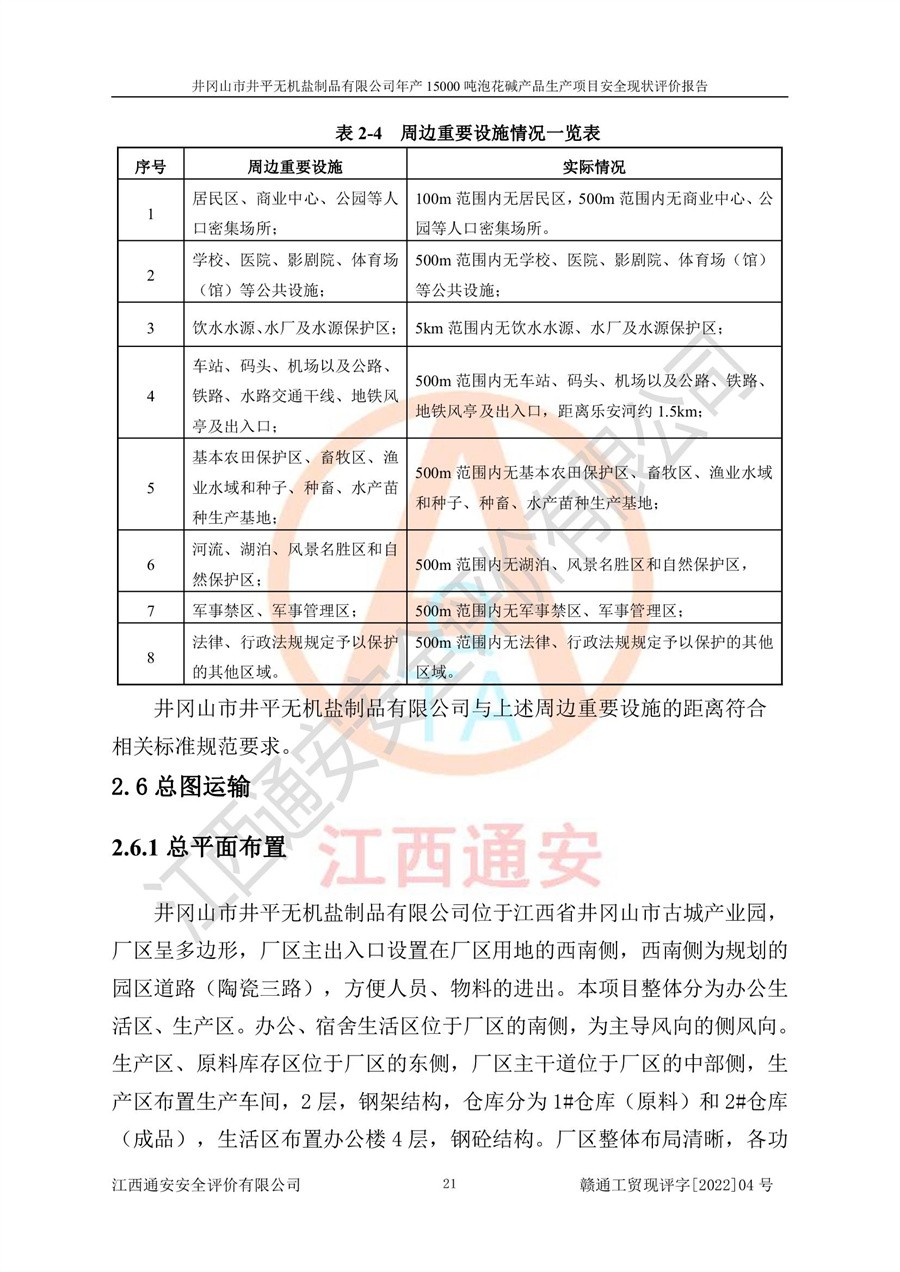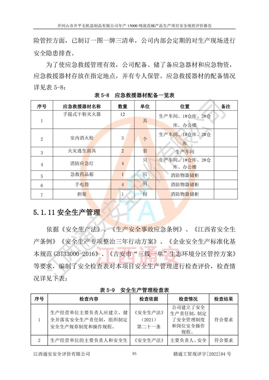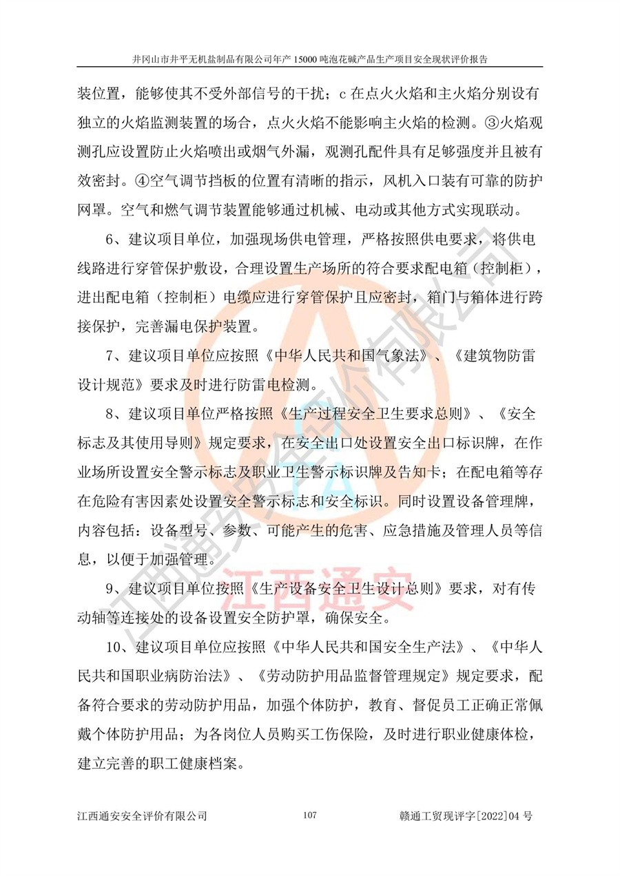 井岡山市井平無機鹽制品有限公司年產(chǎn)15000噸泡花堿產(chǎn)品生產(chǎn)項目安全現(xiàn)狀評價報告