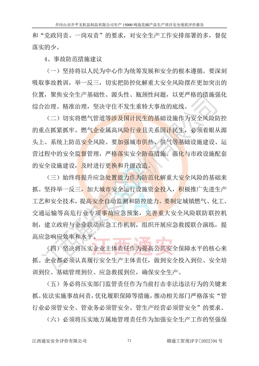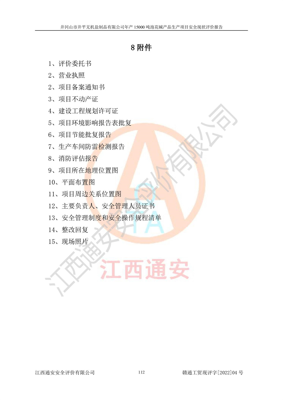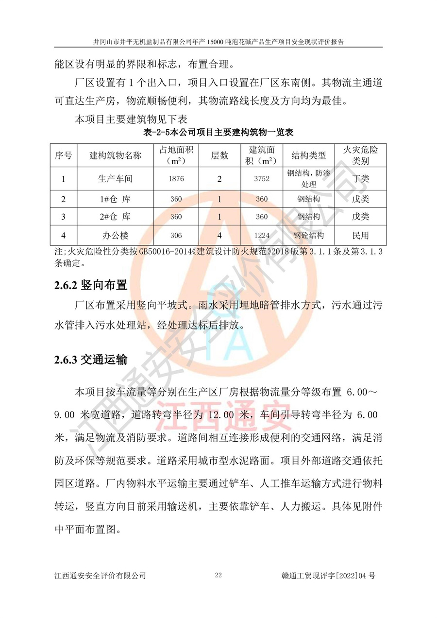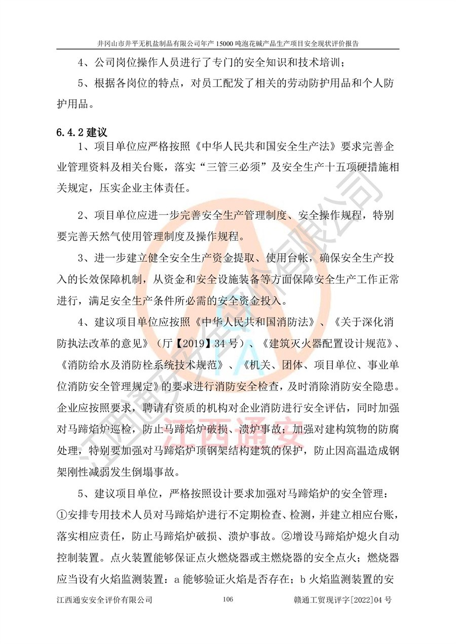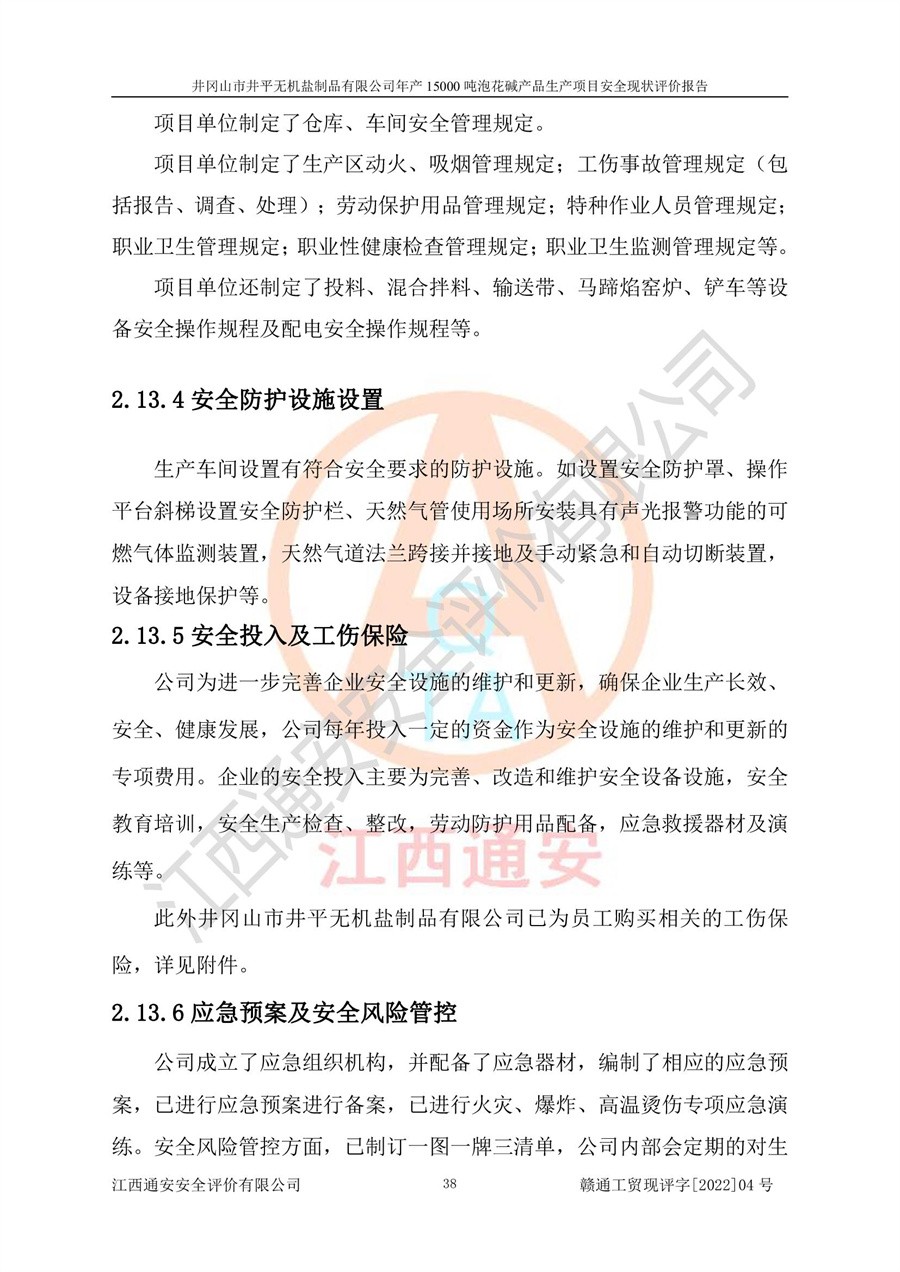 井岡山市井平無機鹽制品有限公司年產(chǎn)15000噸泡花堿產(chǎn)品生產(chǎn)項目安全現(xiàn)狀評價報告