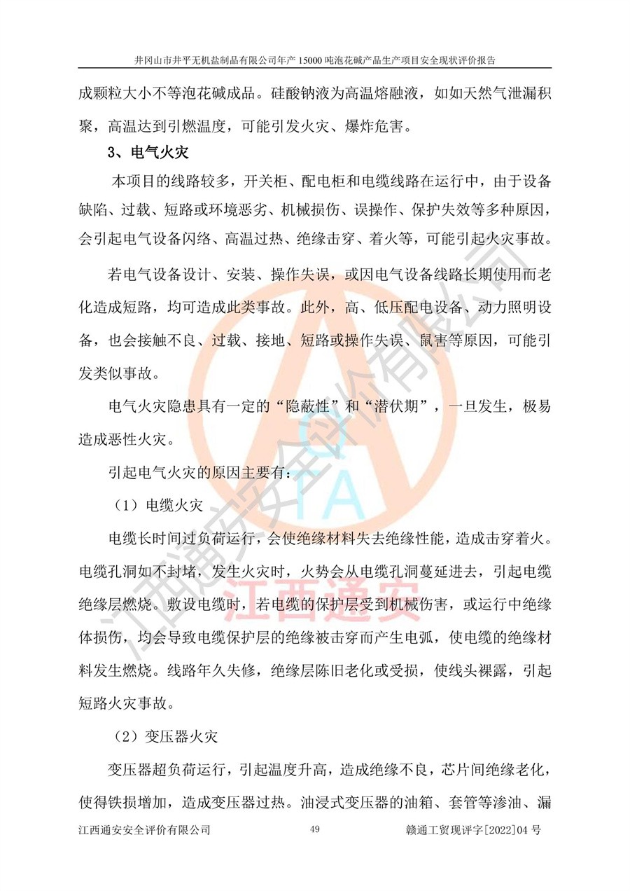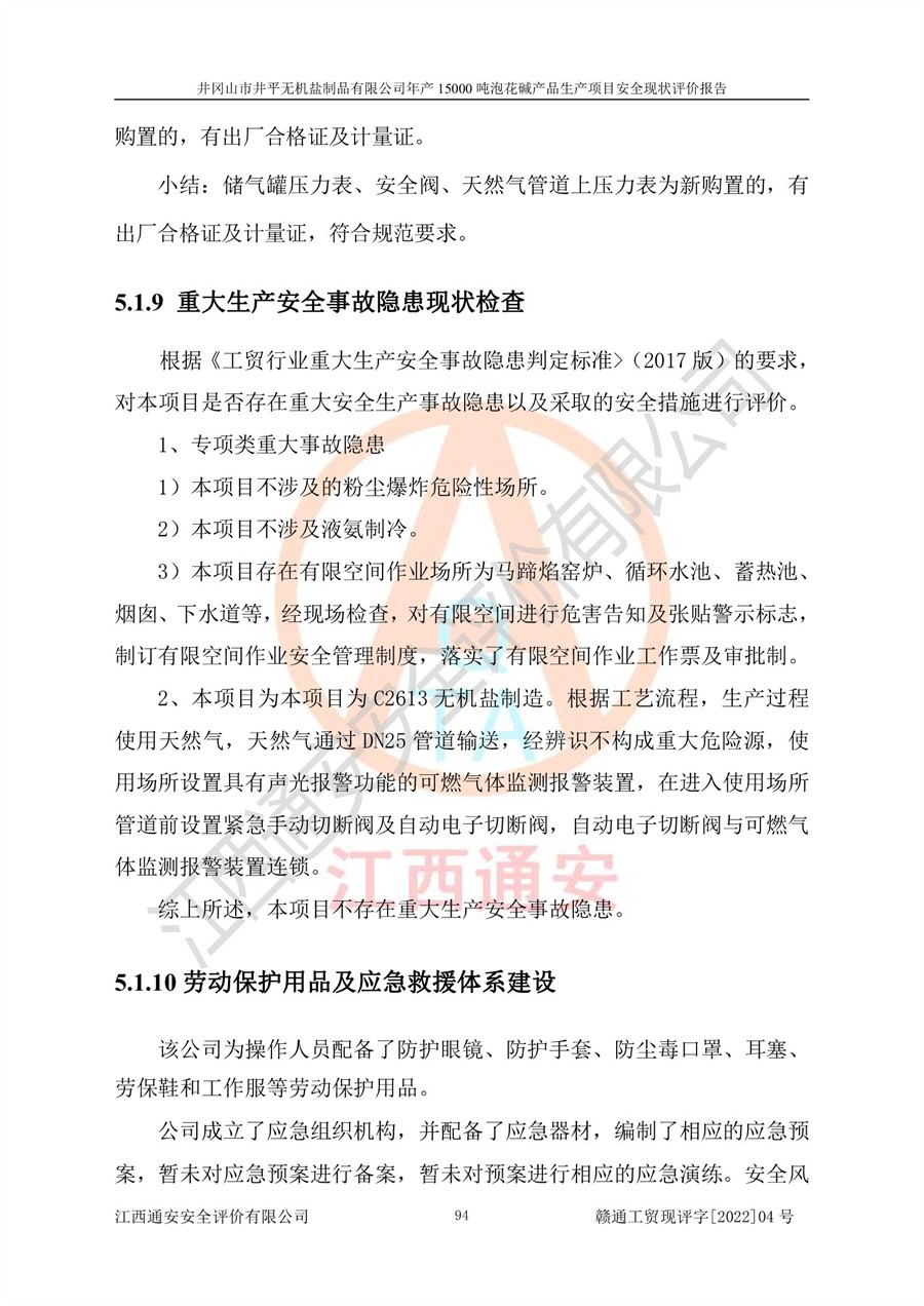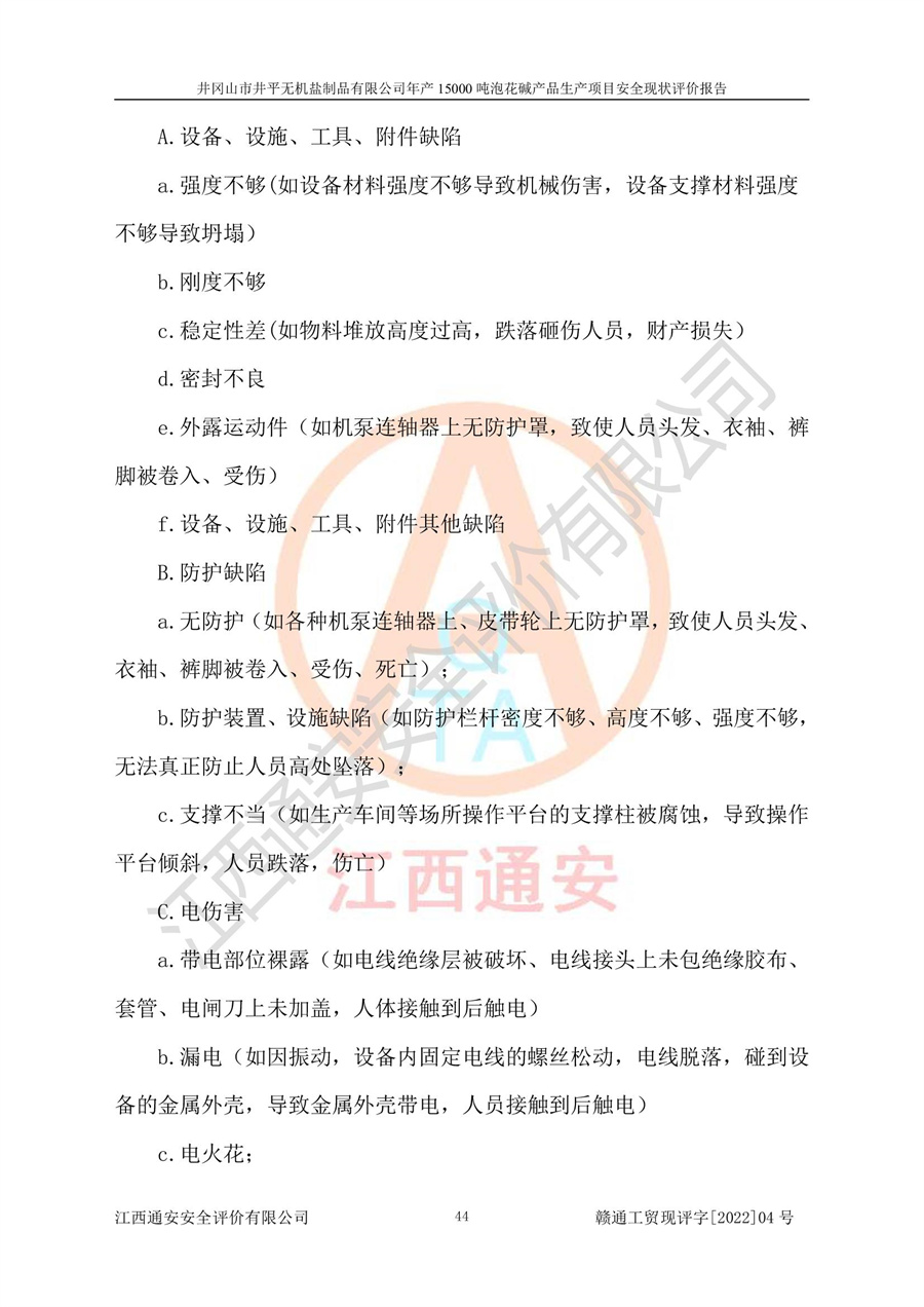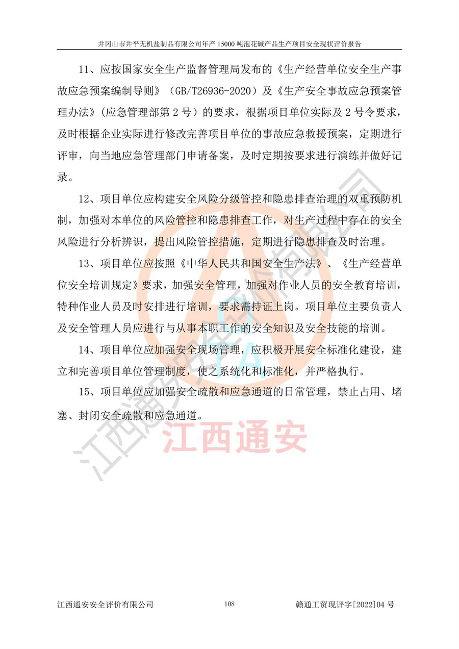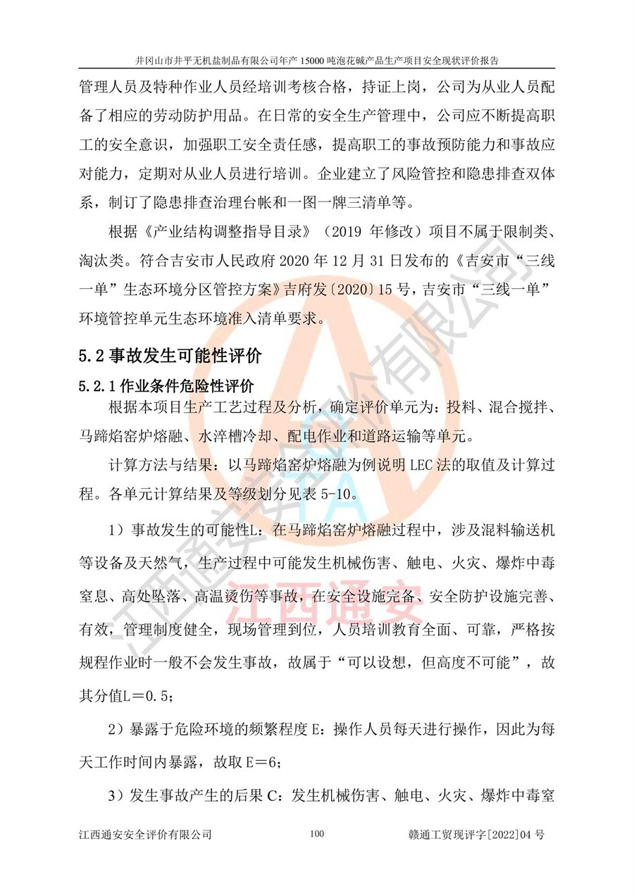 井岡山市井平無機鹽制品有限公司年產(chǎn)15000噸泡花堿產(chǎn)品生產(chǎn)項目安全現(xiàn)狀評價報告