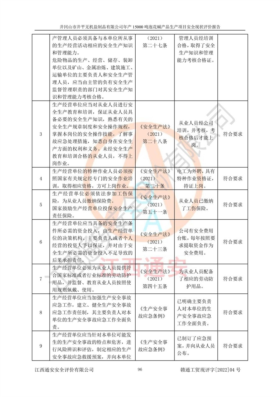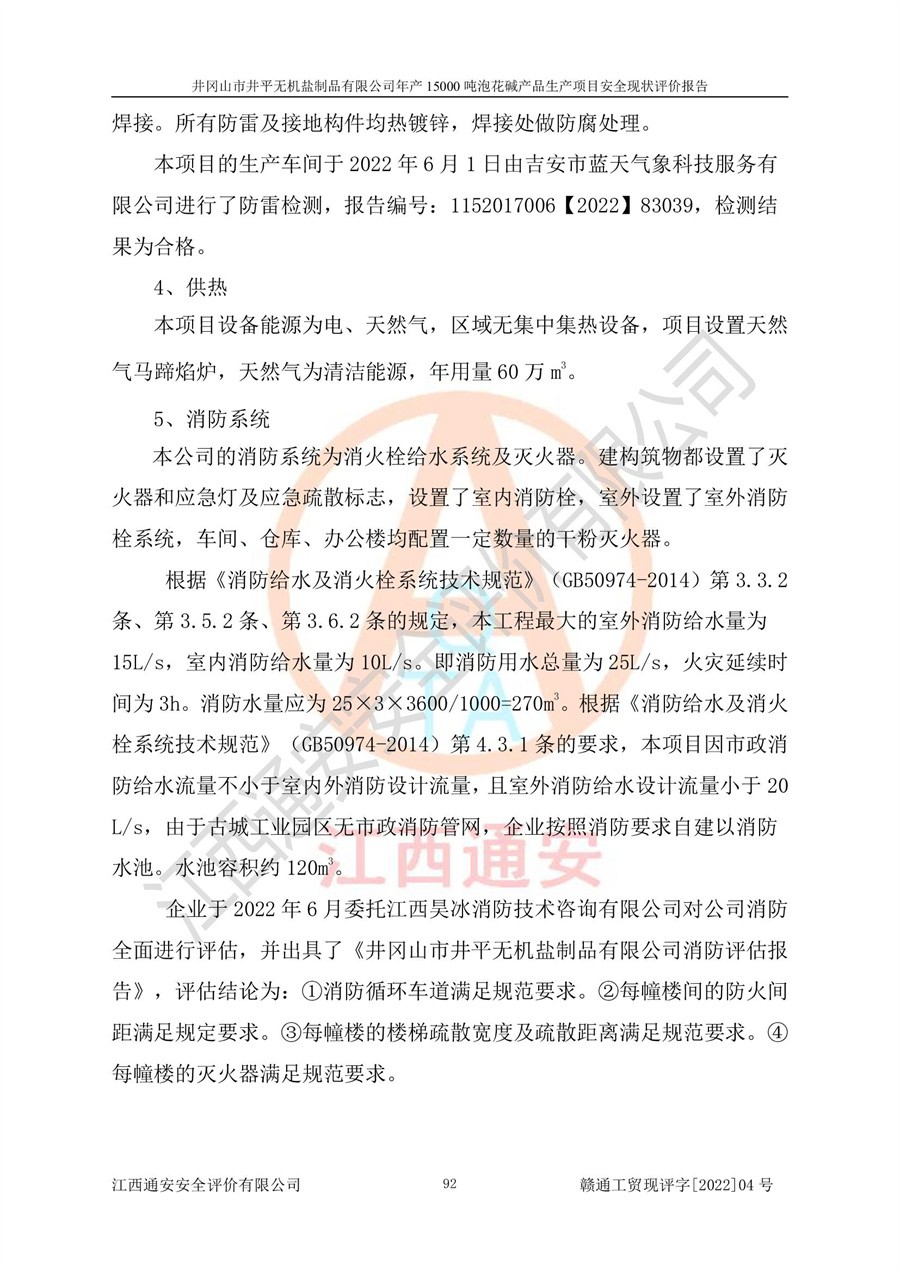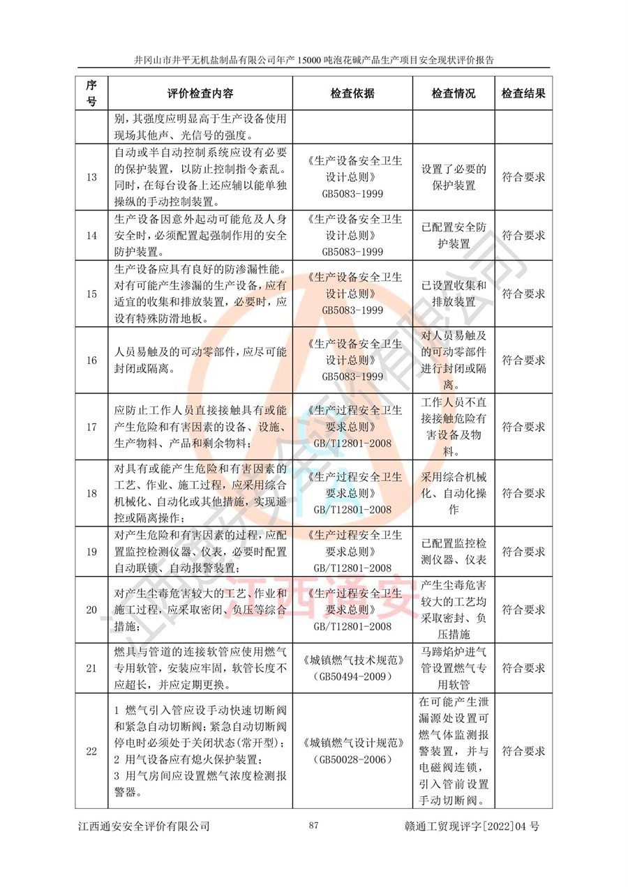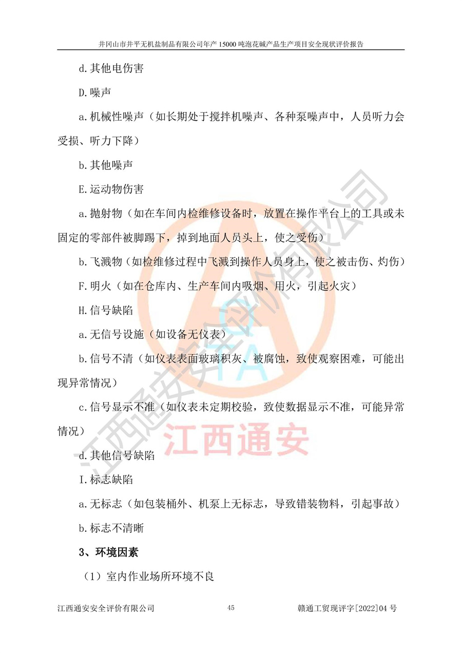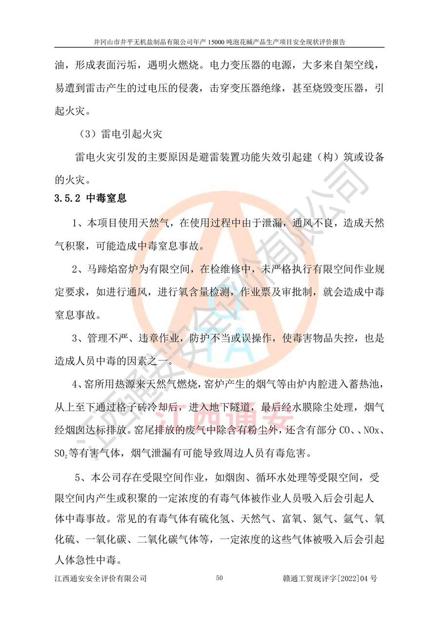 井岡山市井平無機鹽制品有限公司年產(chǎn)15000噸泡花堿產(chǎn)品生產(chǎn)項目安全現(xiàn)狀評價報告