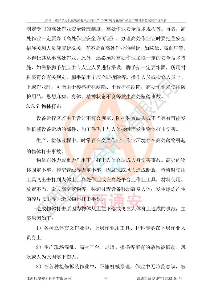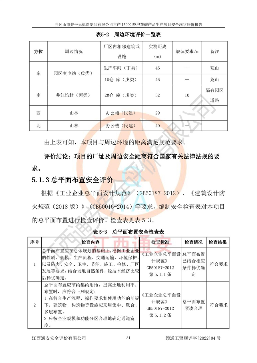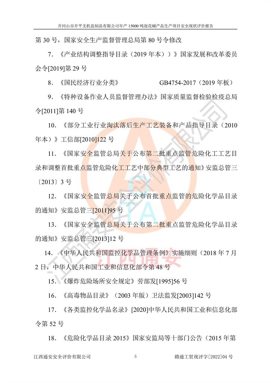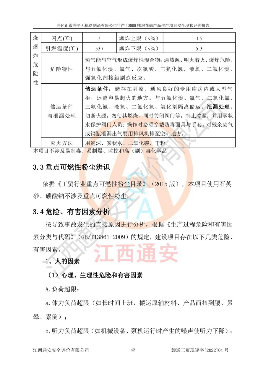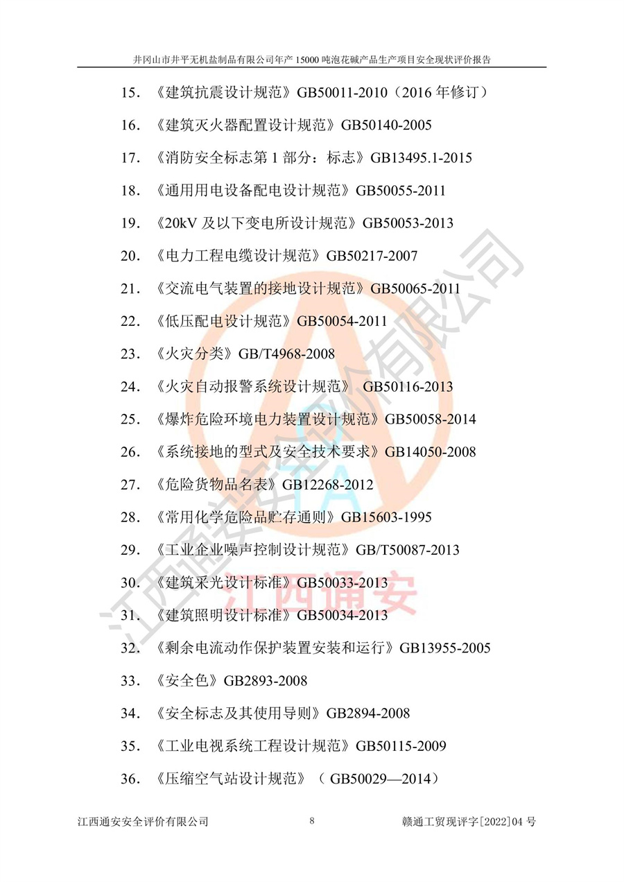 井岡山市井平無機鹽制品有限公司年產(chǎn)15000噸泡花堿產(chǎn)品生產(chǎn)項目安全現(xiàn)狀評價報告