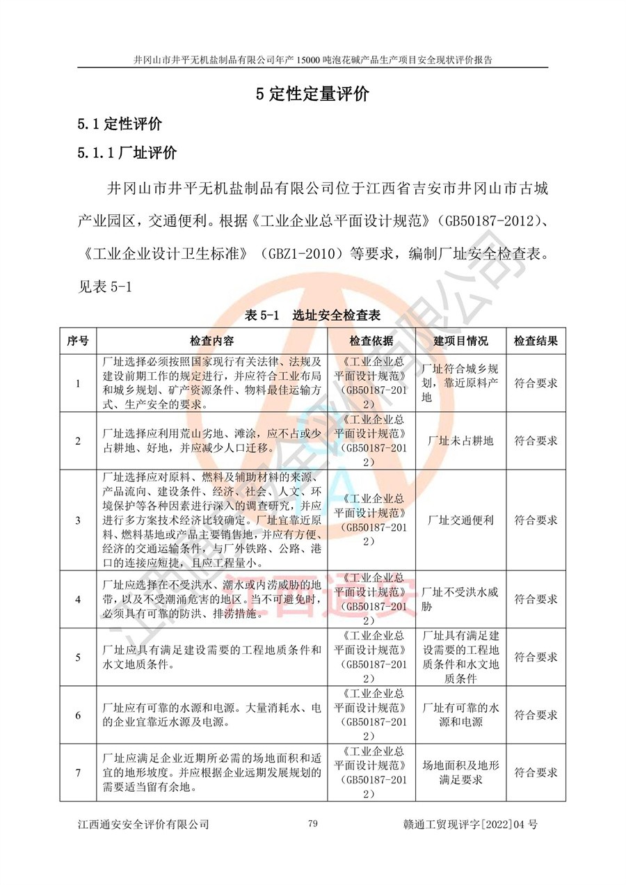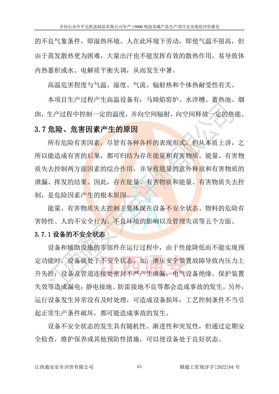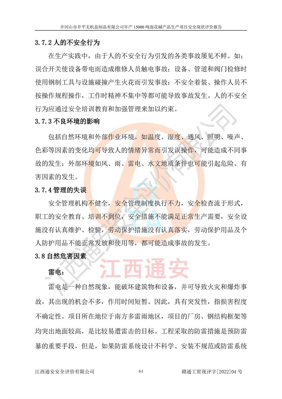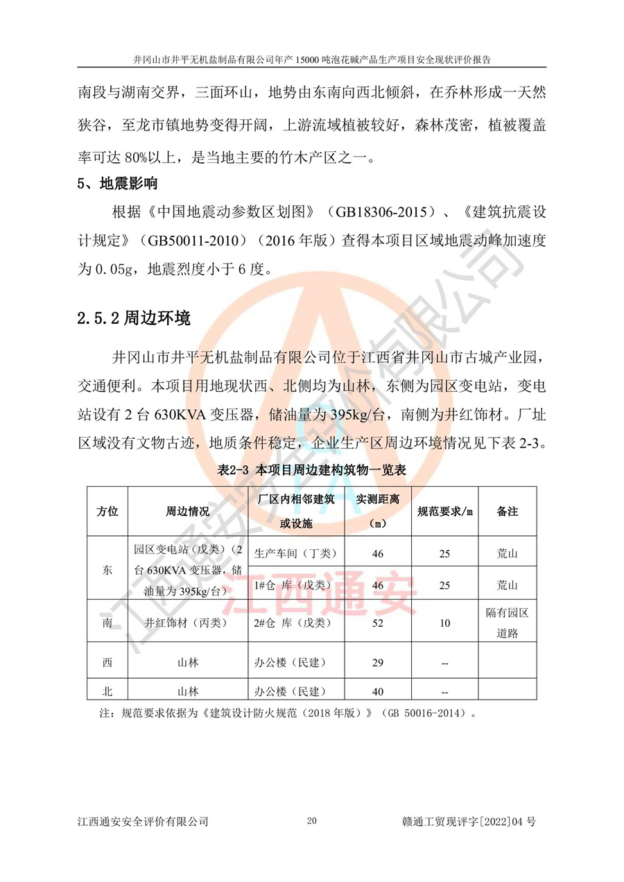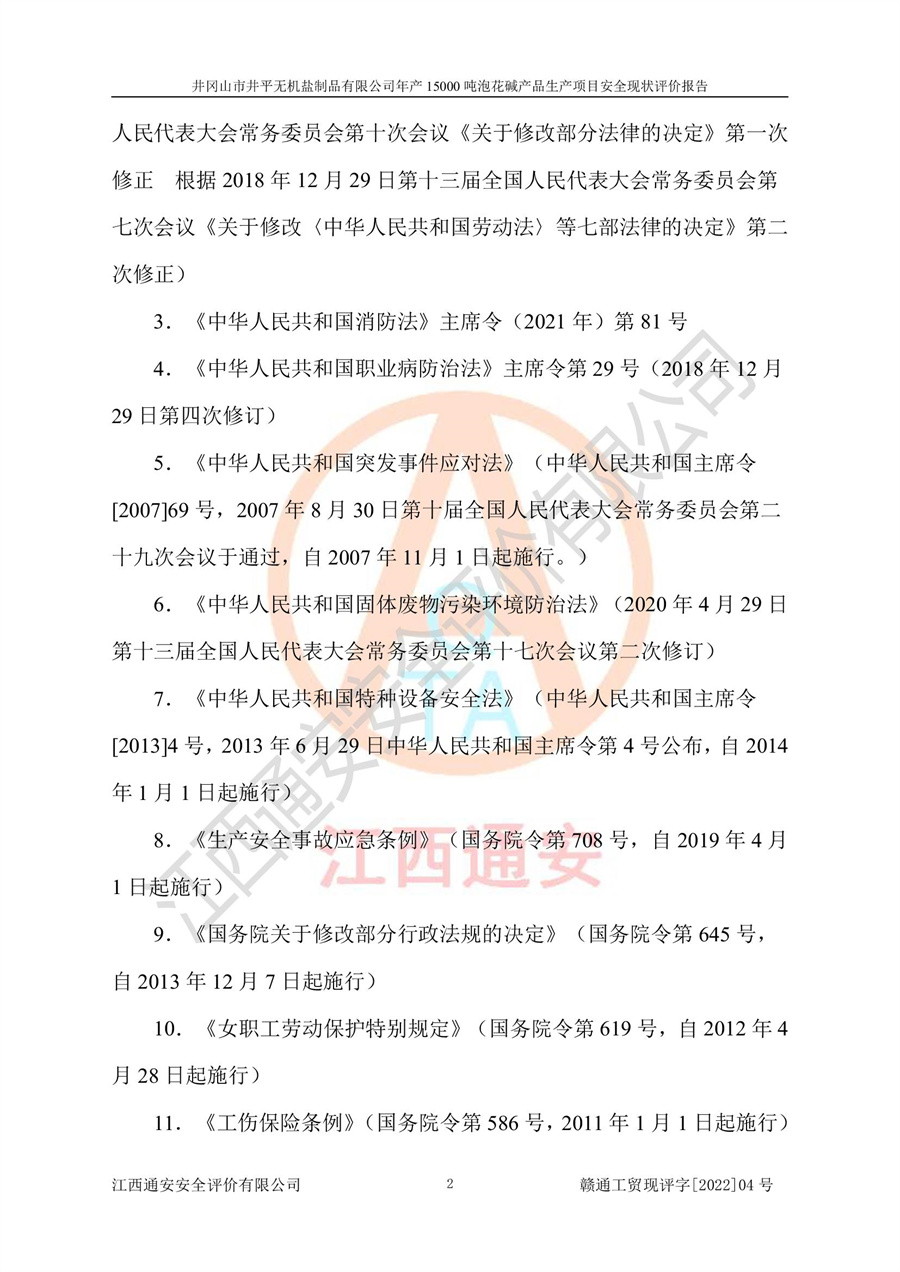 井岡山市井平無機鹽制品有限公司年產(chǎn)15000噸泡花堿產(chǎn)品生產(chǎn)項目安全現(xiàn)狀評價報告