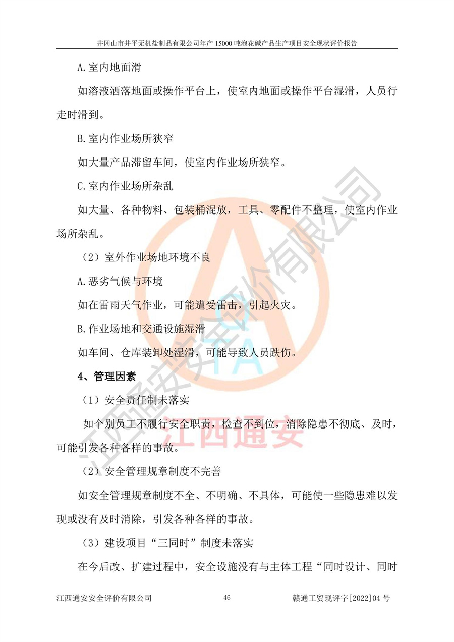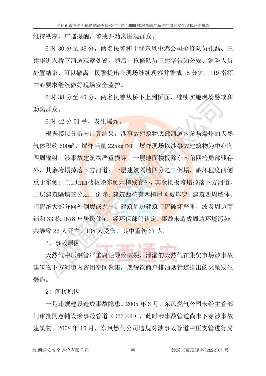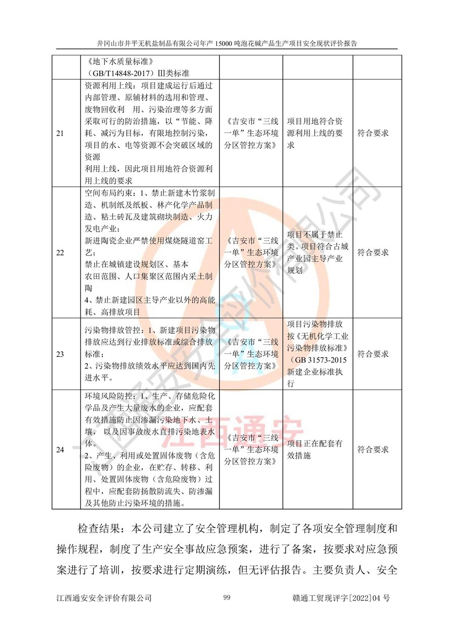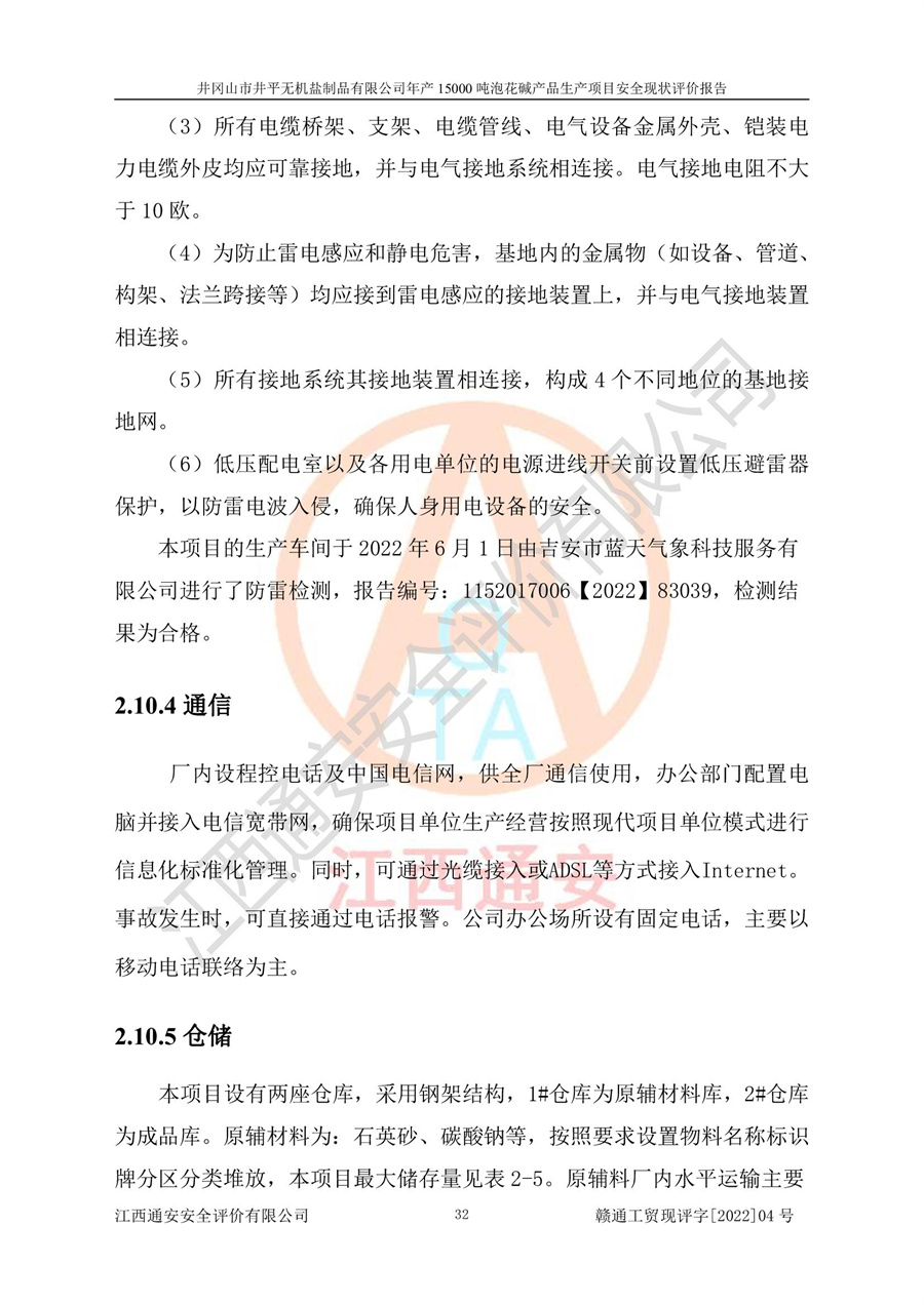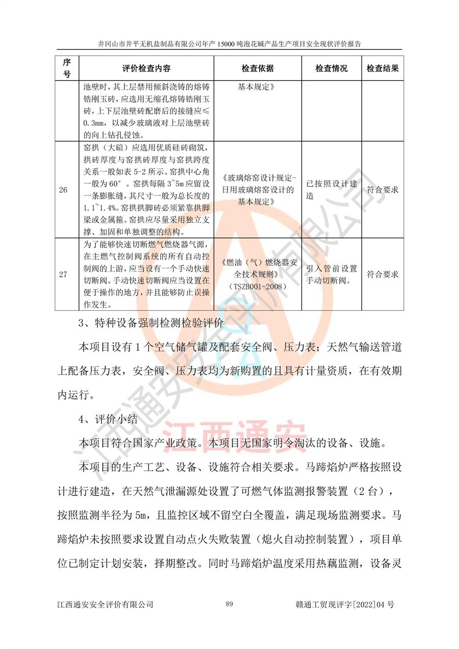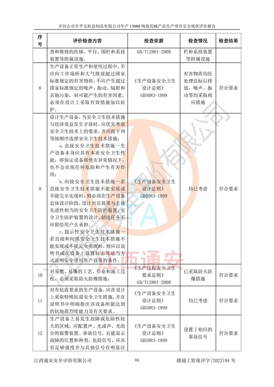 井岡山市井平無機鹽制品有限公司年產(chǎn)15000噸泡花堿產(chǎn)品生產(chǎn)項目安全現(xiàn)狀評價報告