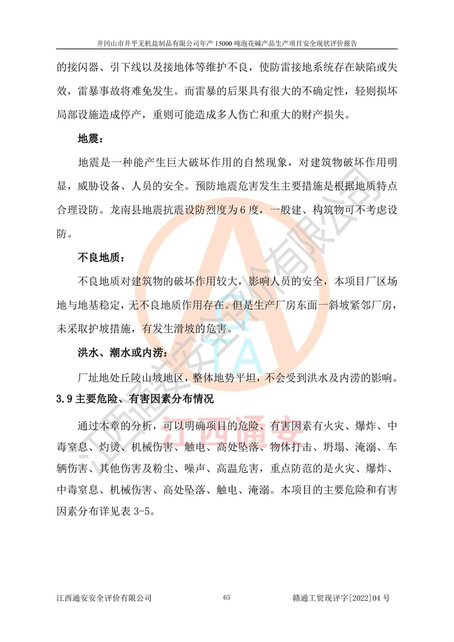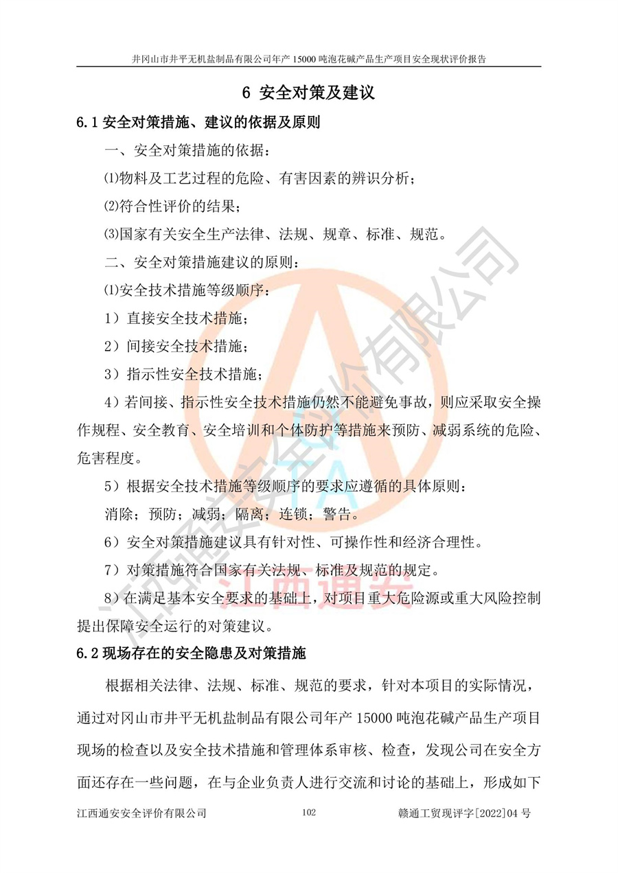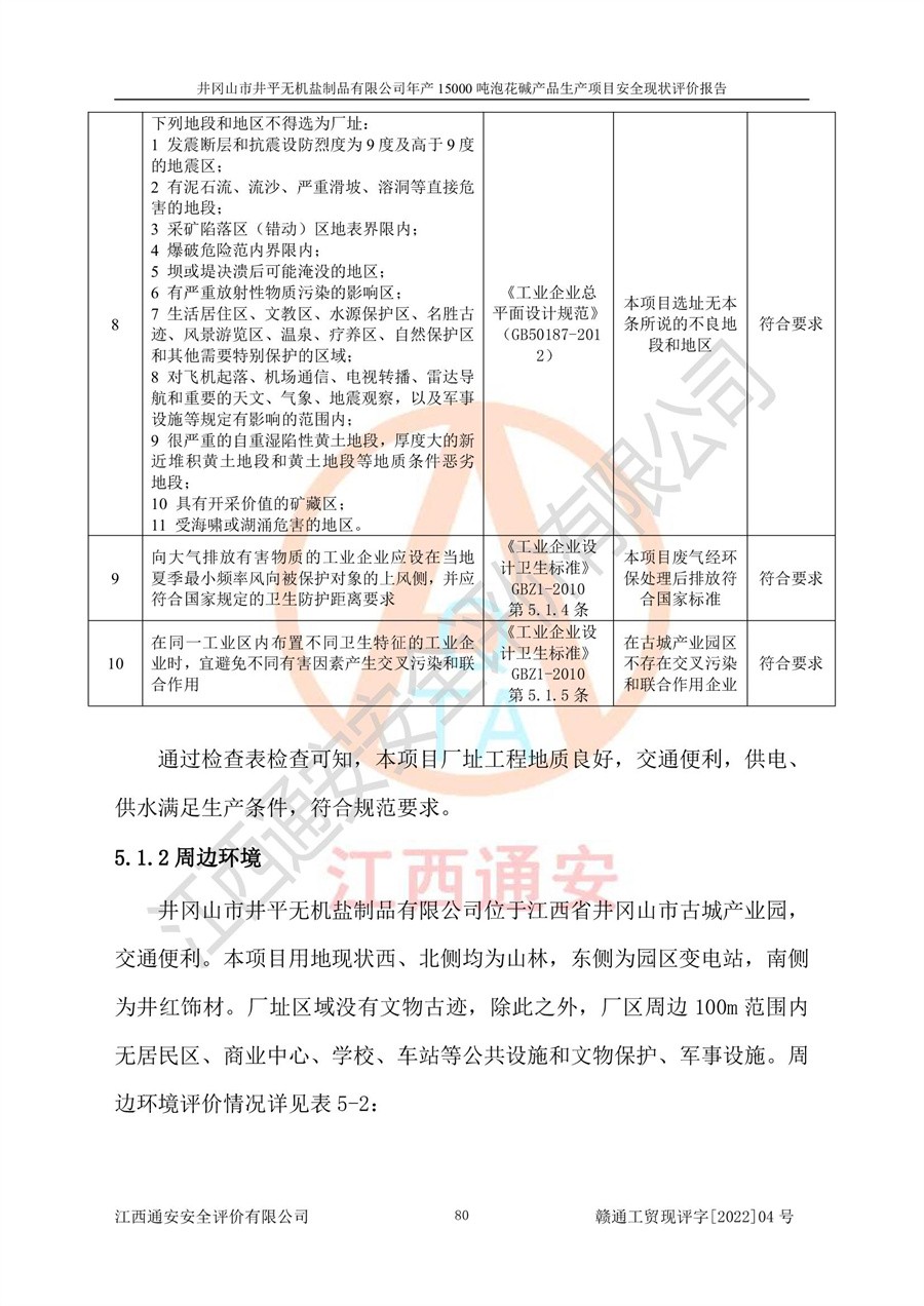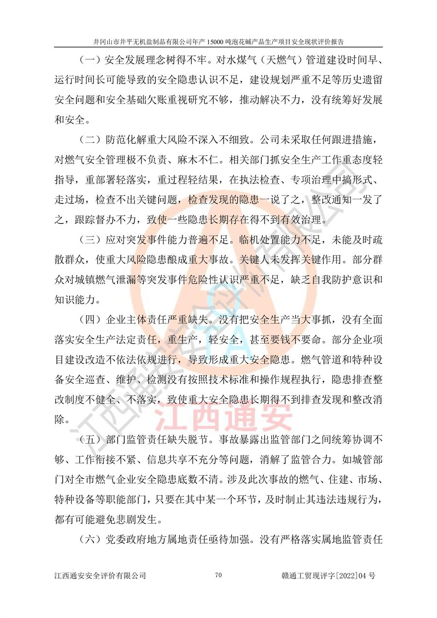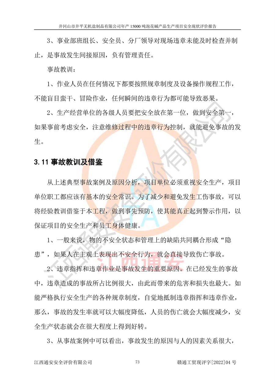 井岡山市井平無機鹽制品有限公司年產(chǎn)15000噸泡花堿產(chǎn)品生產(chǎn)項目安全現(xiàn)狀評價報告
