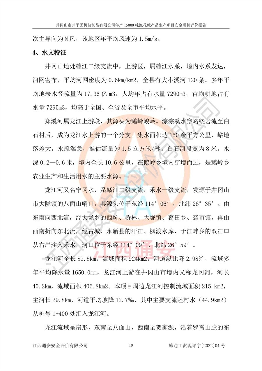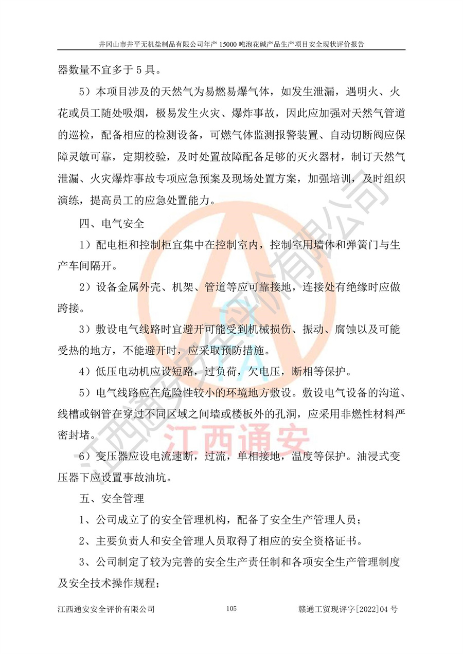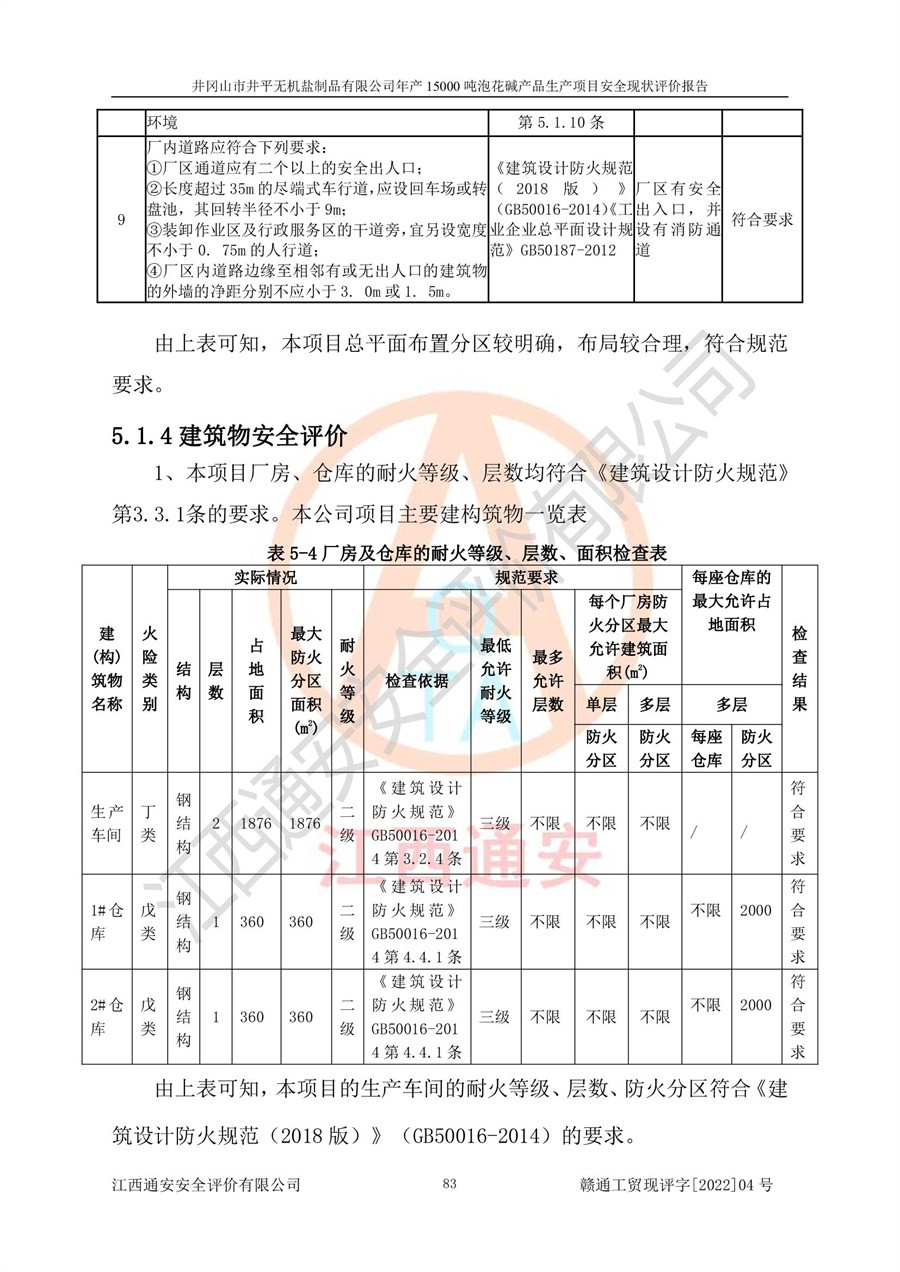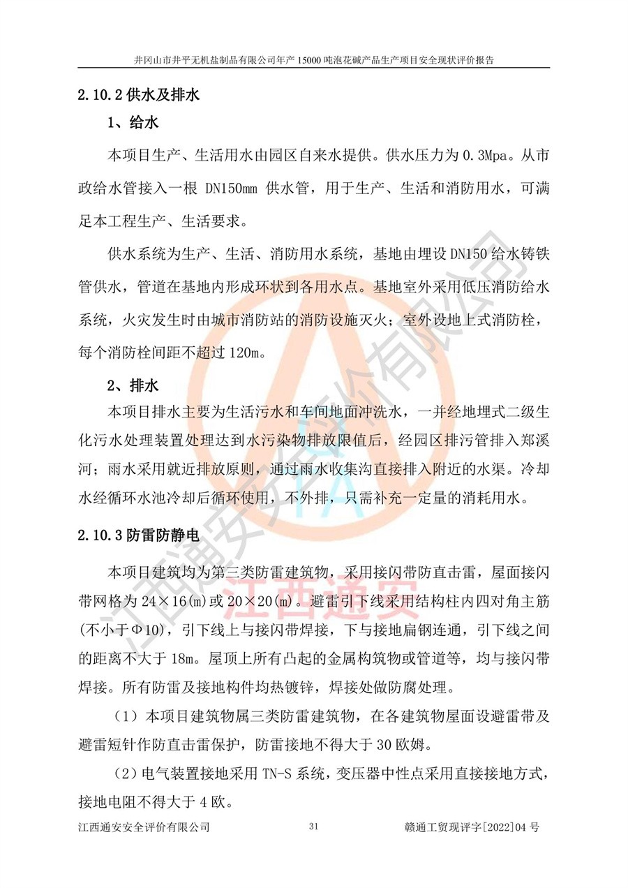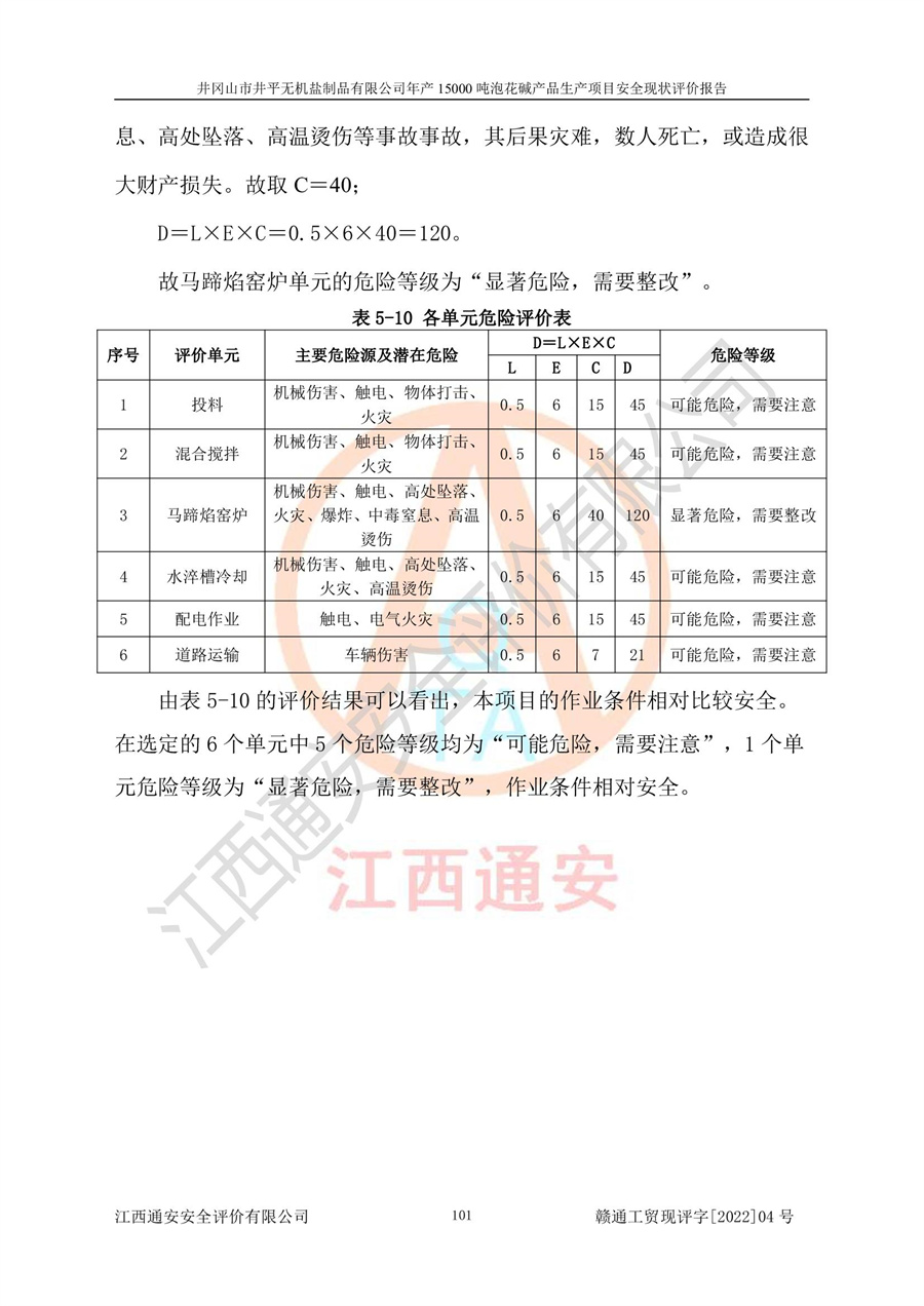 井岡山市井平無機鹽制品有限公司年產(chǎn)15000噸泡花堿產(chǎn)品生產(chǎn)項目安全現(xiàn)狀評價報告