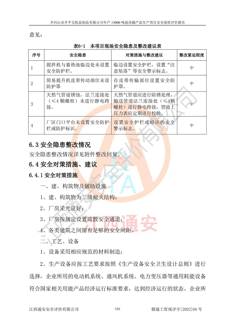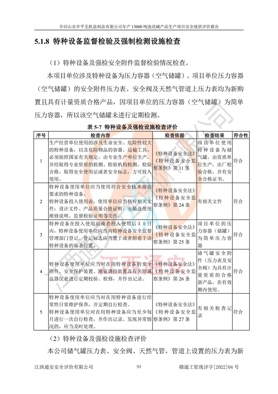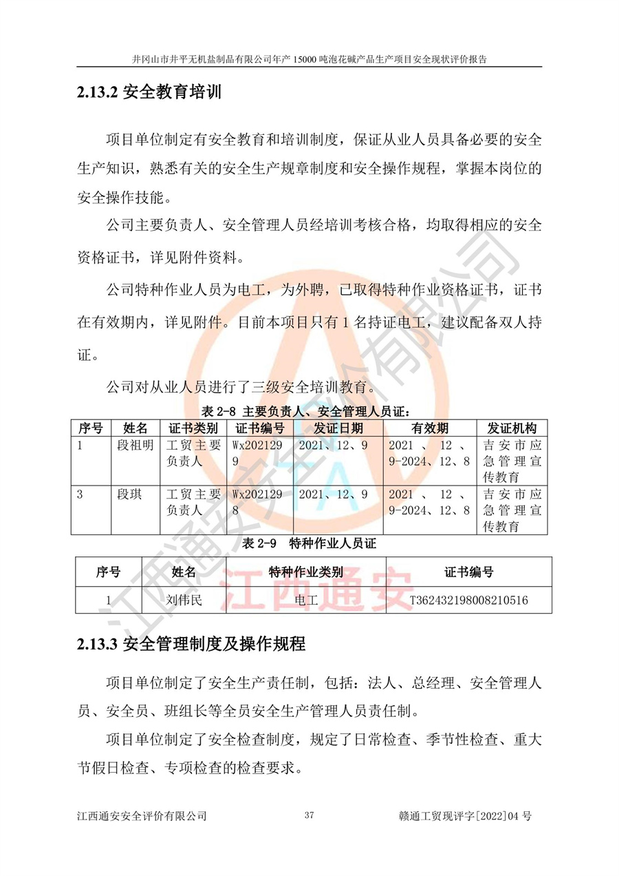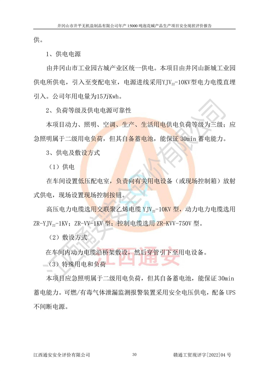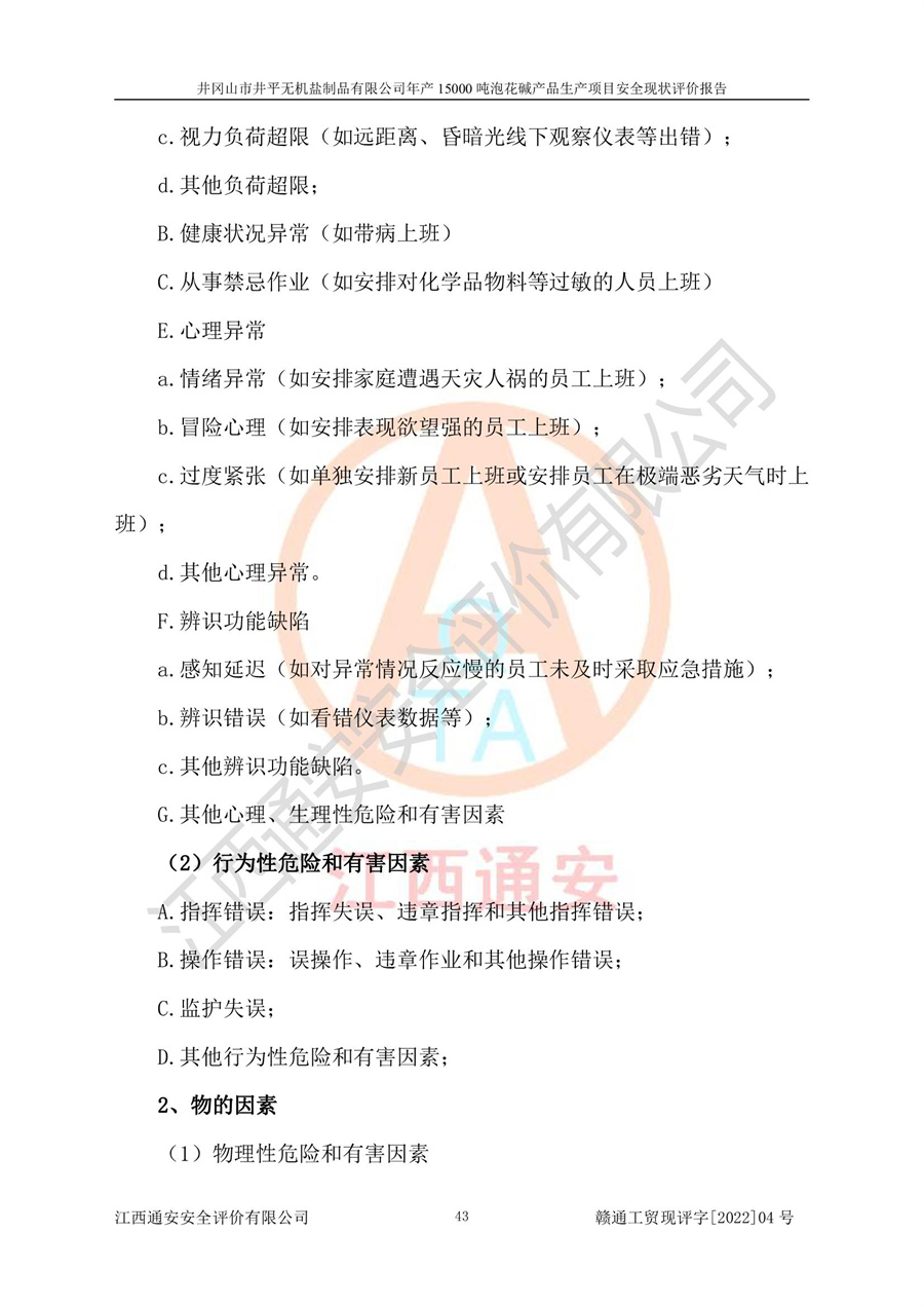 井岡山市井平無機鹽制品有限公司年產(chǎn)15000噸泡花堿產(chǎn)品生產(chǎn)項目安全現(xiàn)狀評價報告