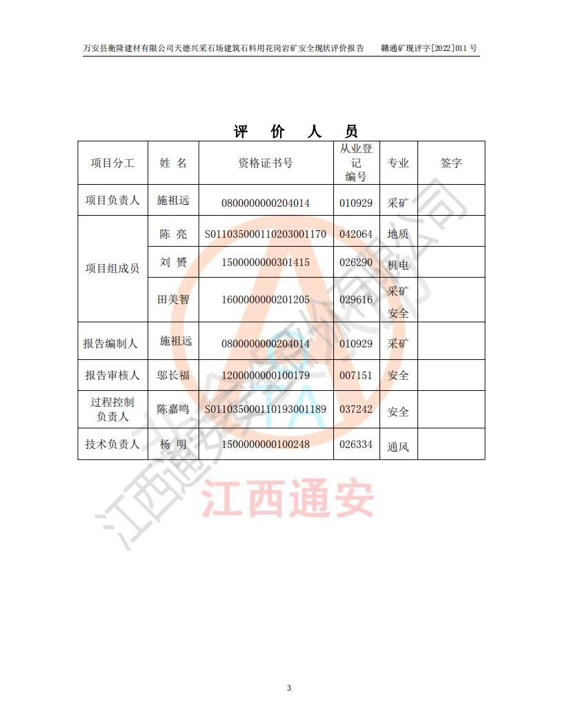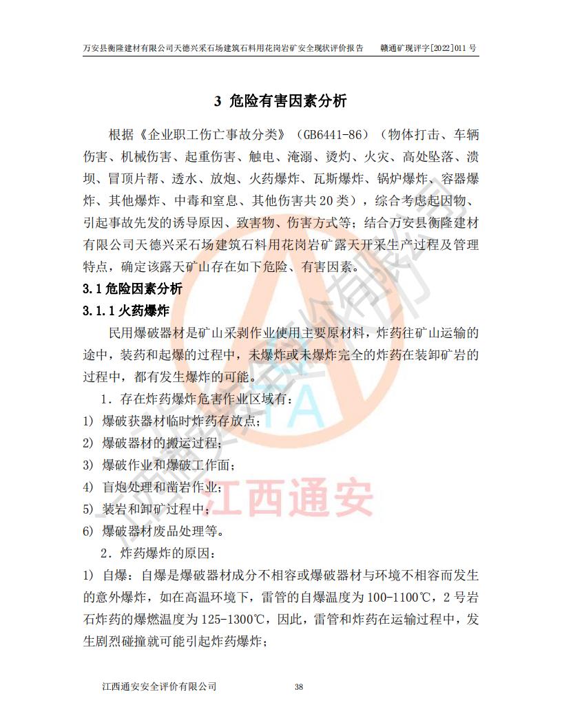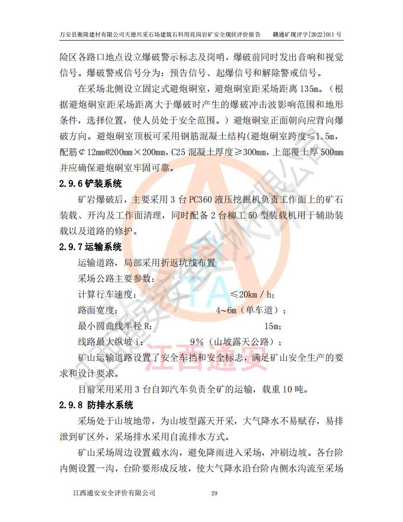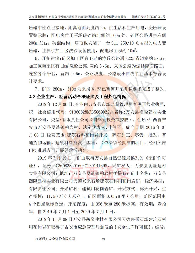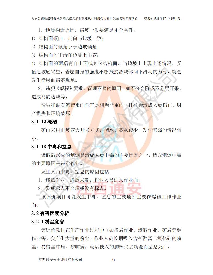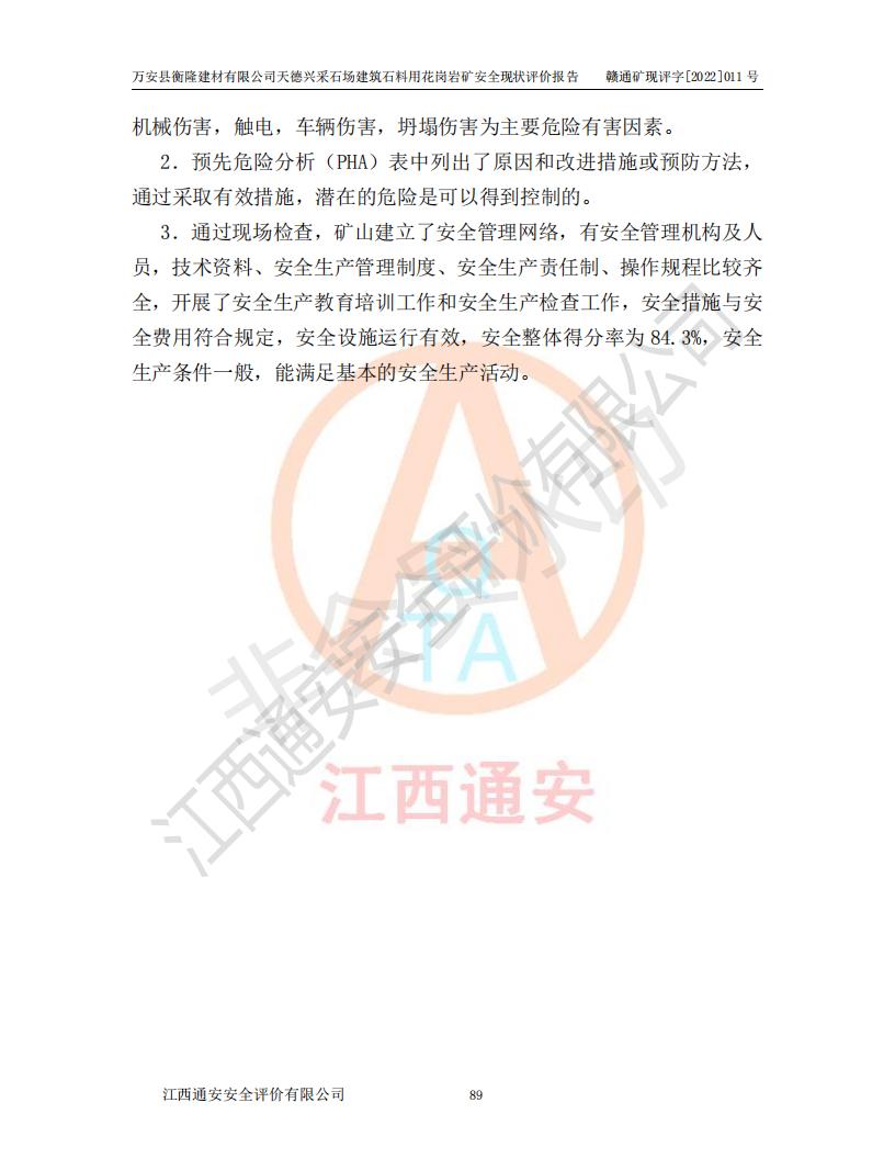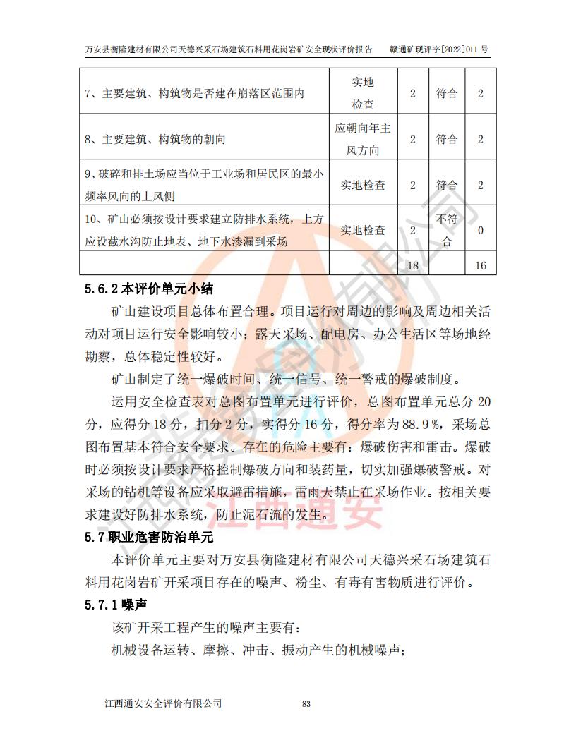 萬安縣衡隆建材有限公司天德興采石場建筑石料用花崗巖礦安全現(xiàn)狀評價報告