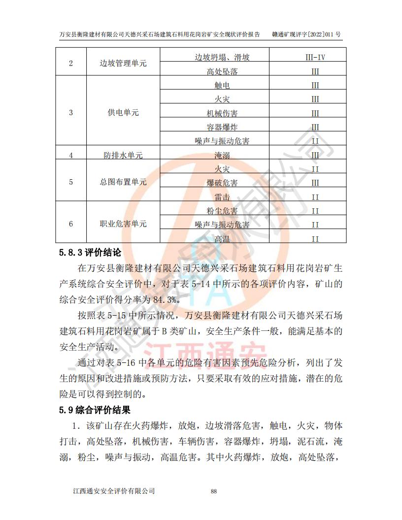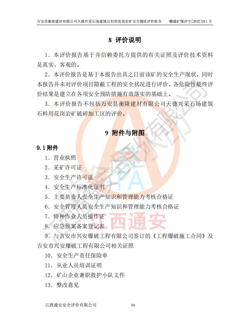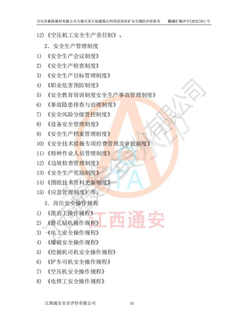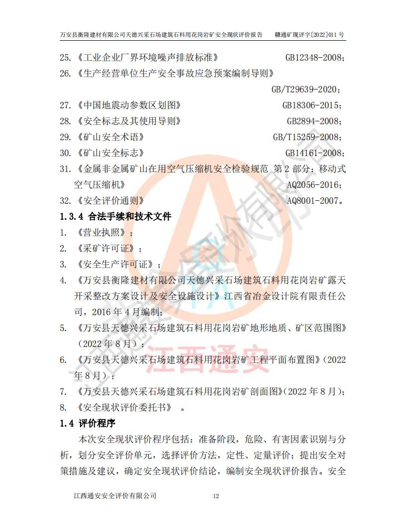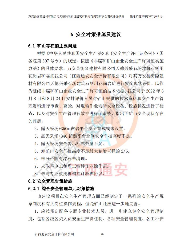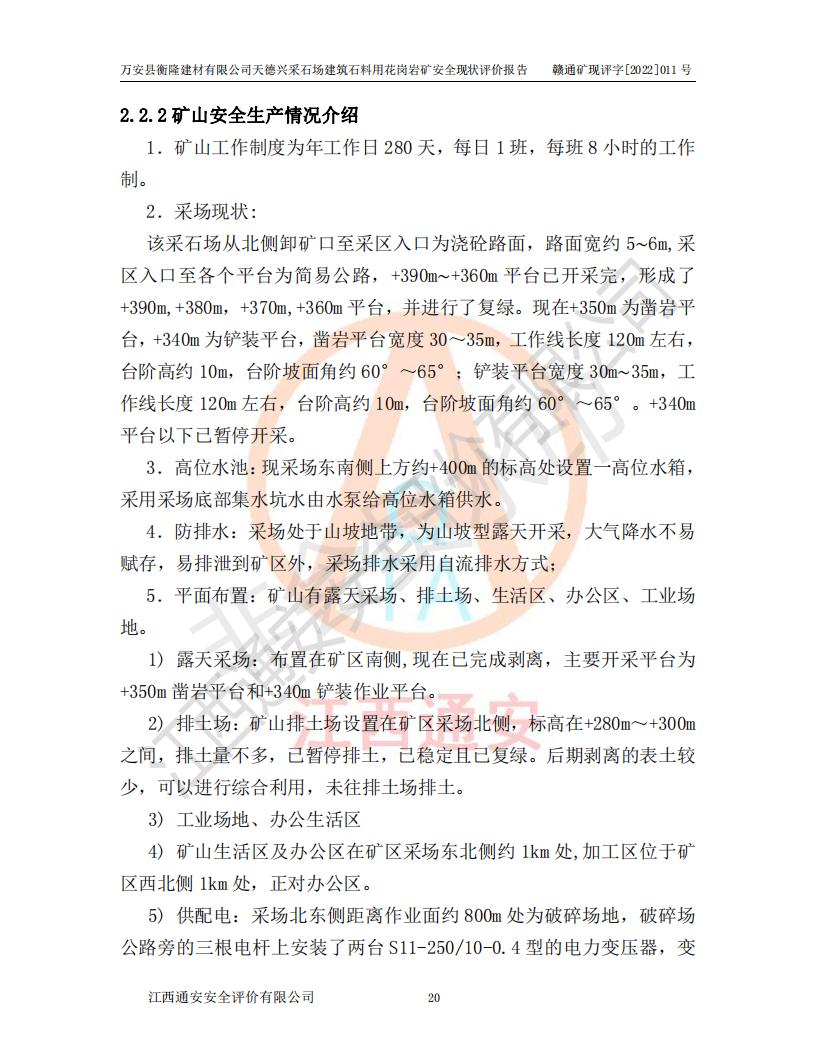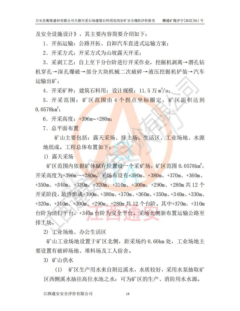 萬安縣衡隆建材有限公司天德興采石場建筑石料用花崗巖礦安全現(xiàn)狀評價報告