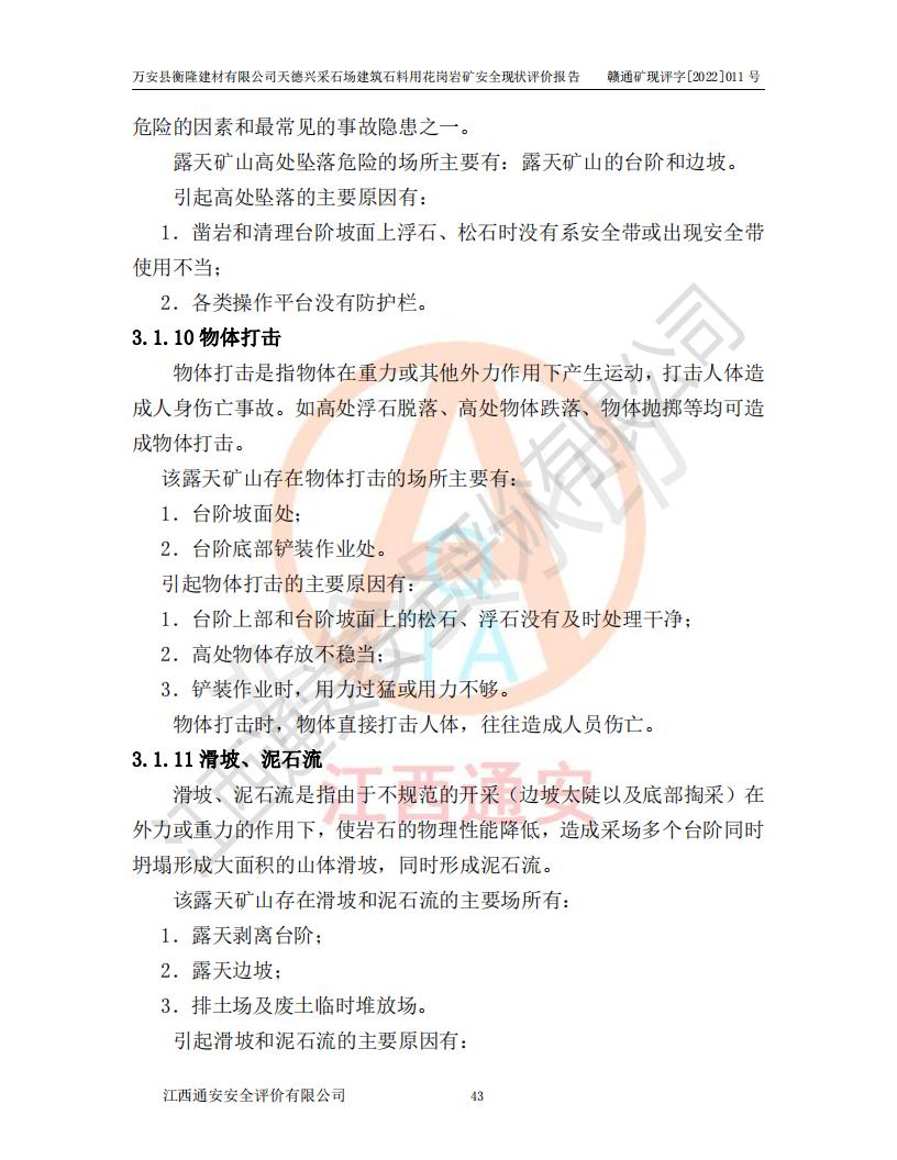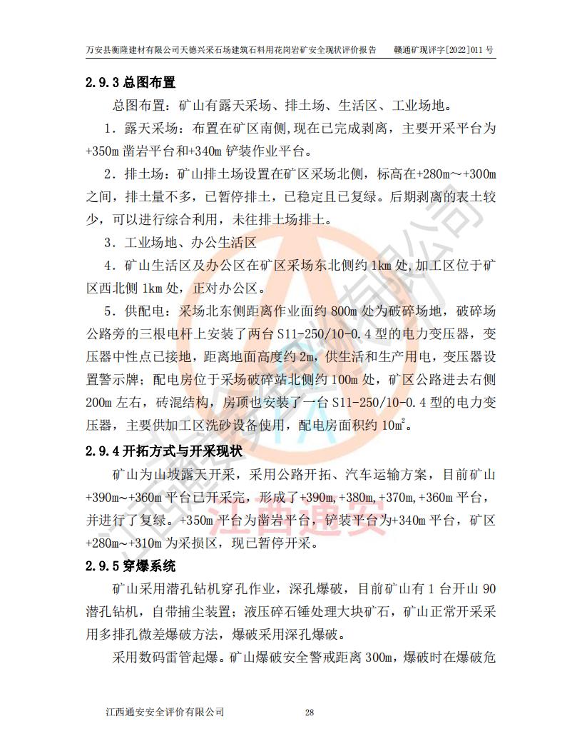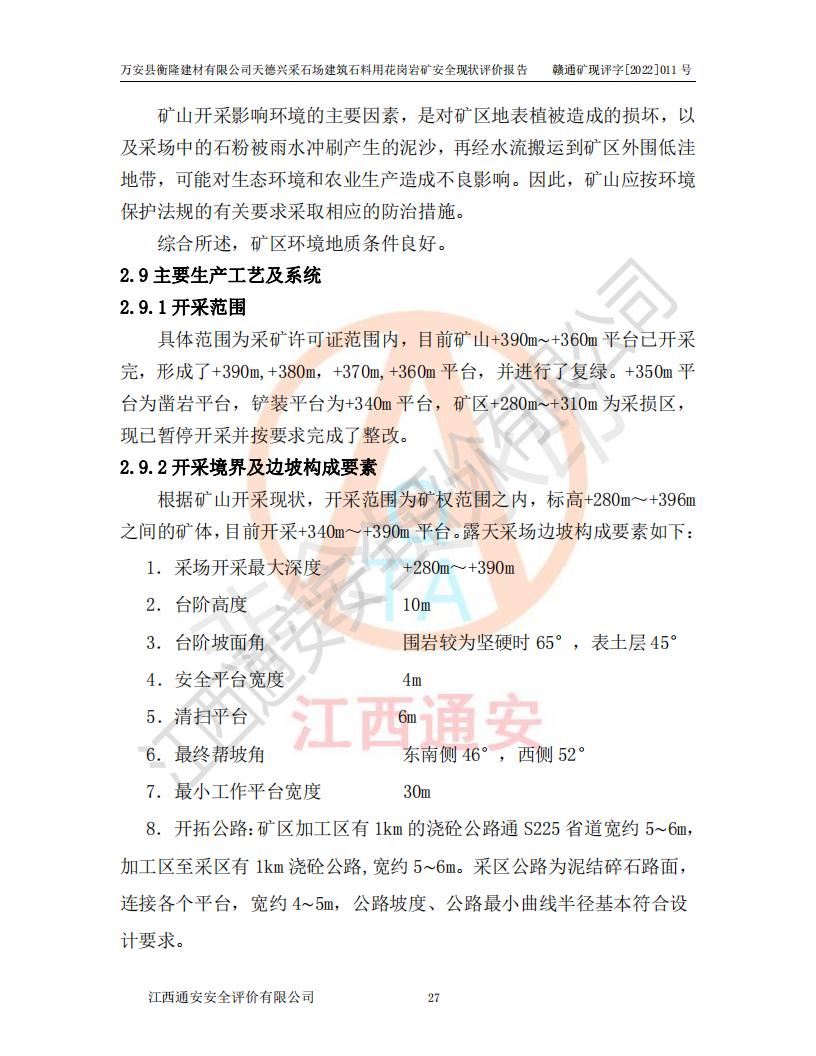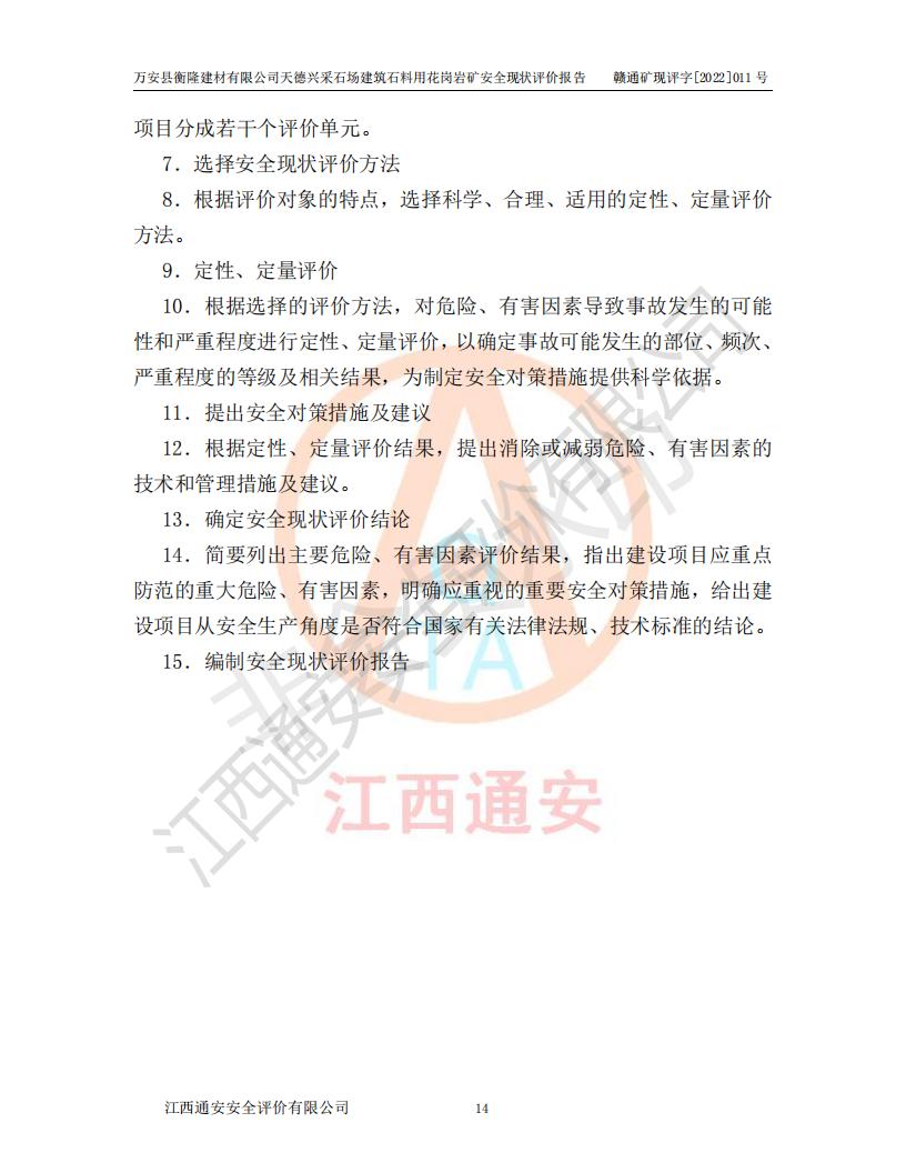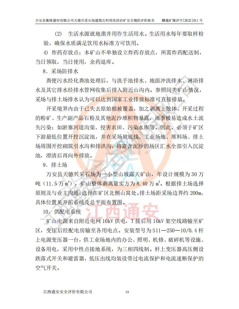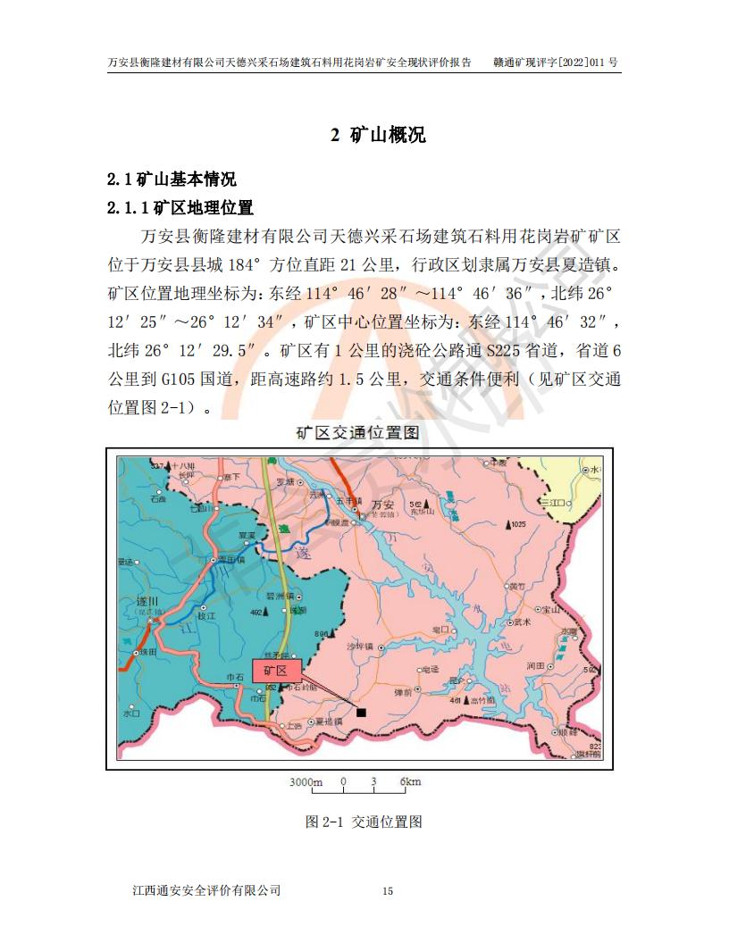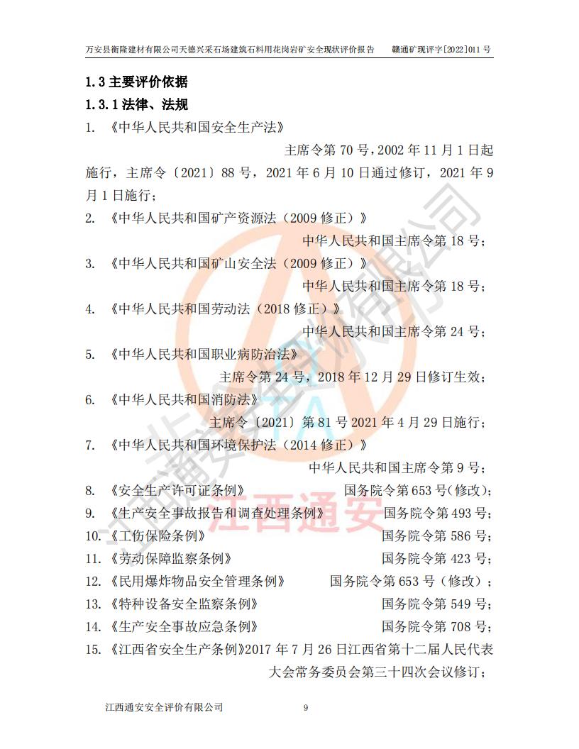 萬安縣衡隆建材有限公司天德興采石場建筑石料用花崗巖礦安全現(xiàn)狀評價報告