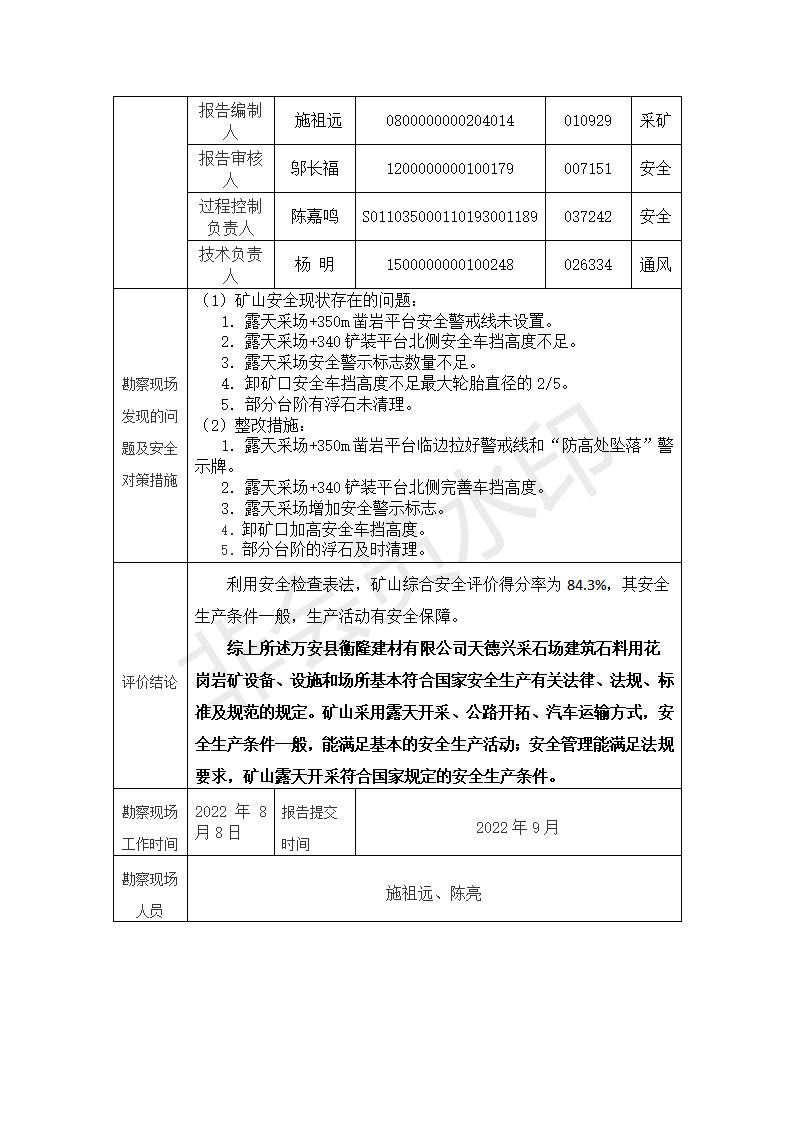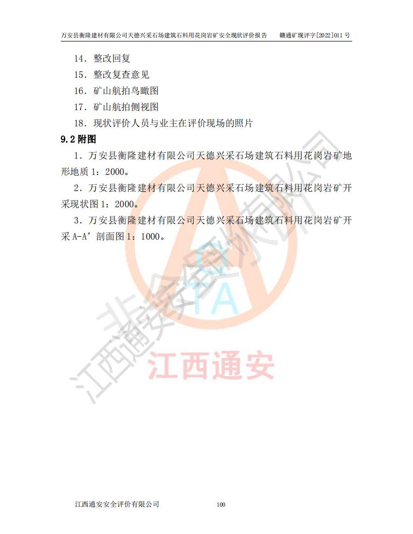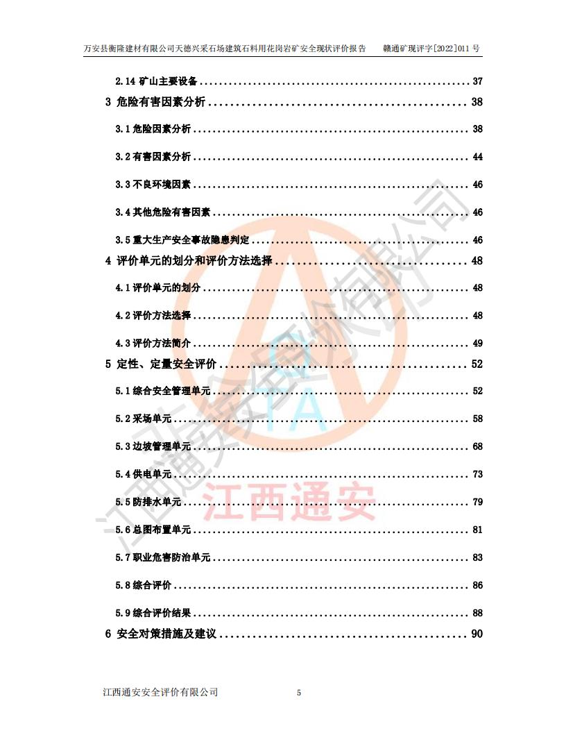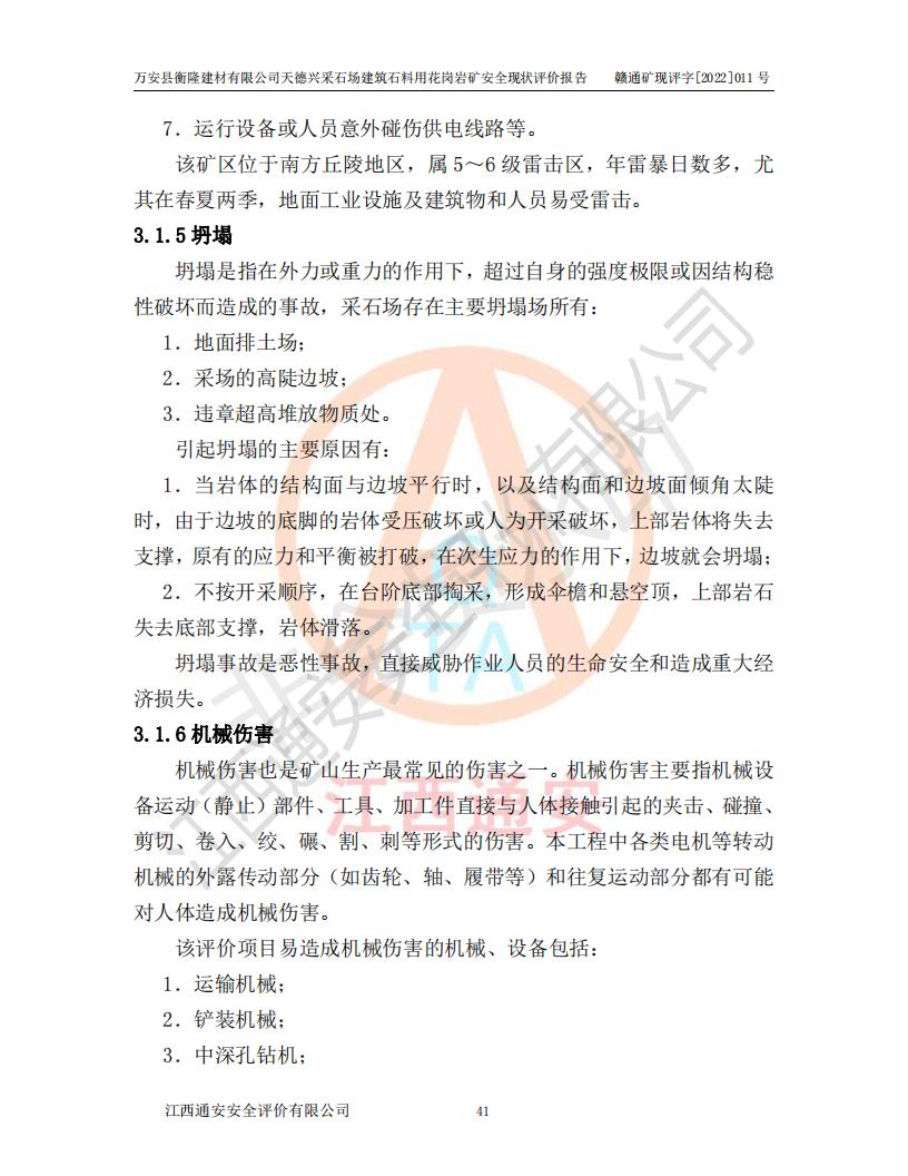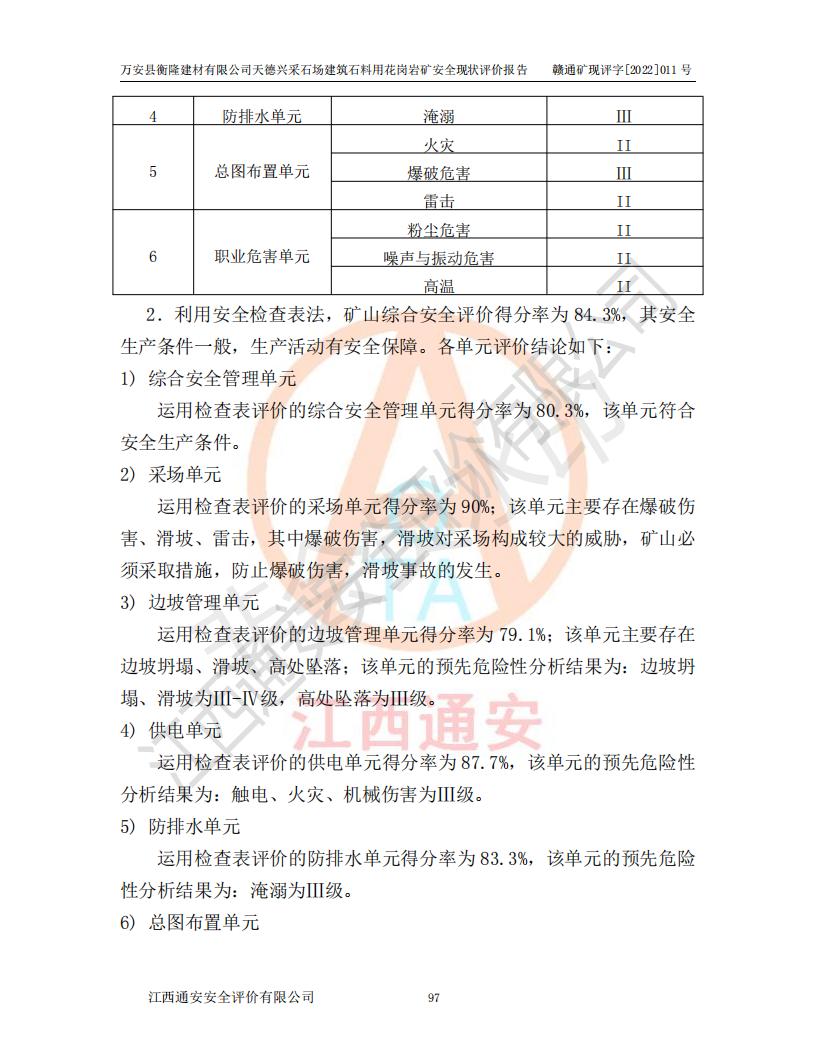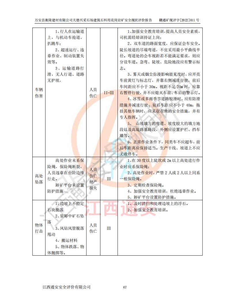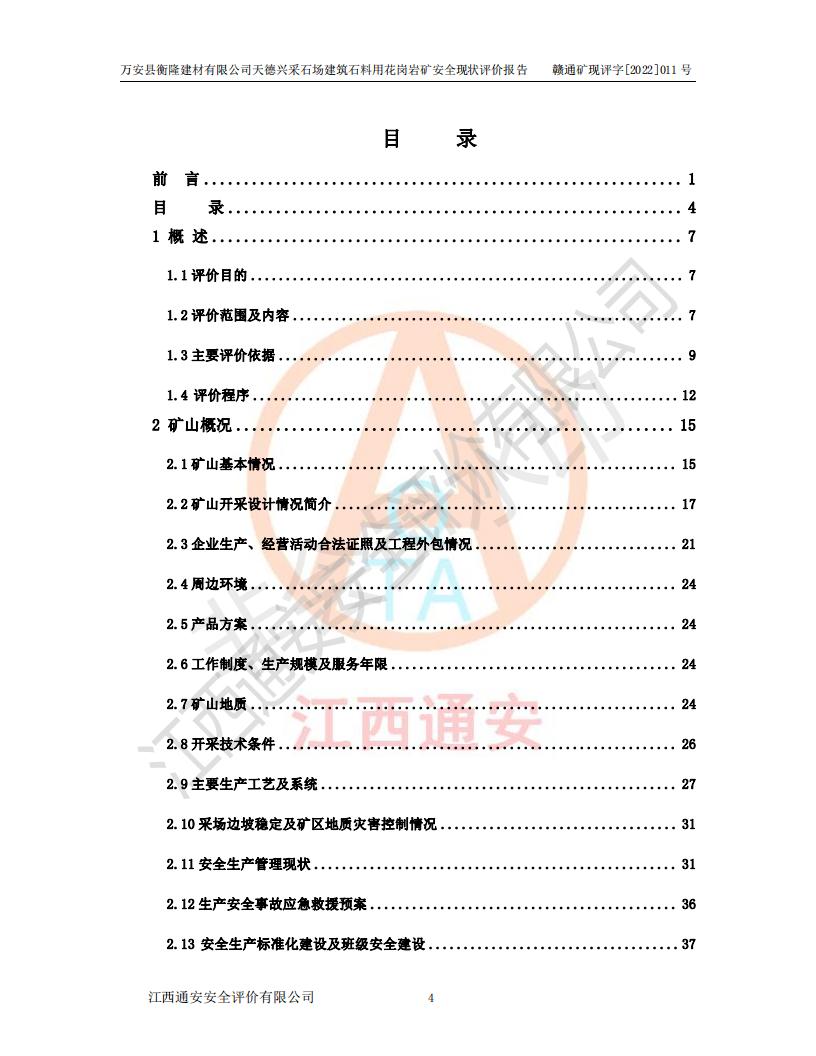 萬安縣衡隆建材有限公司天德興采石場建筑石料用花崗巖礦安全現(xiàn)狀評價報告