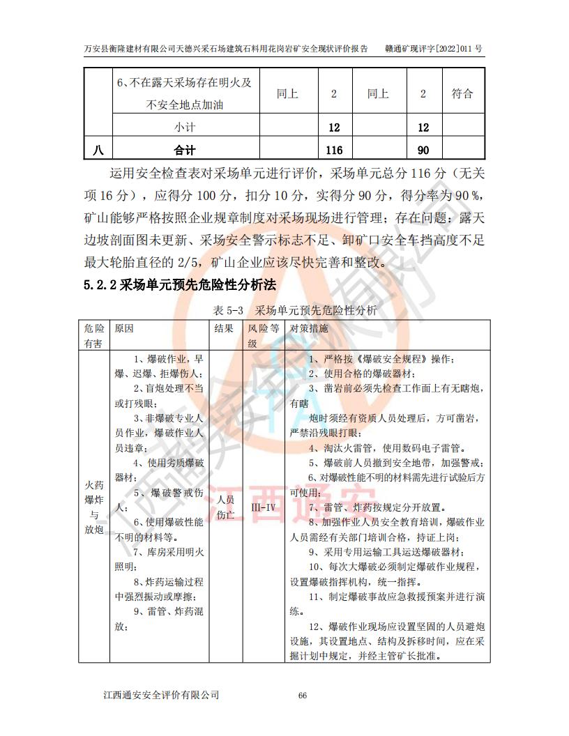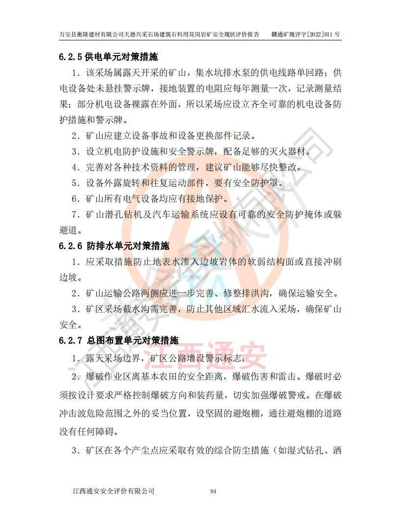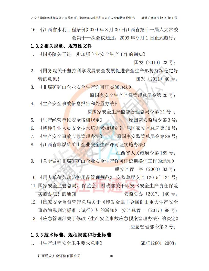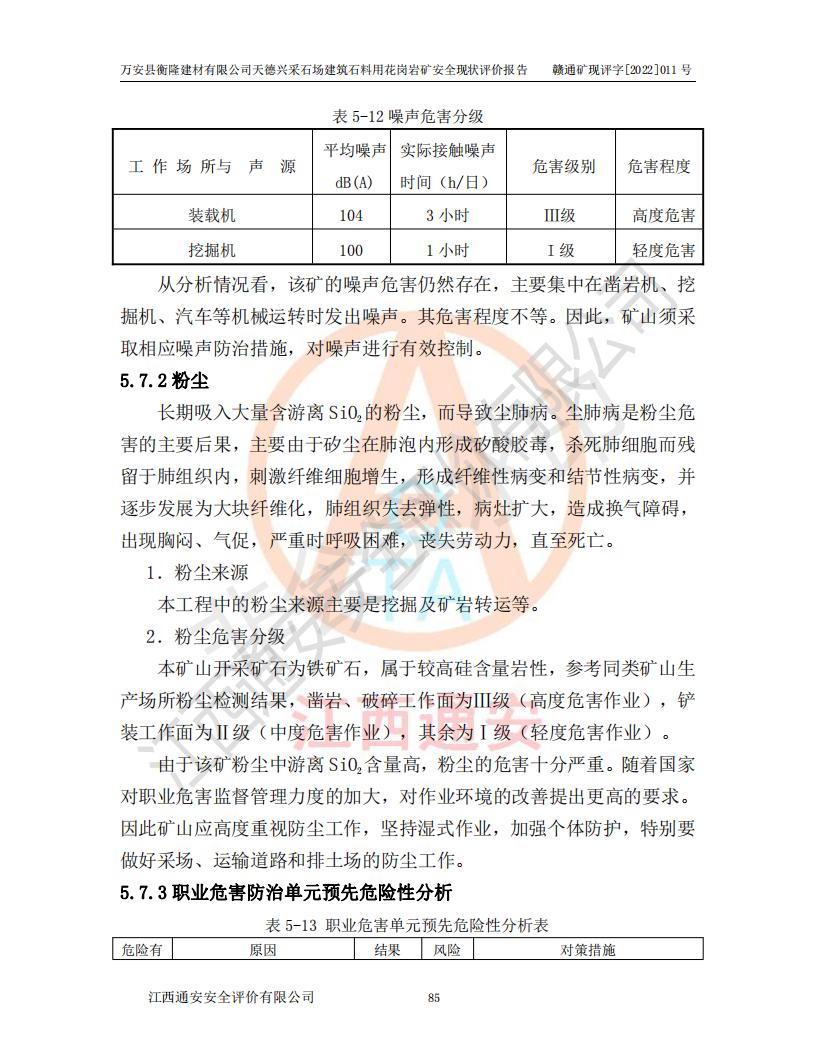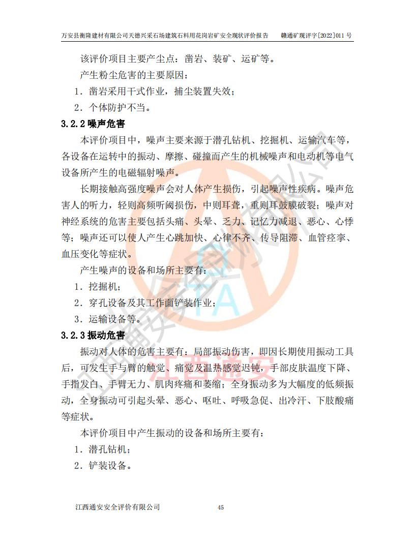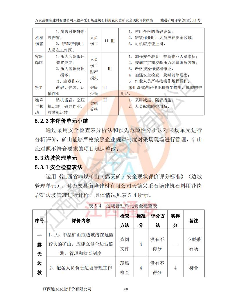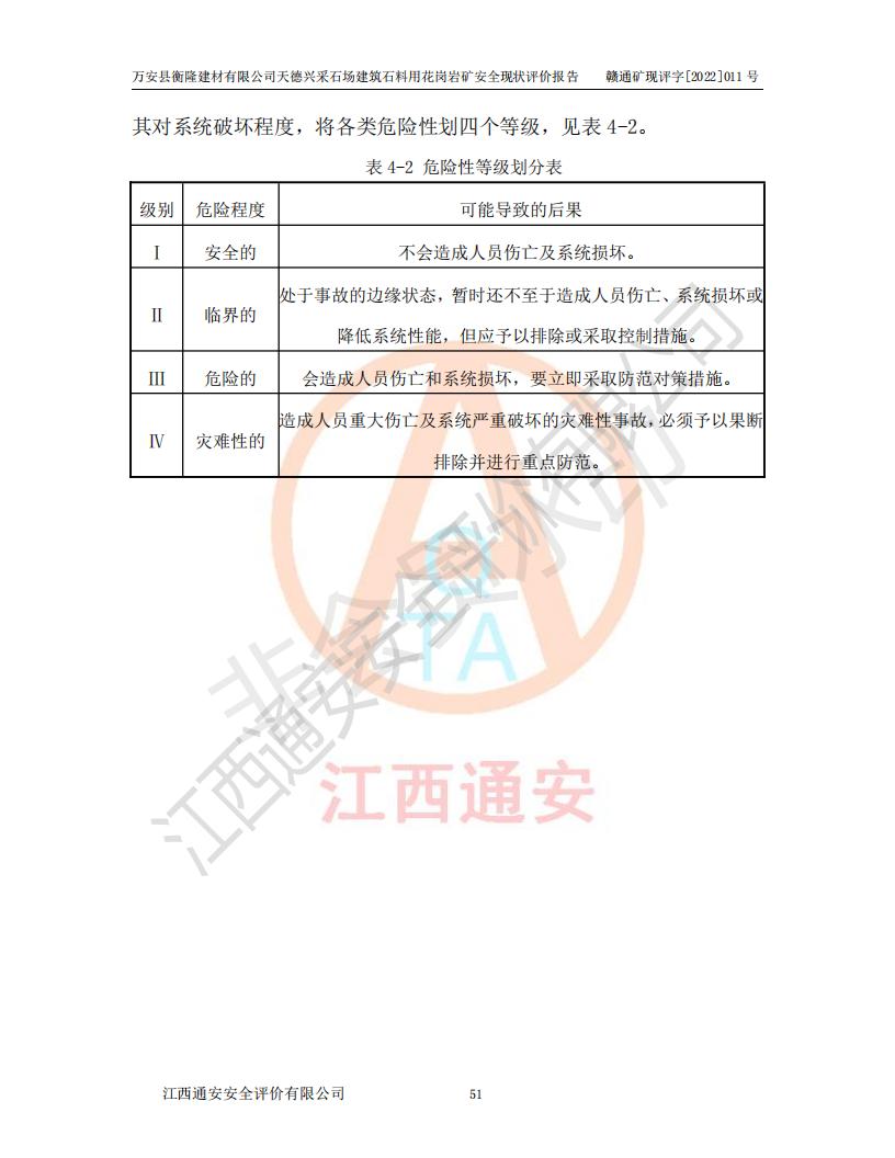 萬安縣衡隆建材有限公司天德興采石場建筑石料用花崗巖礦安全現(xiàn)狀評價報告