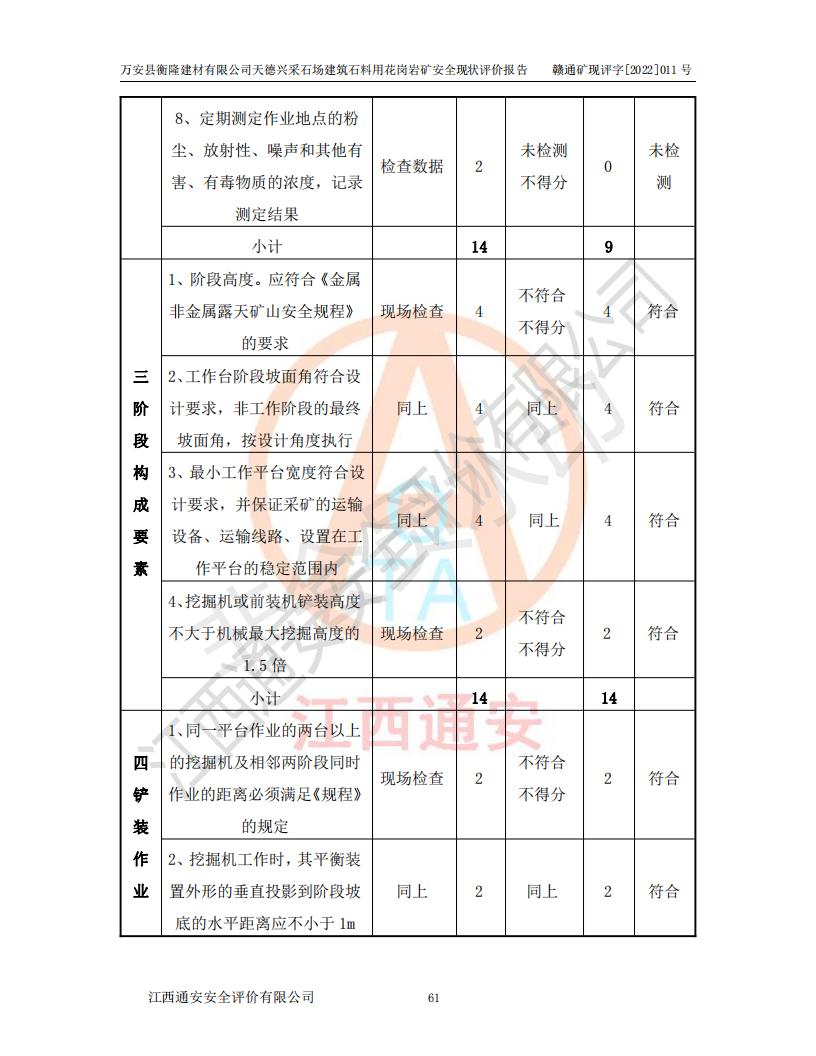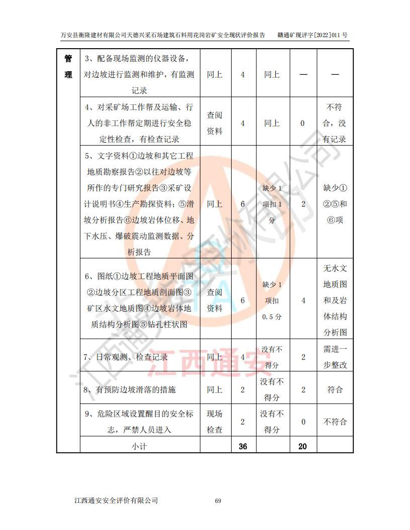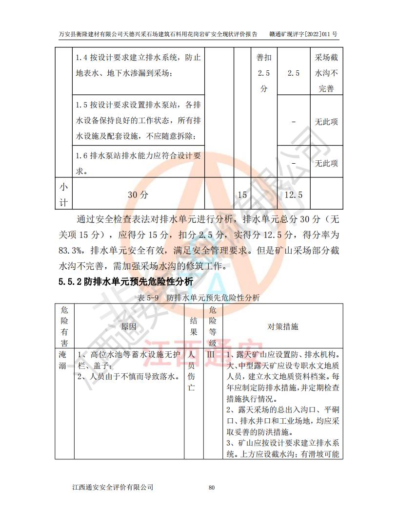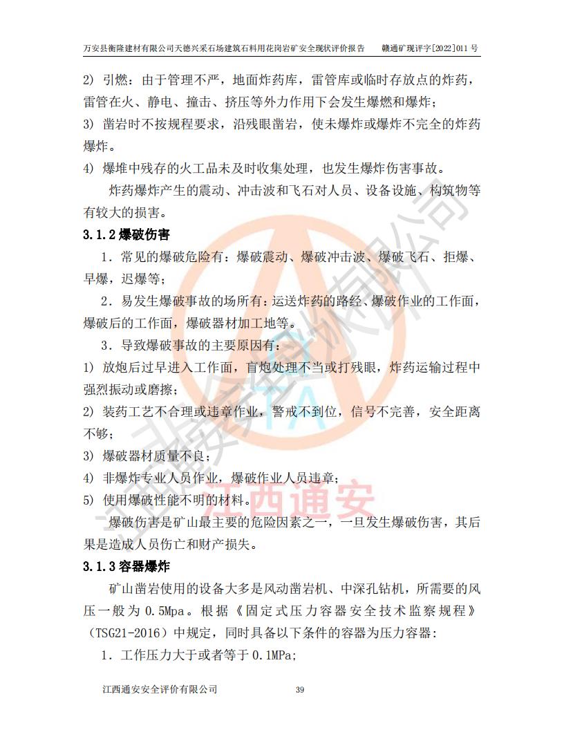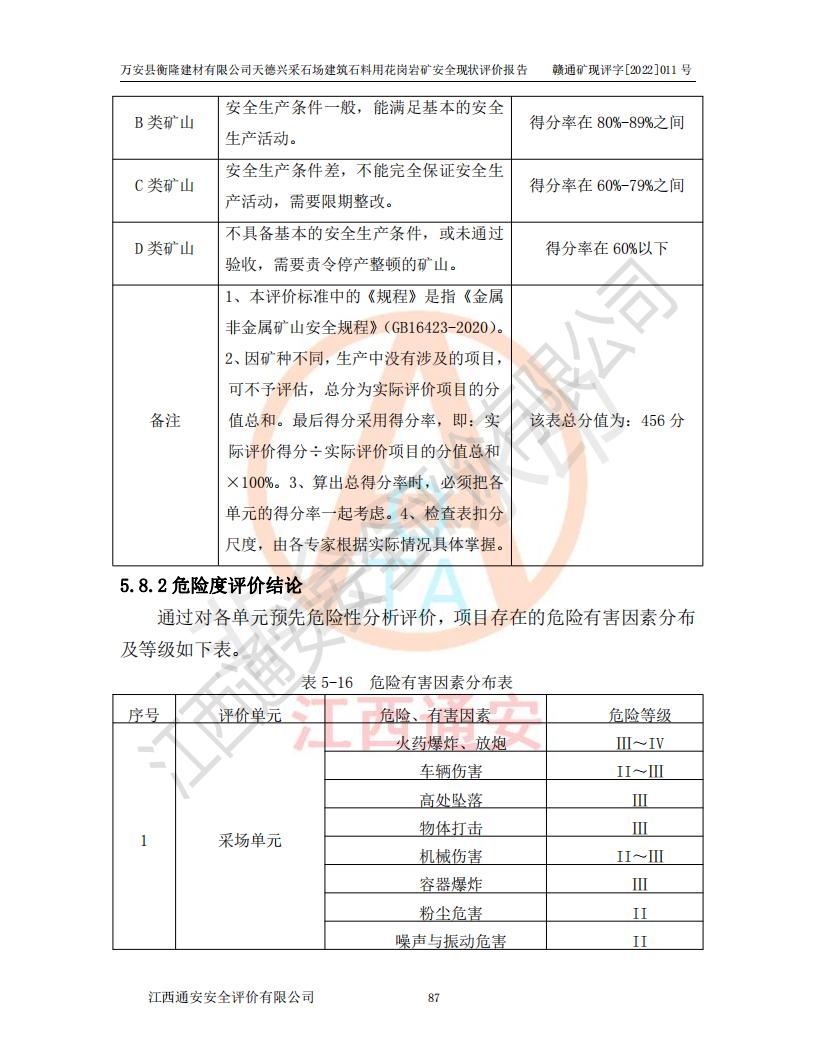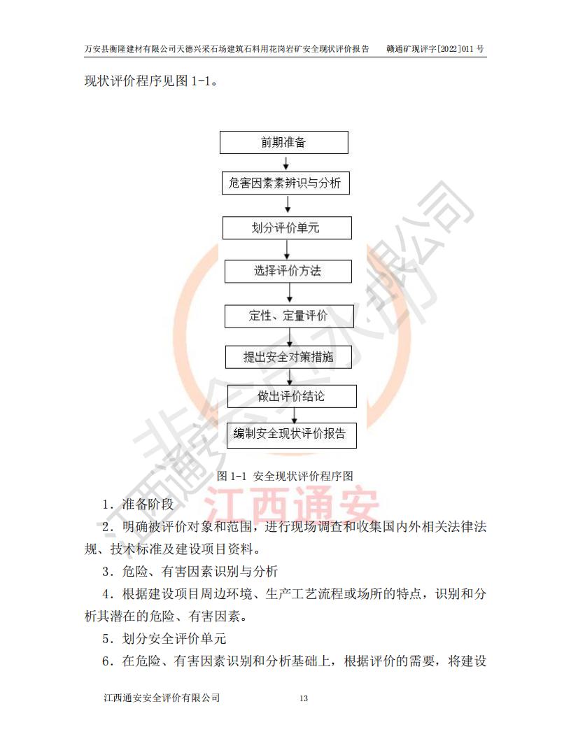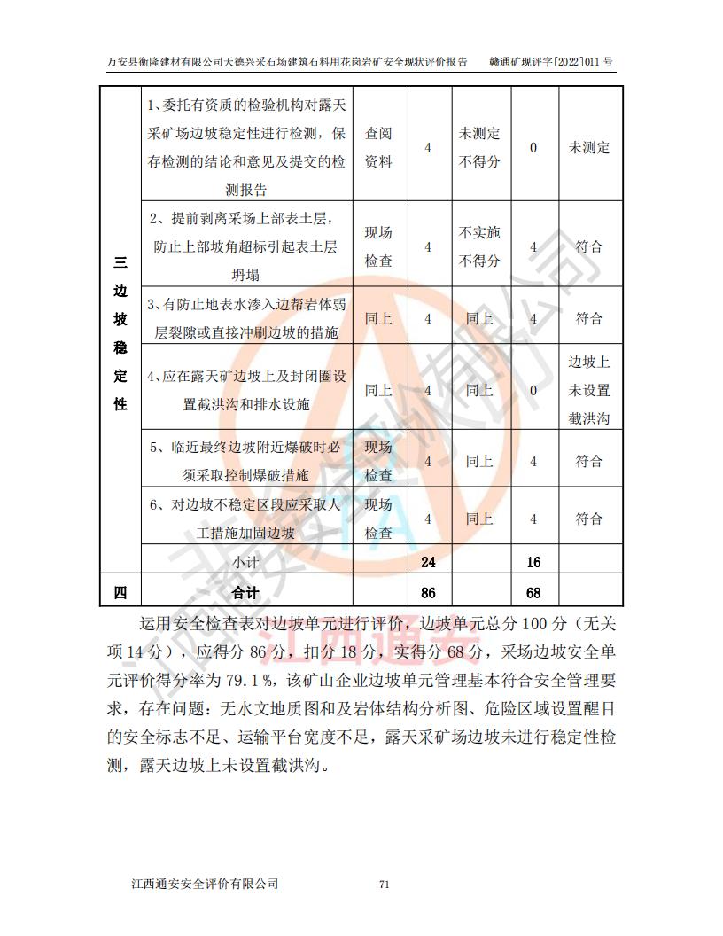 萬安縣衡隆建材有限公司天德興采石場建筑石料用花崗巖礦安全現(xiàn)狀評價報告