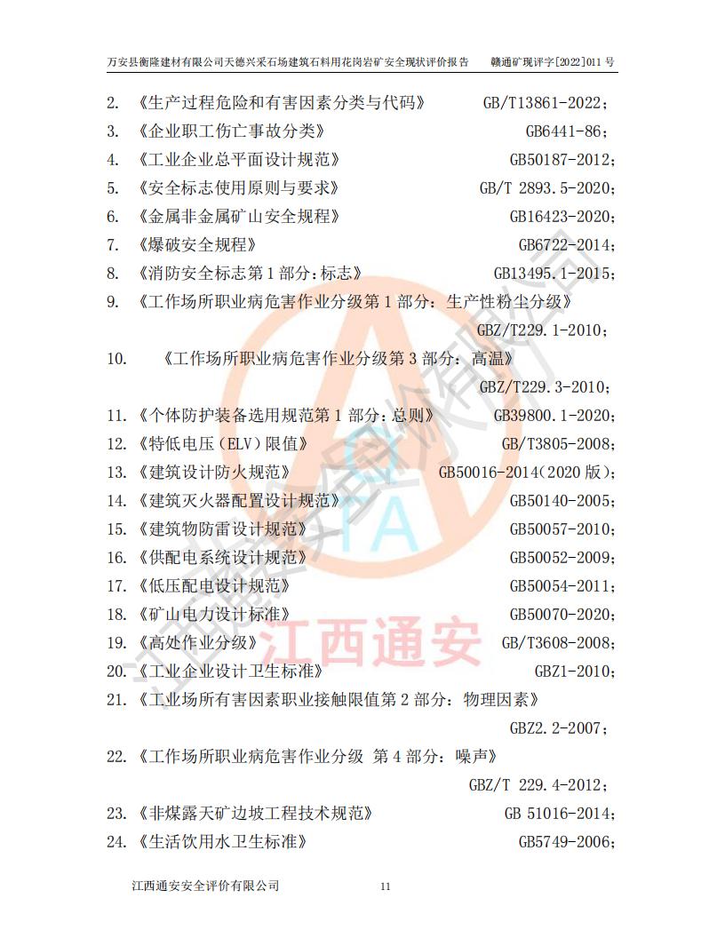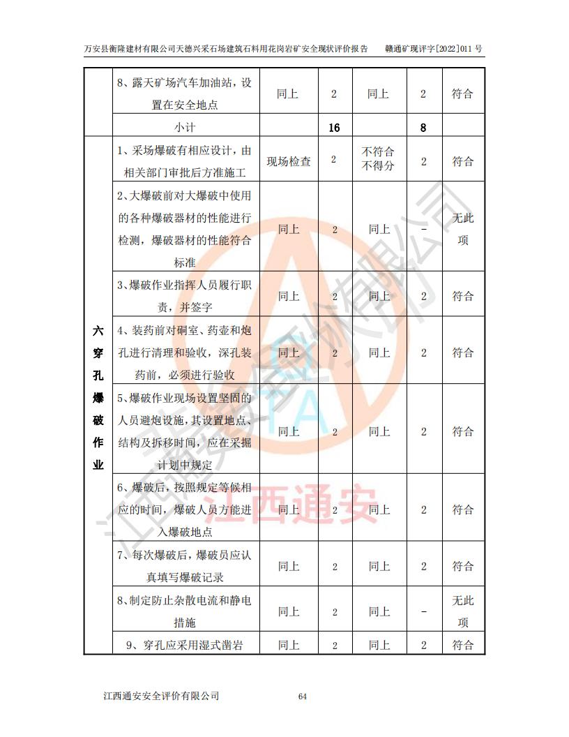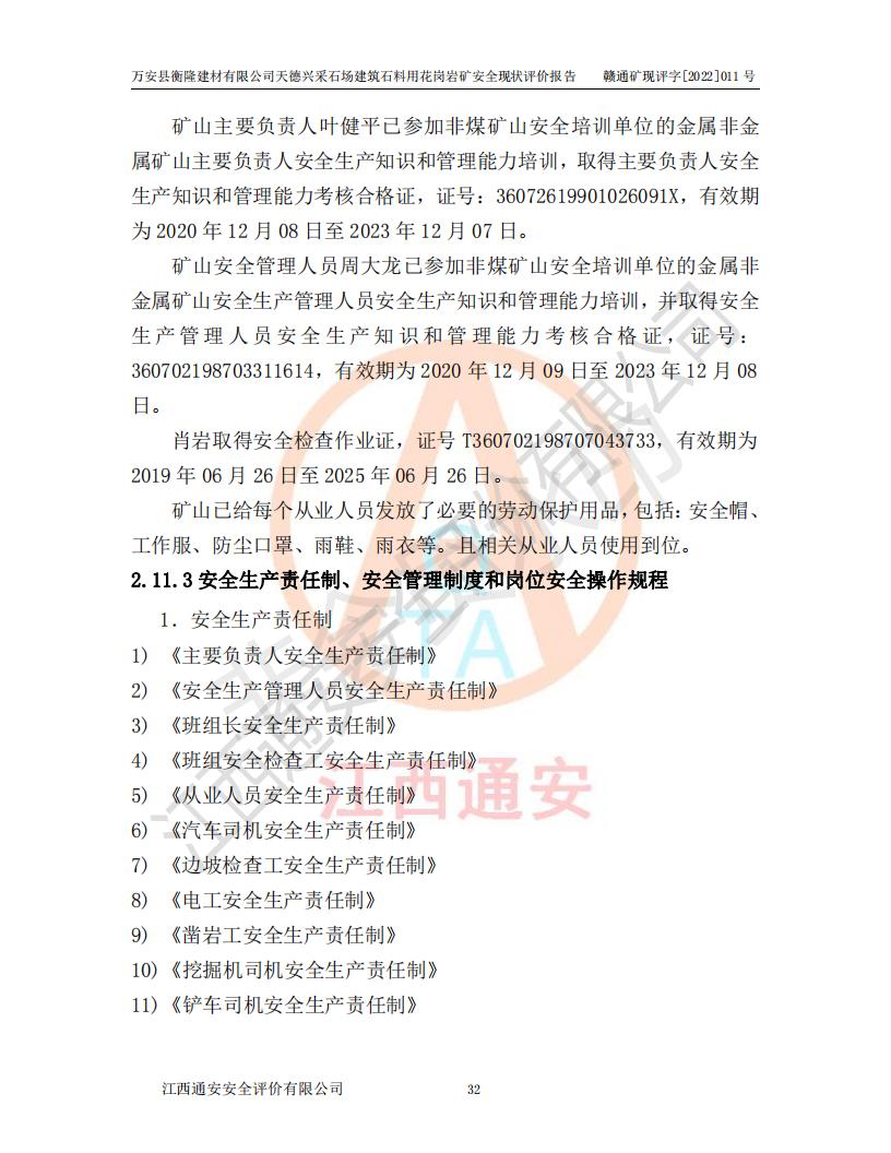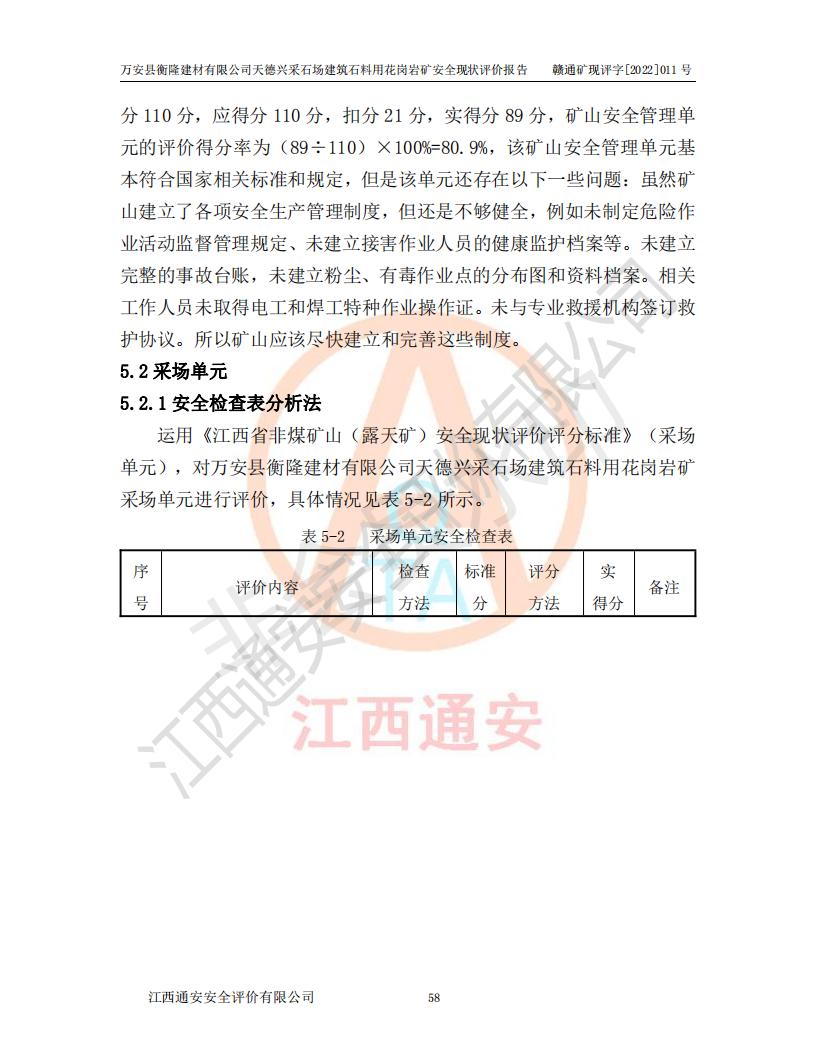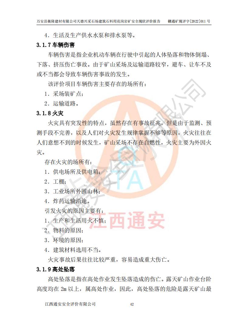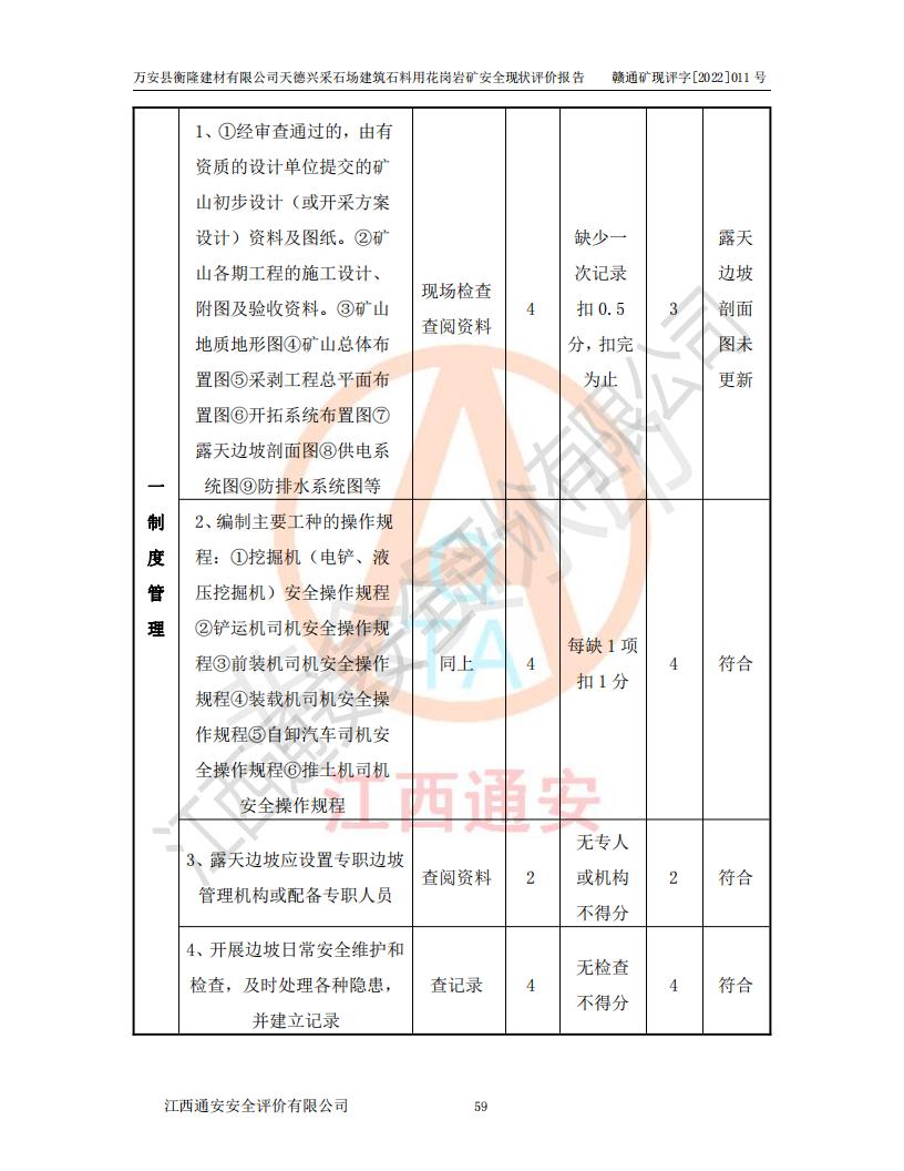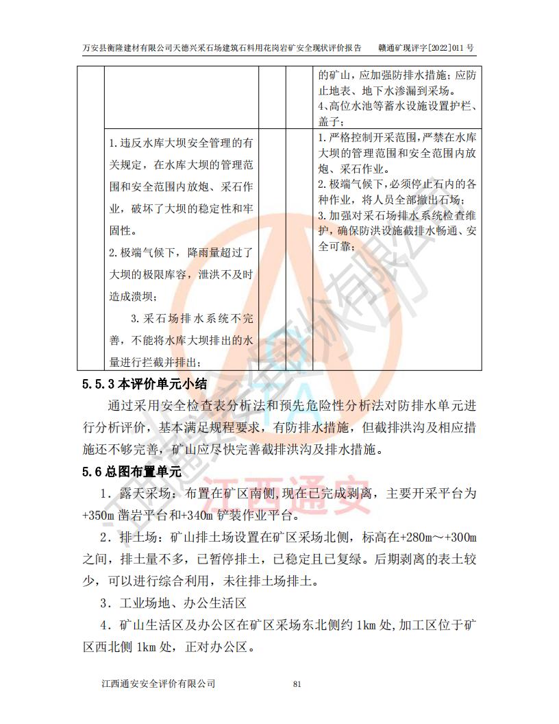萬安縣衡隆建材有限公司天德興采石場建筑石料用花崗巖礦安全現(xiàn)狀評價報告