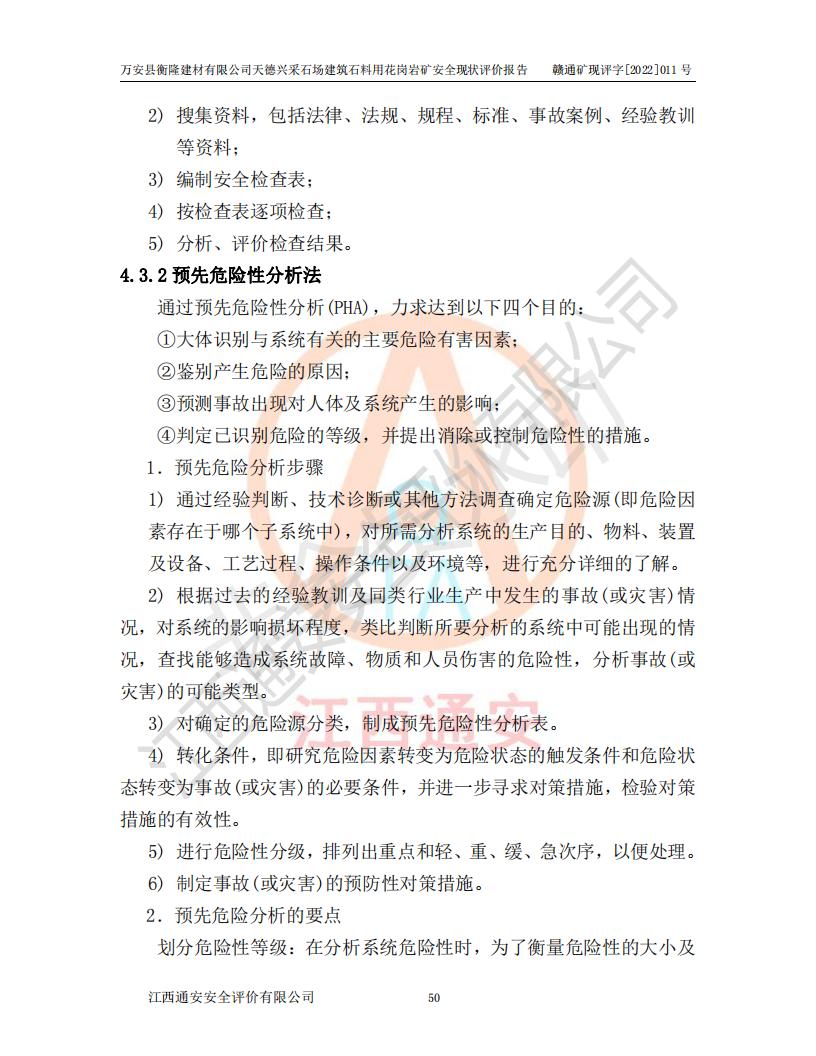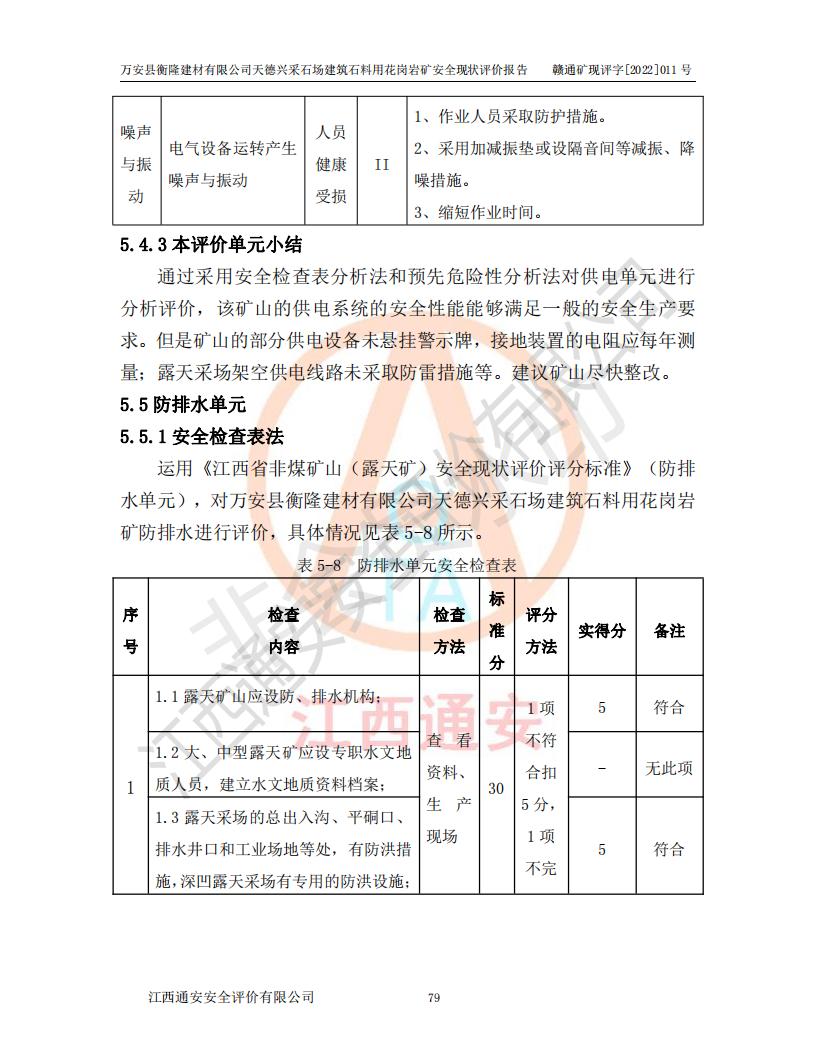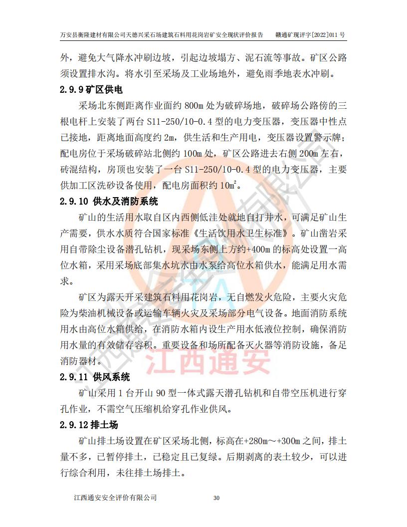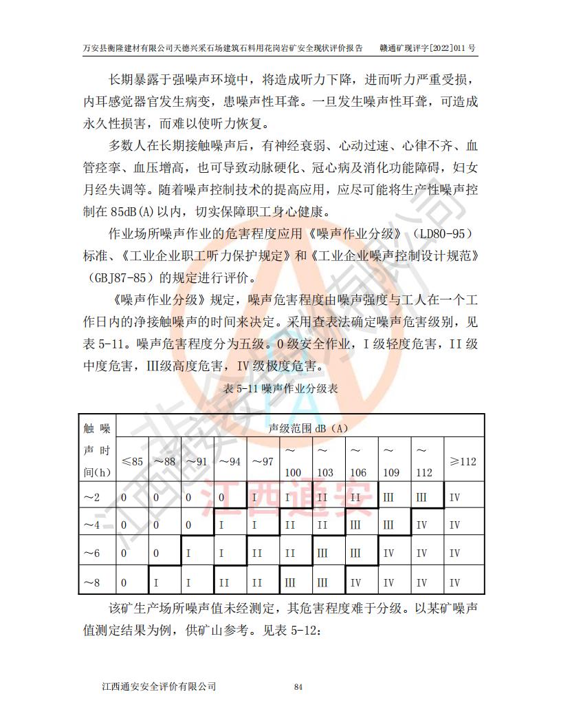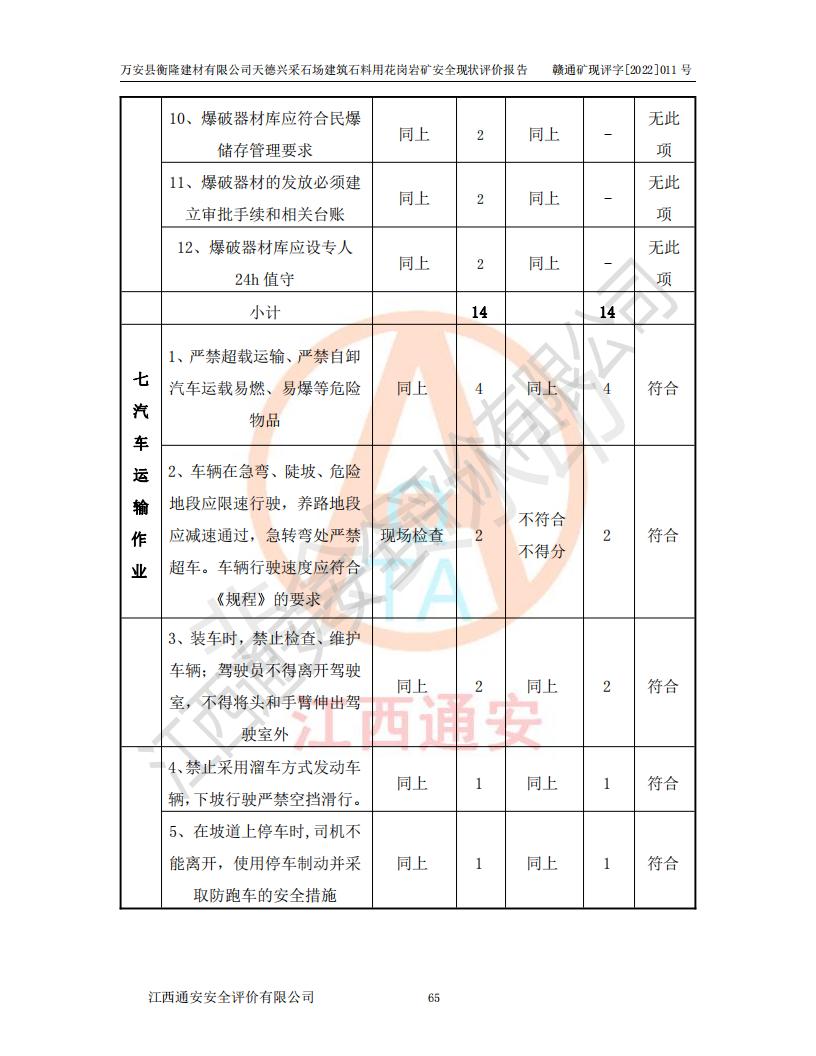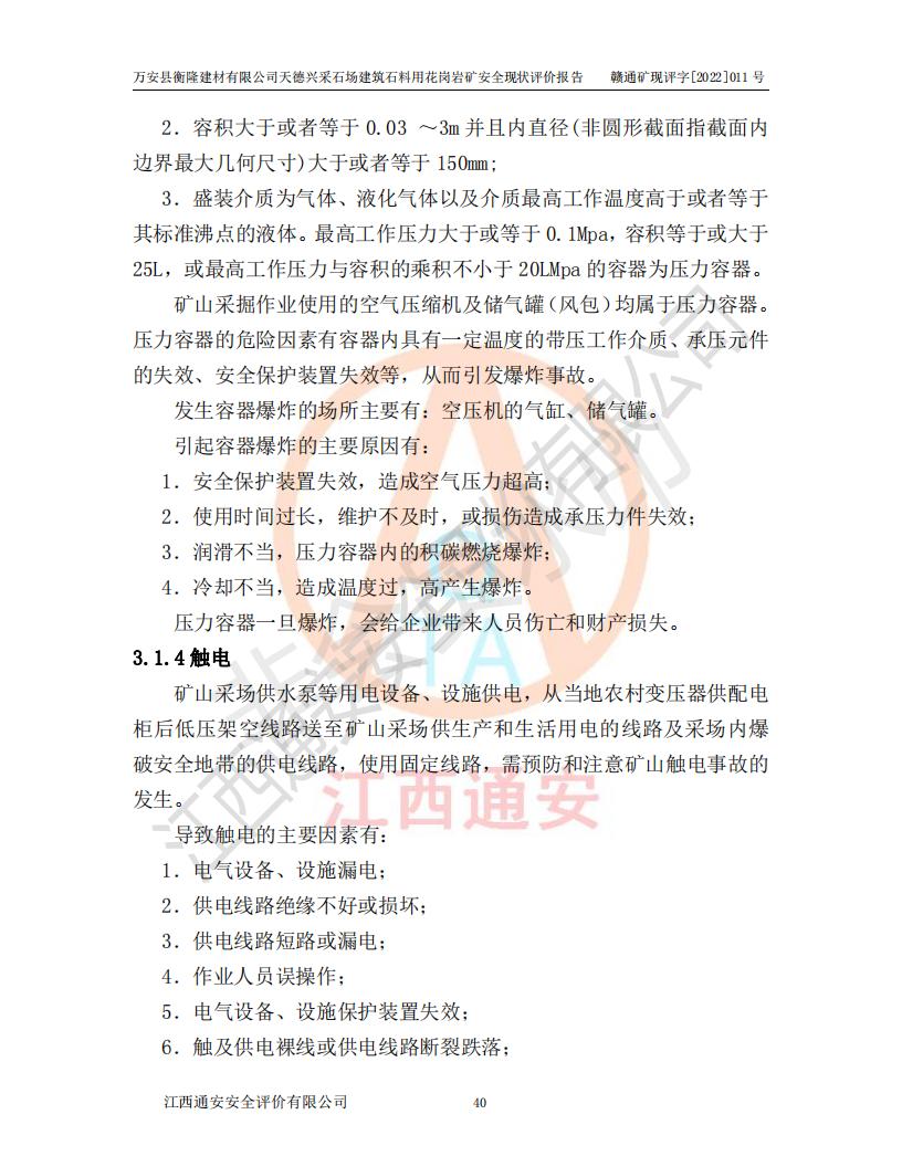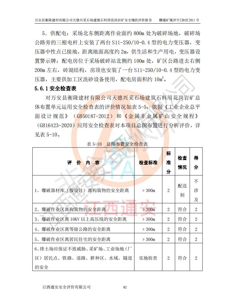 萬安縣衡隆建材有限公司天德興采石場建筑石料用花崗巖礦安全現(xiàn)狀評價報告