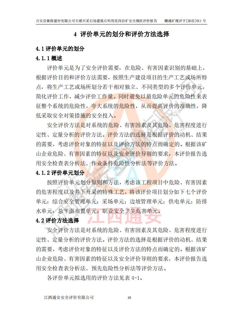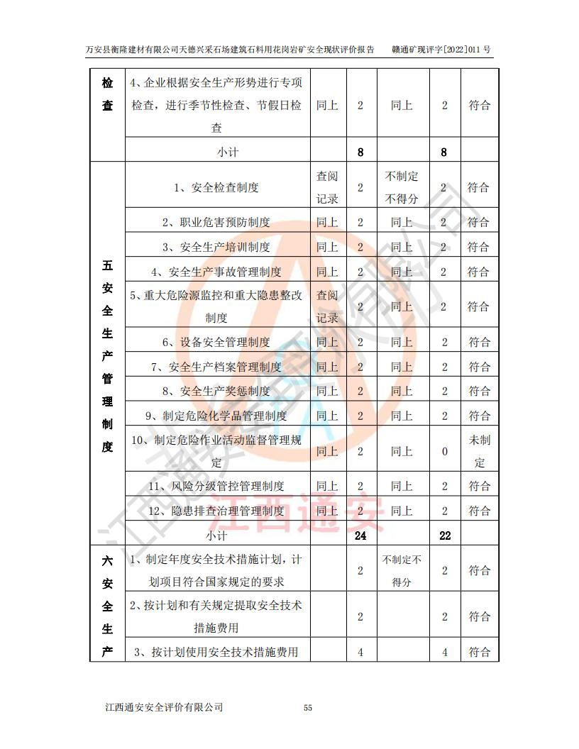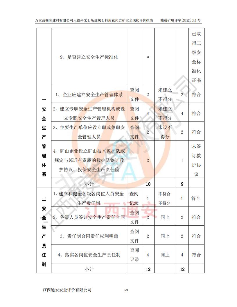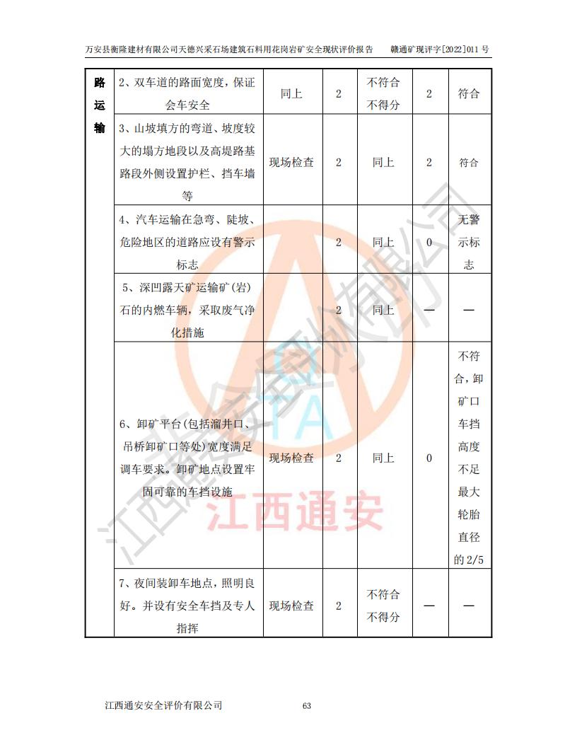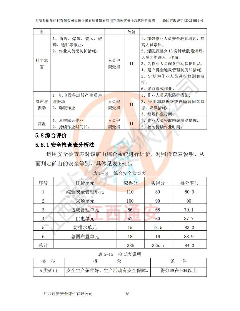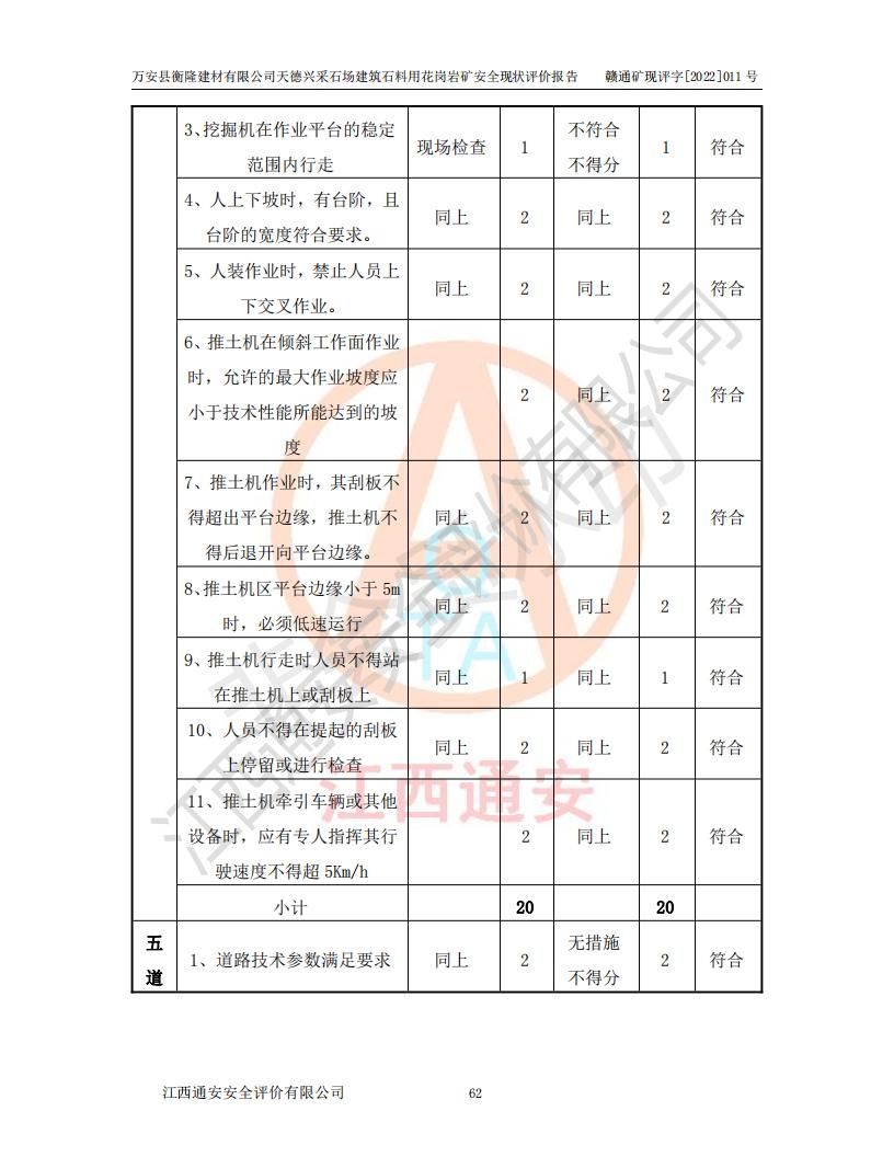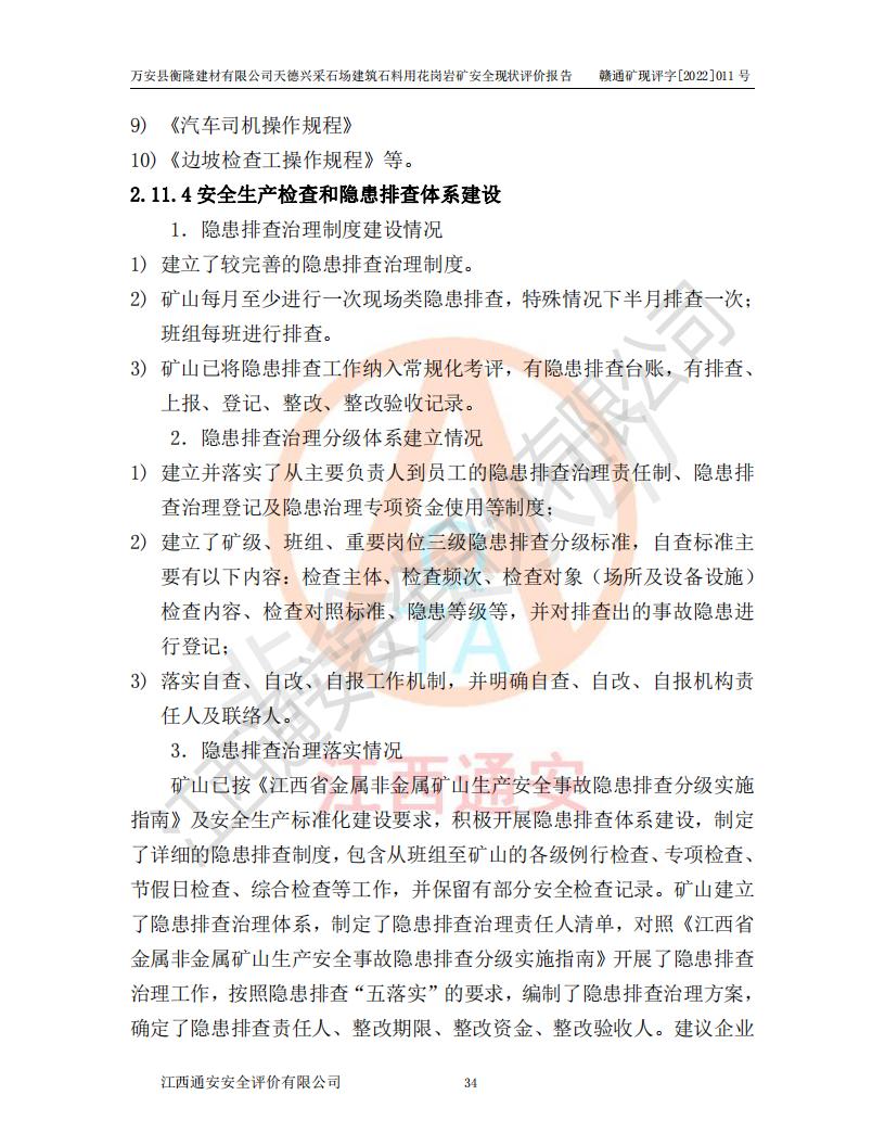 萬安縣衡隆建材有限公司天德興采石場建筑石料用花崗巖礦安全現(xiàn)狀評價報告