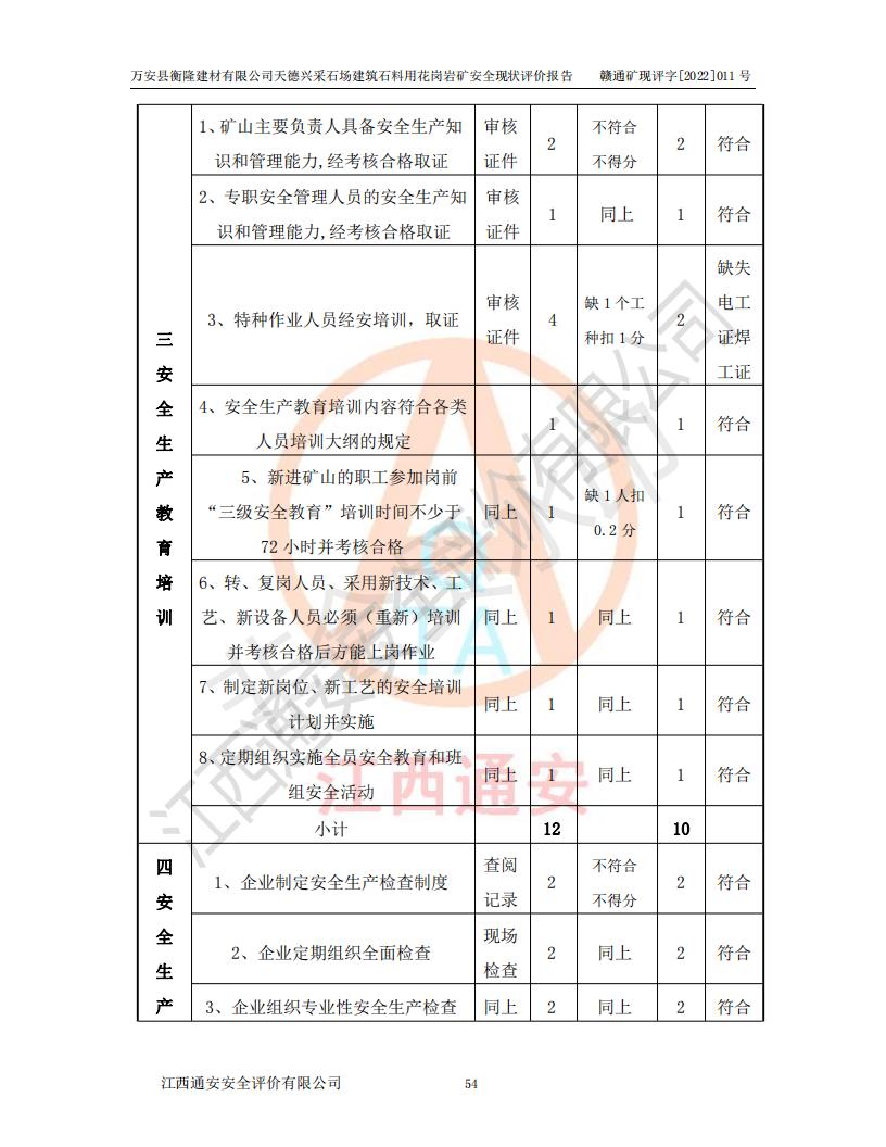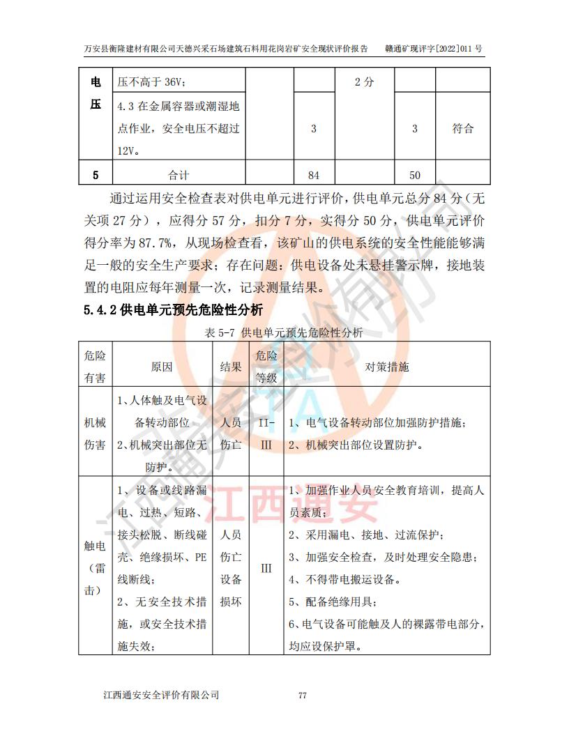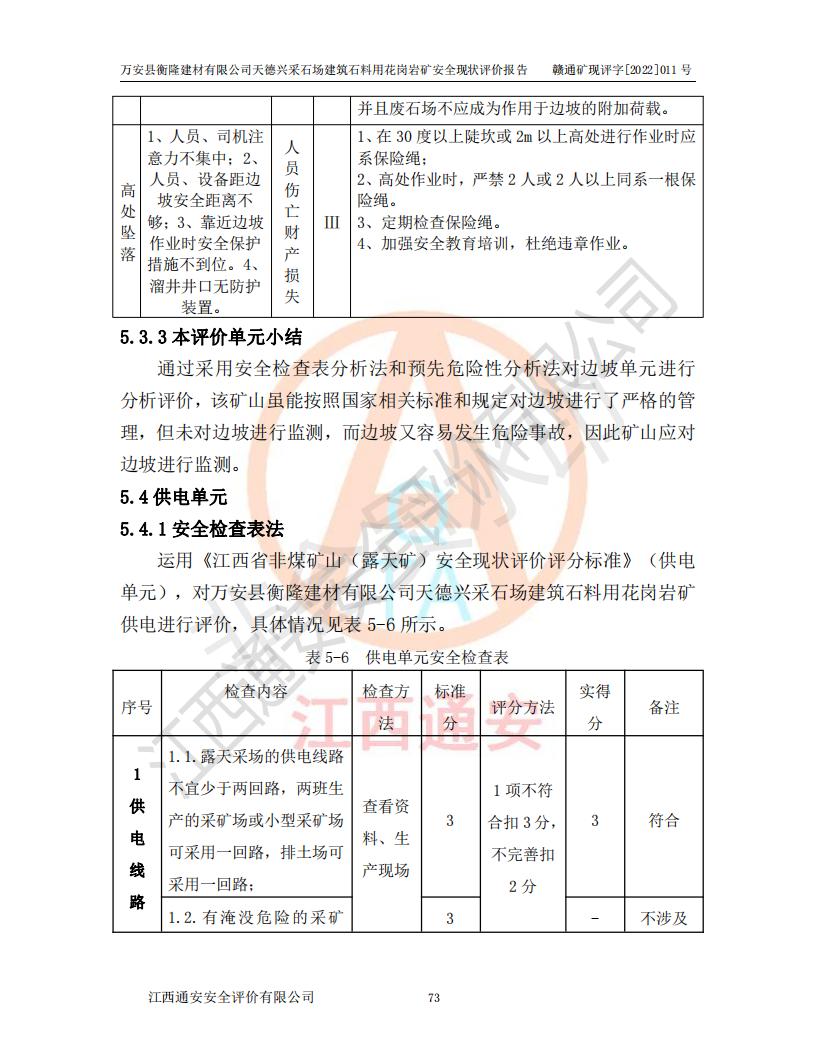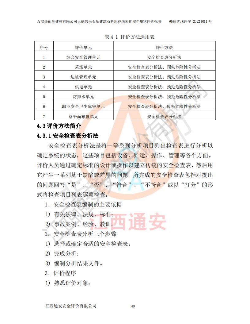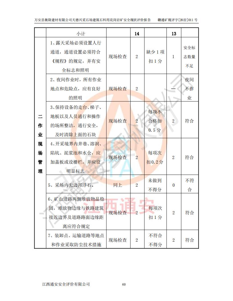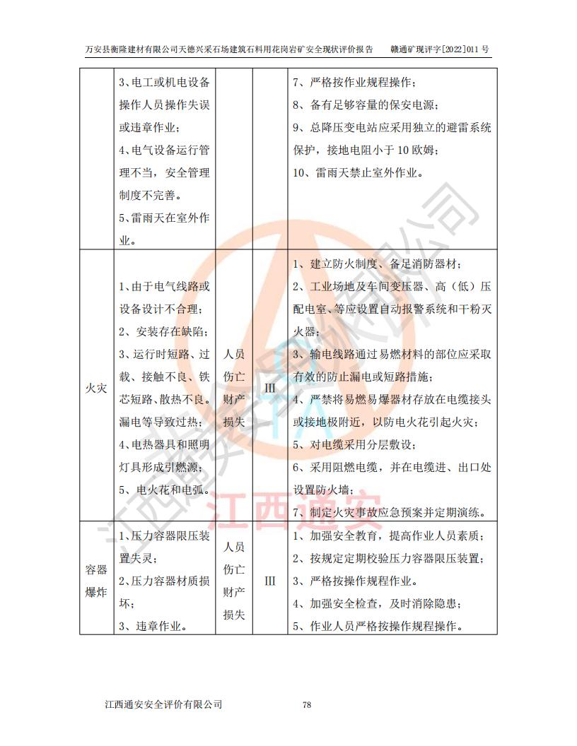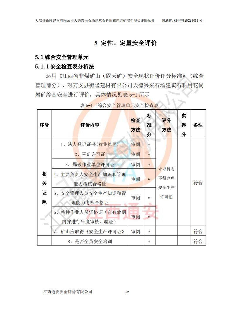 萬安縣衡隆建材有限公司天德興采石場建筑石料用花崗巖礦安全現(xiàn)狀評價報告