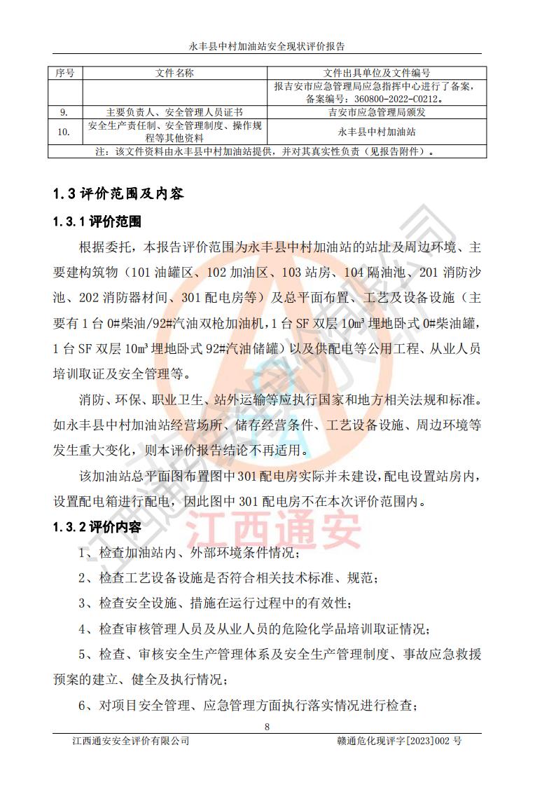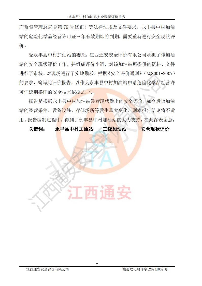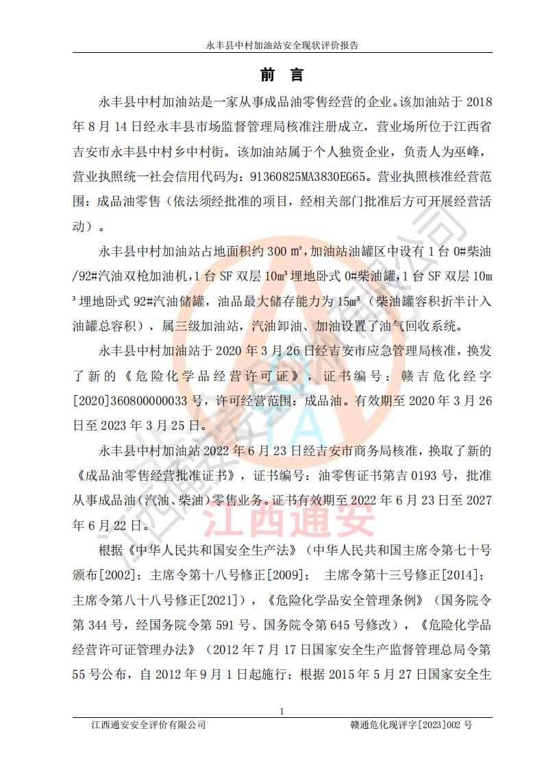 永豐縣中村加油站安全現(xiàn)狀評(píng)價(jià)報(bào)告