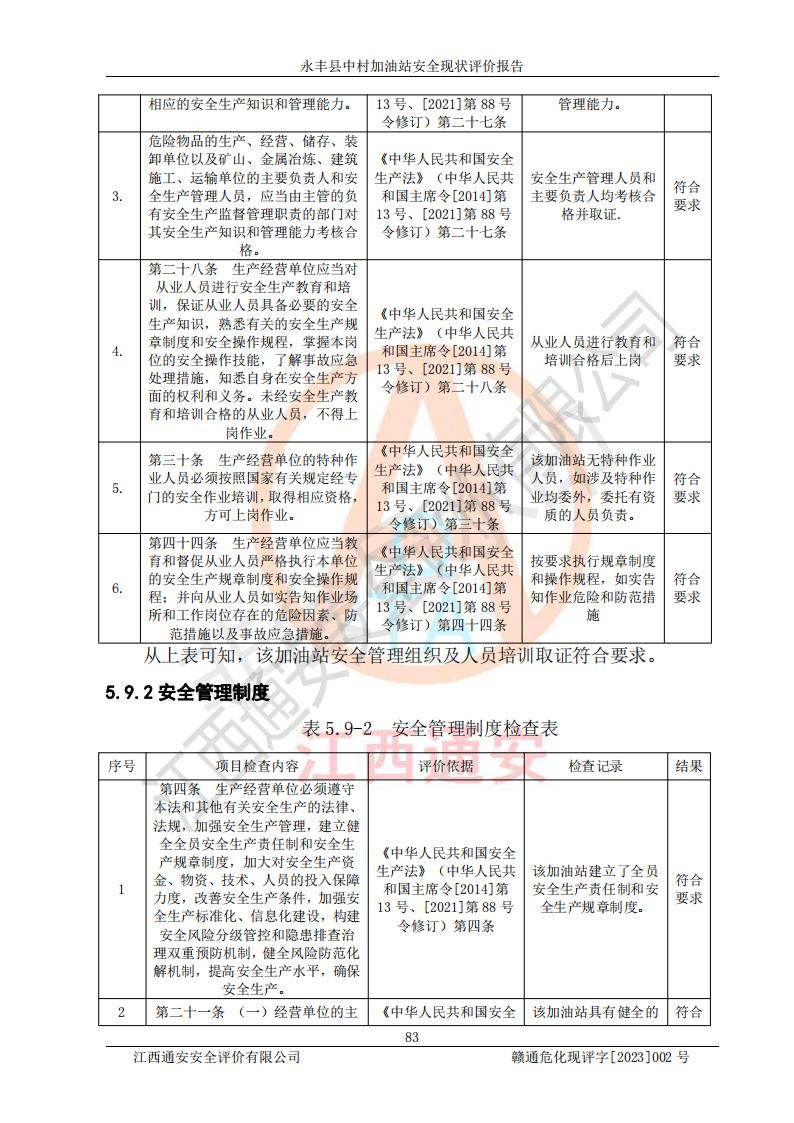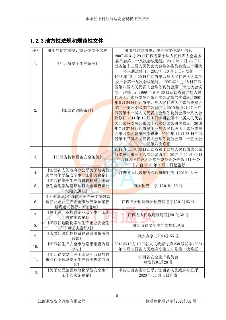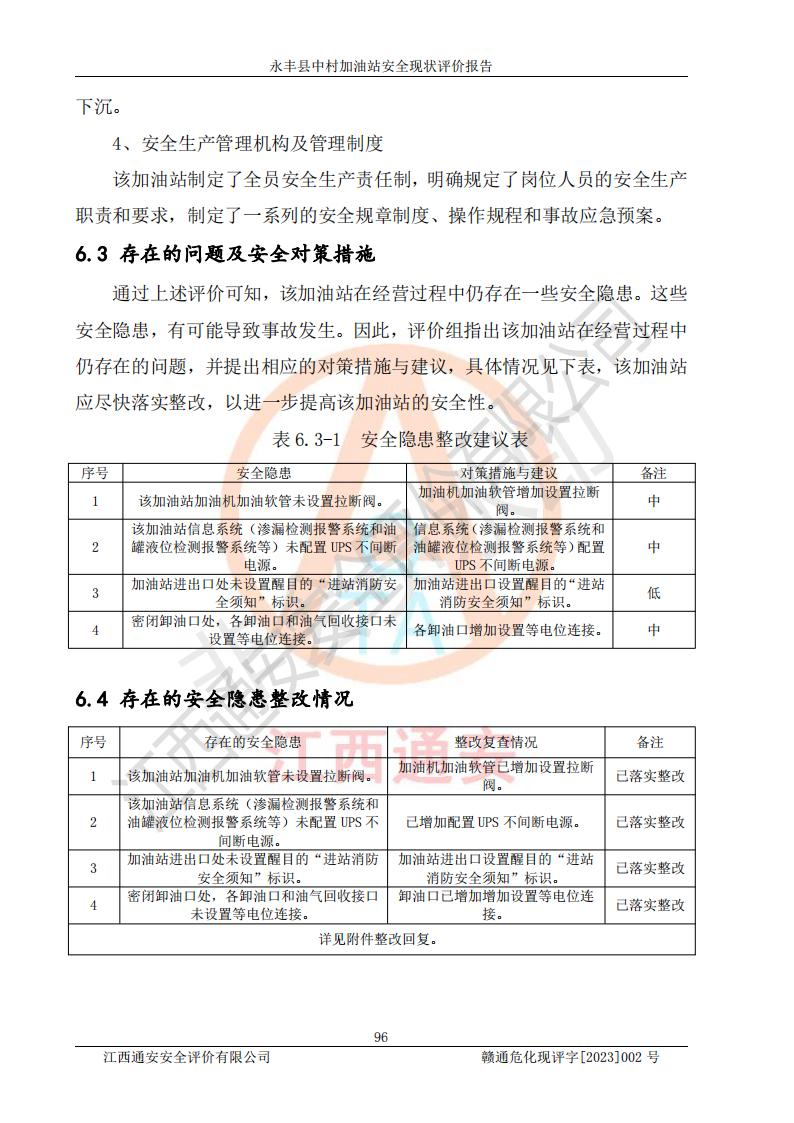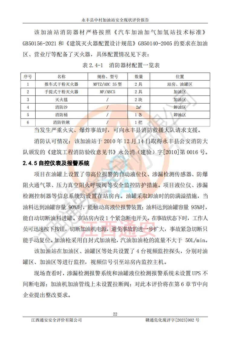 永豐縣中村加油站安全現(xiàn)狀評(píng)價(jià)報(bào)告