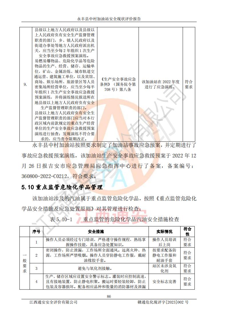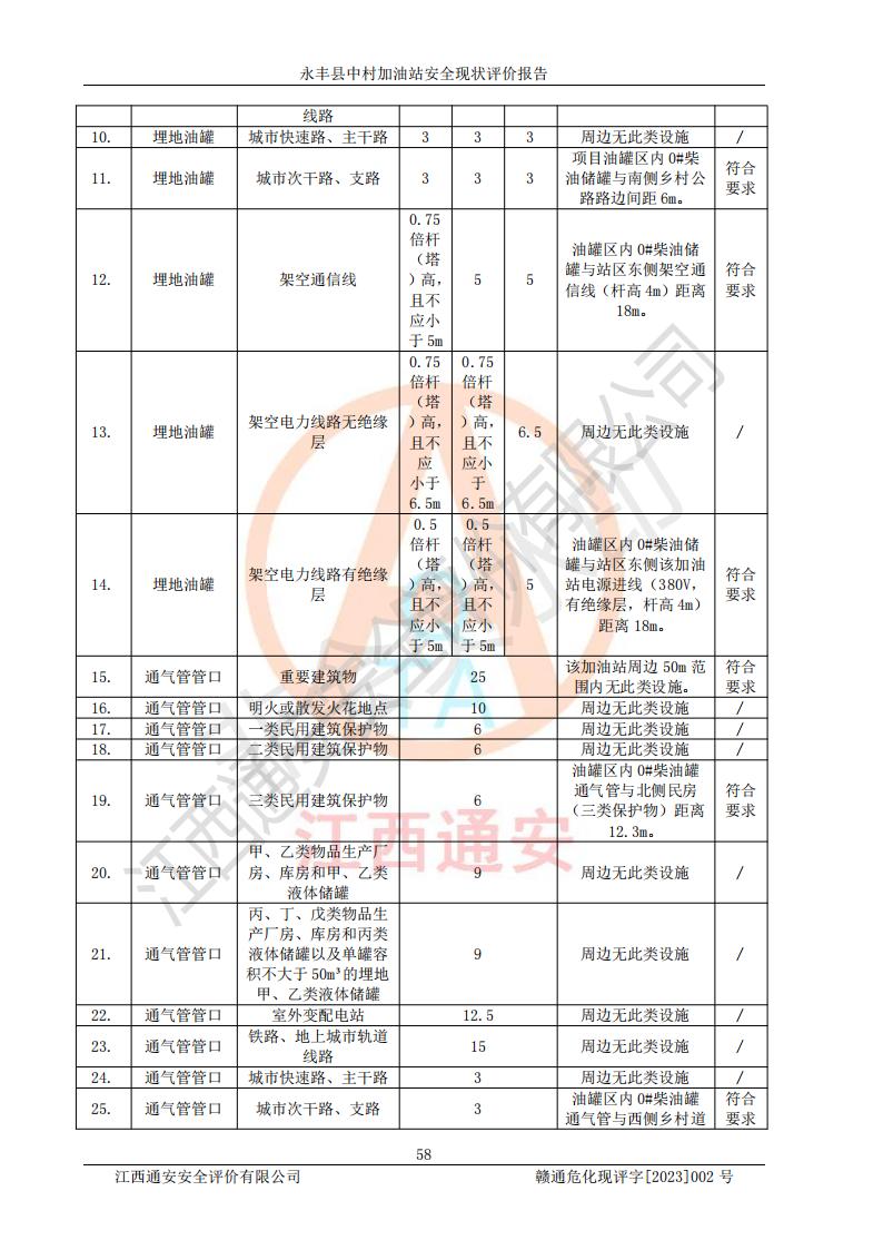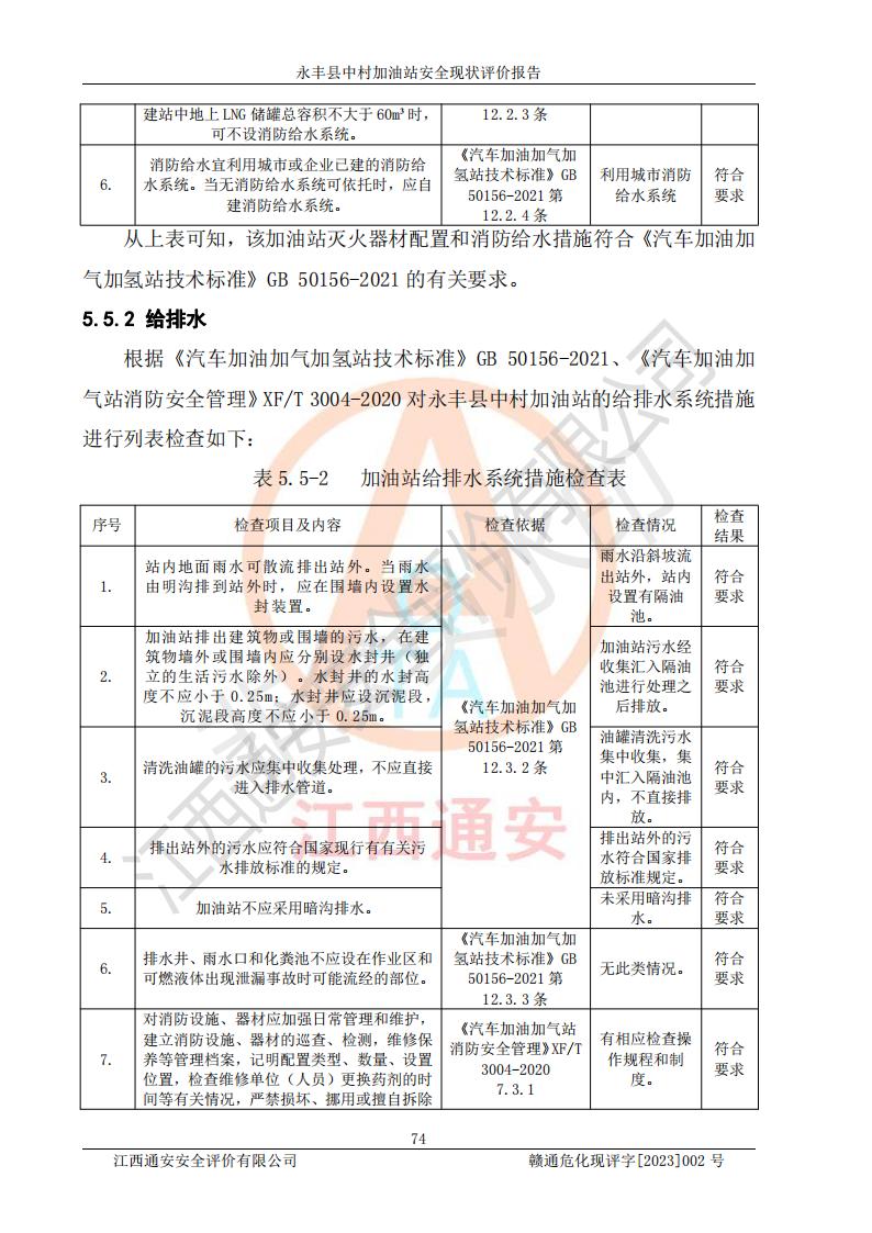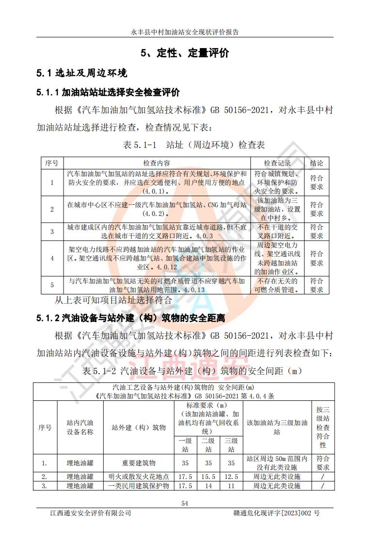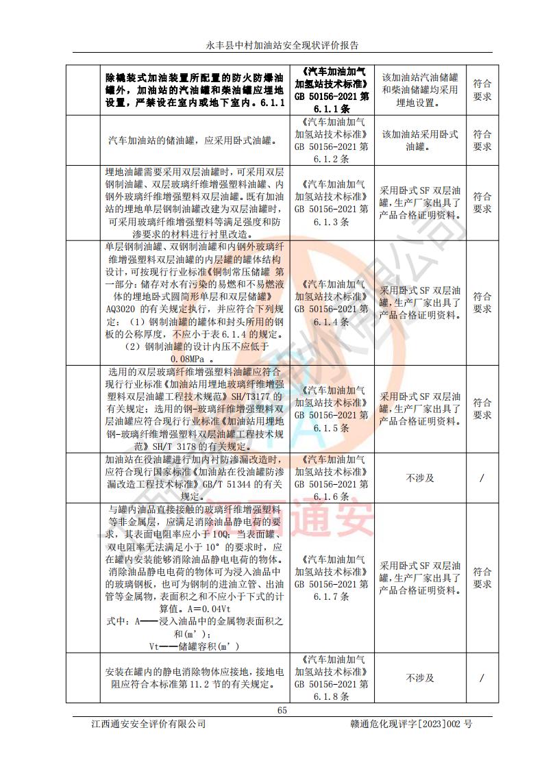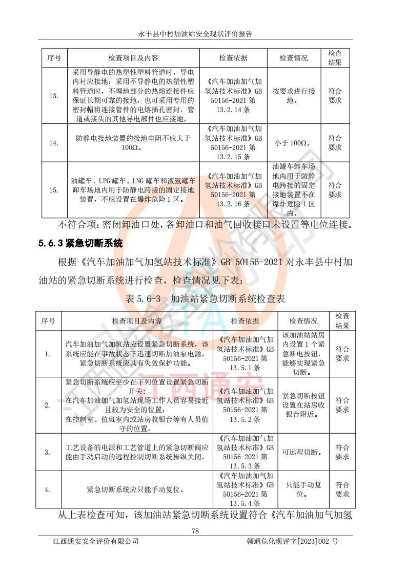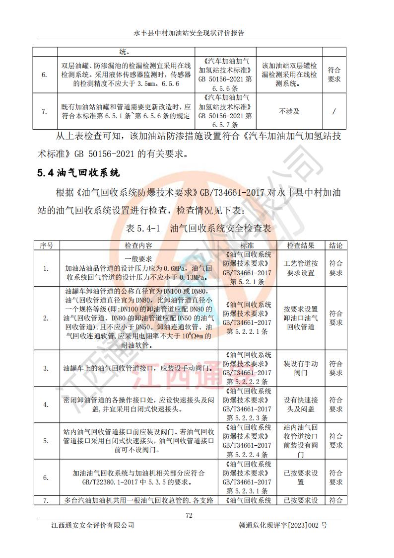 綜上:永豐縣中村加油站符合《汽車加油加氣加氫站技術(shù)標(biāo)準(zhǔn)》GB50156-2021等標(biāo)準(zhǔn)規(guī)范的要求,安全風(fēng)險(xiǎn)可控,滿足危險(xiǎn)化學(xué)品經(jīng)營(yíng)的安全條件。