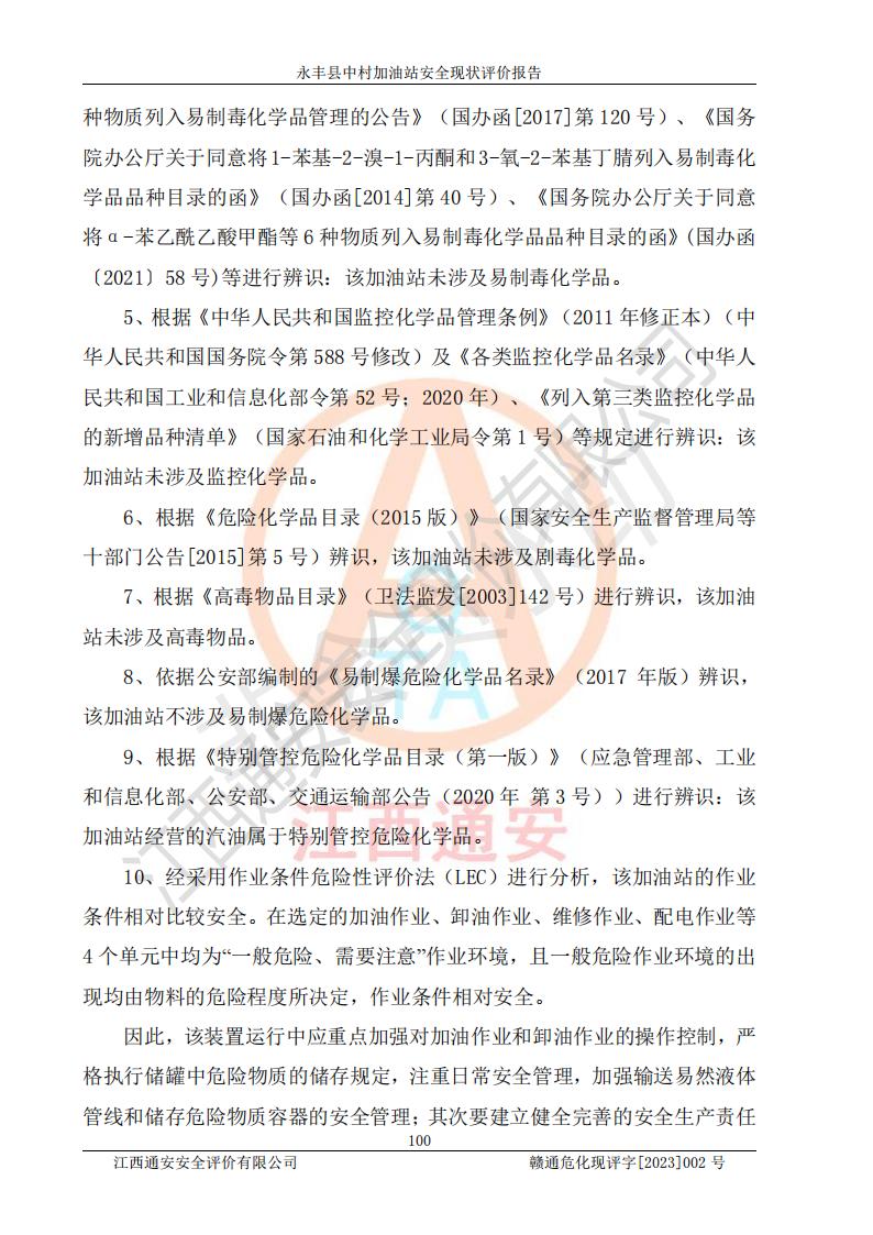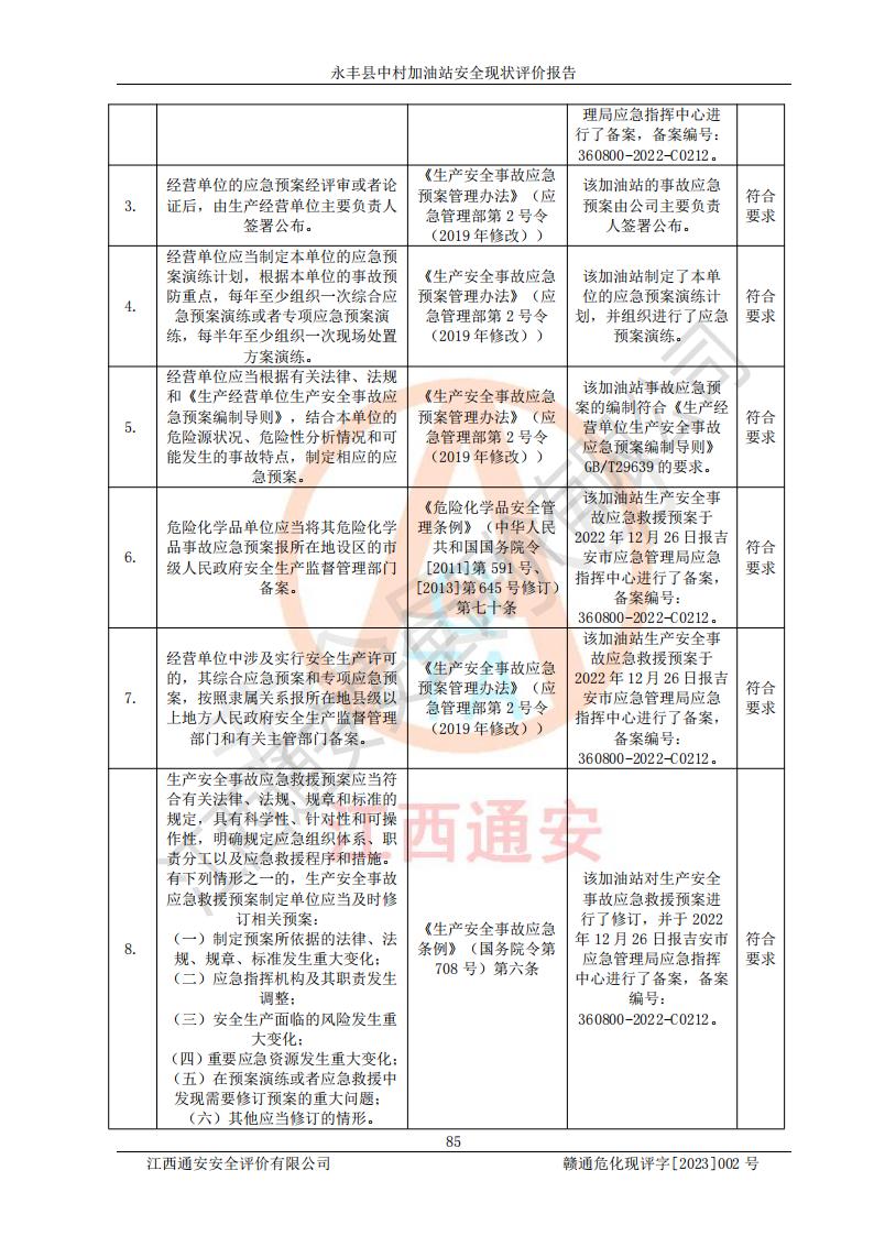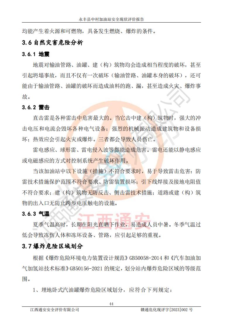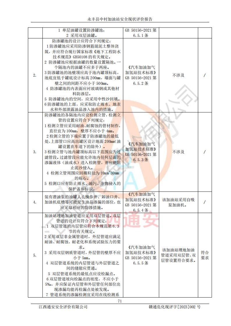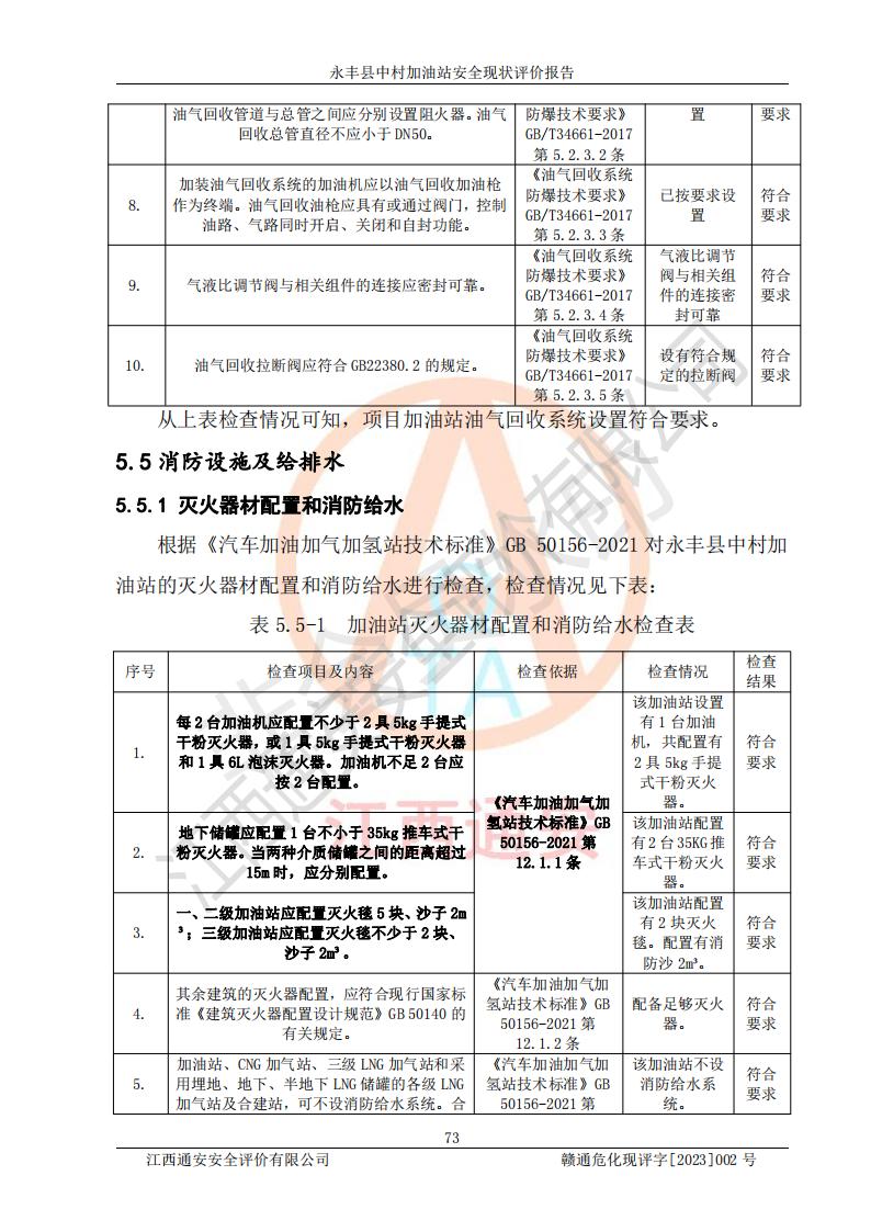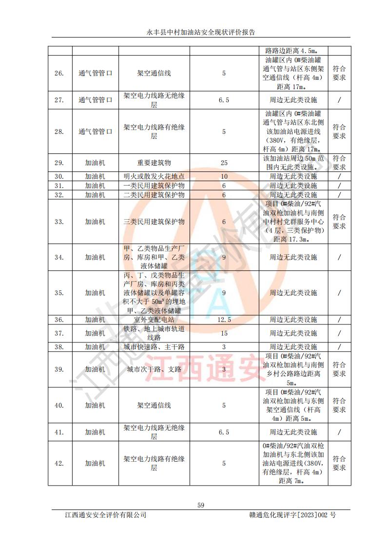 綜上:永豐縣中村加油站符合《汽車加油加氣加氫站技術(shù)標(biāo)準(zhǔn)》GB50156-2021等標(biāo)準(zhǔn)規(guī)范的要求,安全風(fēng)險(xiǎn)可控,滿足危險(xiǎn)化學(xué)品經(jīng)營(yíng)的安全條件。