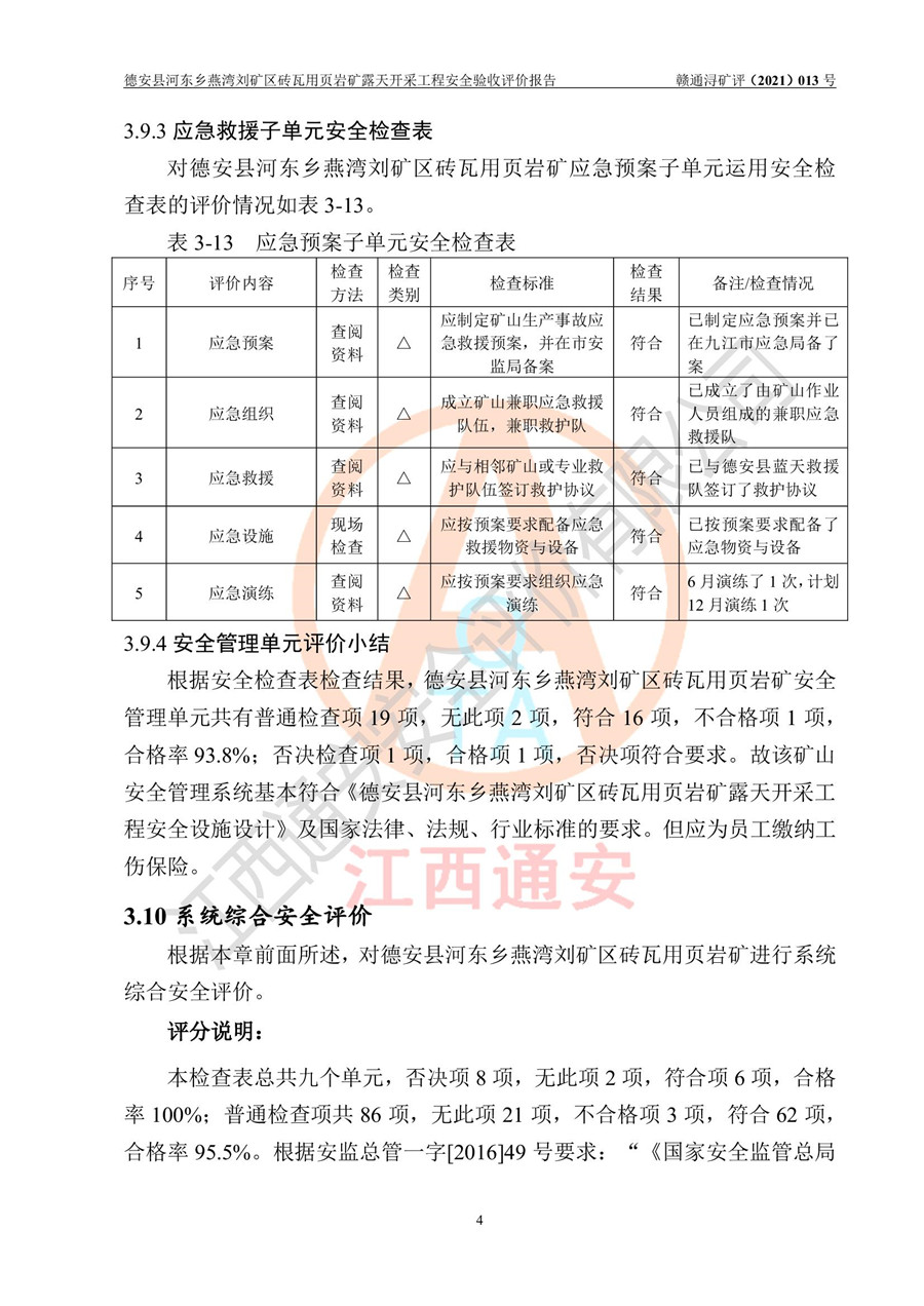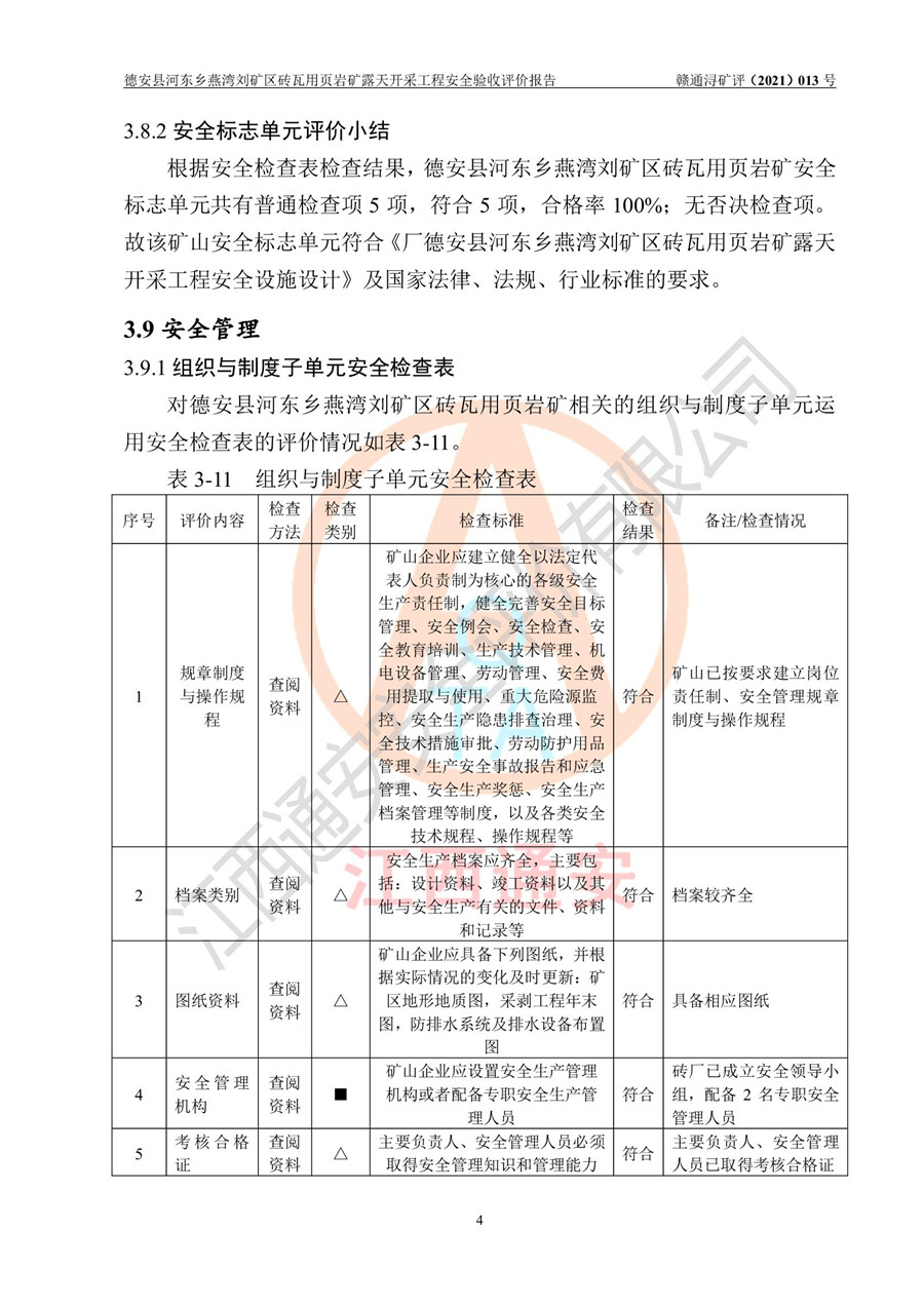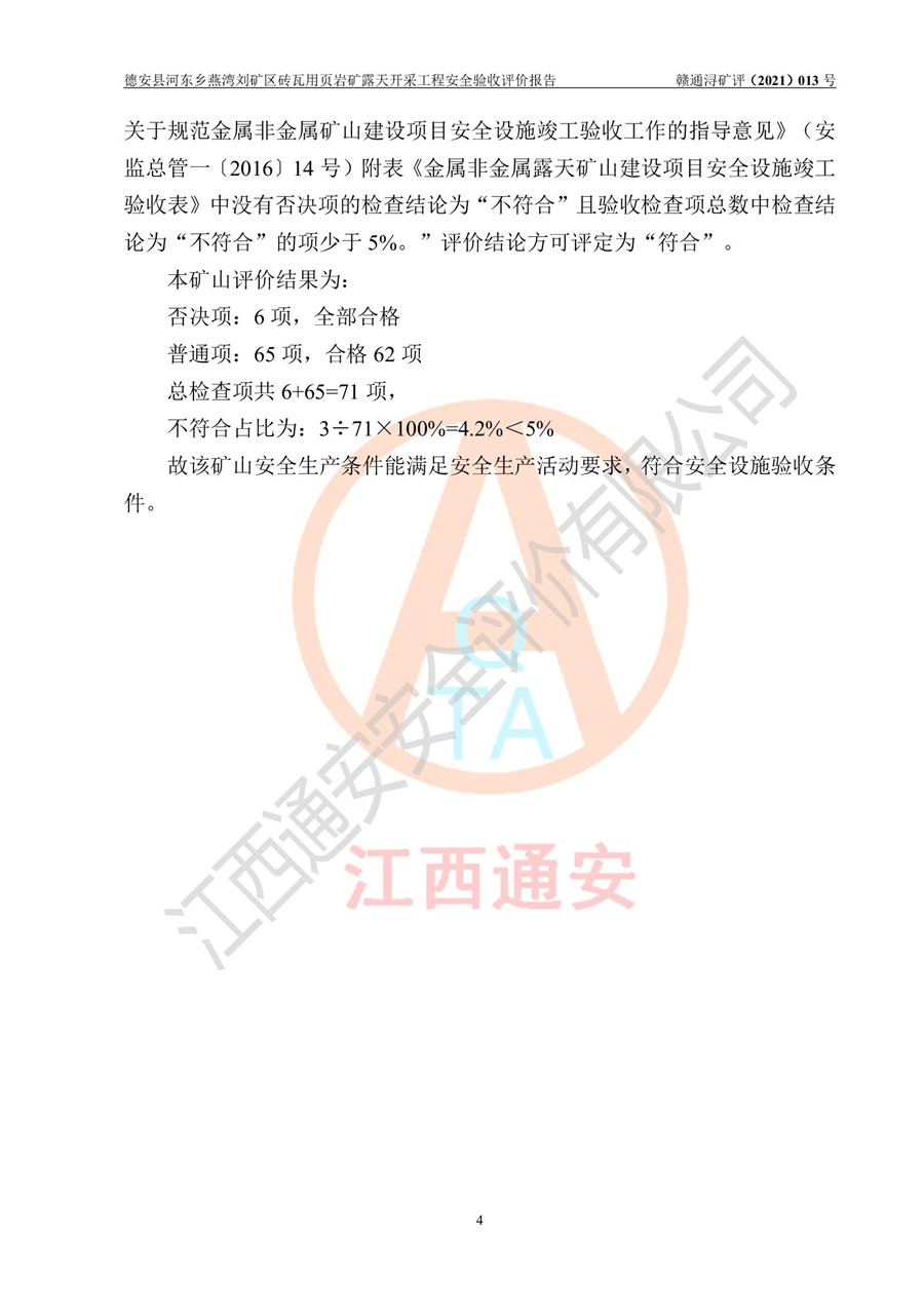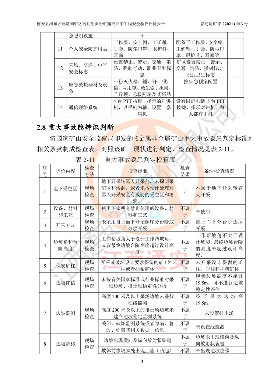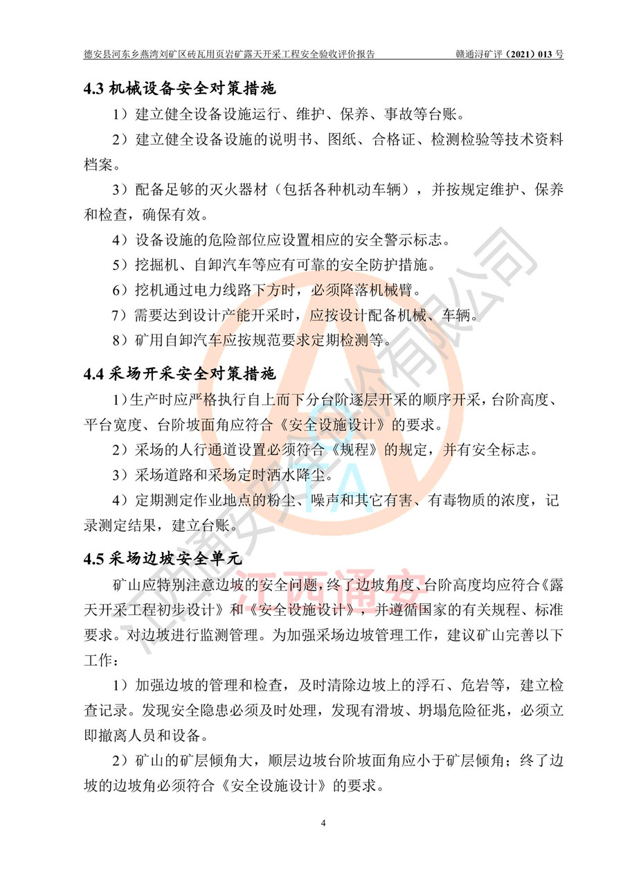德安縣順發(fā)新型墻體**磚廠成立于2017年3月14日,位于德安縣河?xùn)|鄉(xiāng)后田村1組,為普通合伙企業(yè),執(zhí)行事務(wù)合伙人為劉俊勝,主要從事從事機制磚生產(chǎn)與銷售等。其下屬礦山——德安縣河?xùn)|鄉(xiāng)燕灣劉礦區(qū)磚瓦用頁巖礦于2018年9由江西省地質(zhì)礦產(chǎn)勘查開發(fā)局九一六大隊編制了《德安縣河?xùn)|鄉(xiāng)燕灣劉礦區(qū)磚瓦用頁巖礦普查地質(zhì)報告》,2018年10由九江市鑫晟礦業(yè)有限公司編制了《德安縣河?xùn)|鄉(xiāng)燕灣劉礦區(qū)磚瓦用頁巖礦開發(fā)利用方案》,2020年4月,委托昆明陽光安全科技工程有限公司編制了《德安縣順發(fā)新型墻體**磚廠德安縣河?xùn)|鄉(xiāng)燕灣劉礦區(qū)磚瓦用頁巖礦露天開采工程安全預(yù)評價報告》,2020年6月取得了《采礦許可證》(2021年6月延期),《采礦許可證》核定的礦區(qū)范圍由9個坐標(biāo)拐點構(gòu)成,礦區(qū)面積為0.0622km2,采掘深度+54.5m~+35m,開采規(guī)模24.2萬t/a。礦山2021年2月由江西省冶金設(shè)計院有限責(zé)任公司編制了《德安縣順發(fā)新型墻體**磚廠德安縣河?xùn)|鄉(xiāng)燕灣劉礦區(qū)磚瓦用頁巖礦露天開采工程安全設(shè)施設(shè)計》(以下簡稱《安全設(shè)施設(shè)計》),《安全設(shè)施設(shè)計》于2021年3月3日取得了德安縣應(yīng)急管理局審查備案批復(fù)(德應(yīng)急字[2021]12號)。 該礦山為山坡露天礦山,開采制磚用頁巖,基建由礦山自己施工?!栋踩O(shè)施設(shè)計》設(shè)計礦山采用公路開拓—汽車運輸方式,自上而下由挖掘機挖掘,分臺階分階段開采。礦山已按《安全設(shè)施設(shè)計》進行了基建期建設(shè),開拓道路已修至了+50m標(biāo)高首采平臺,完成了+50m標(biāo)高首采平臺建設(shè),達到了礦山《初步設(shè)計》及《安全設(shè)施設(shè)計》設(shè)計基建期建設(shè)要求 |