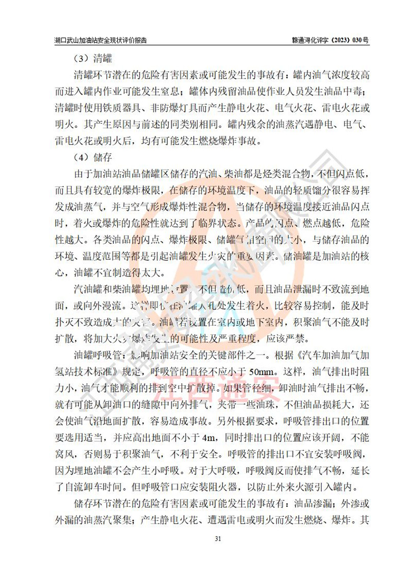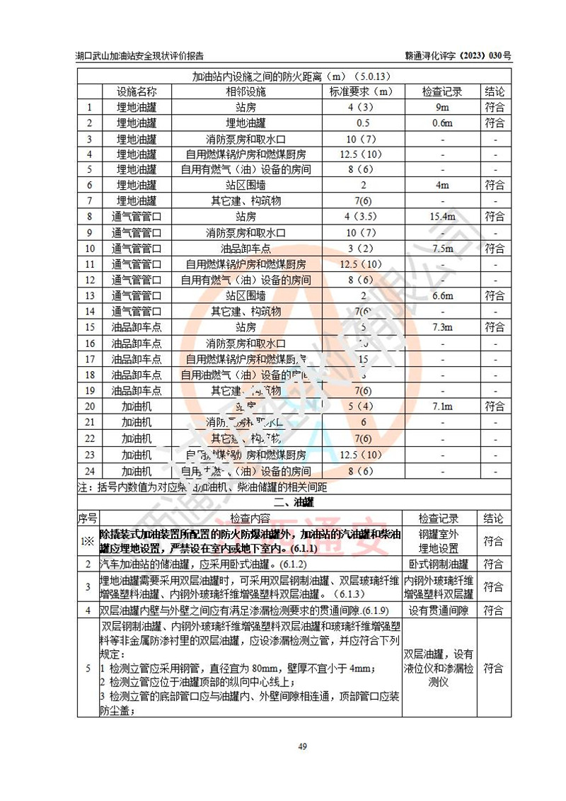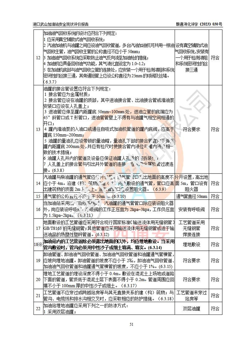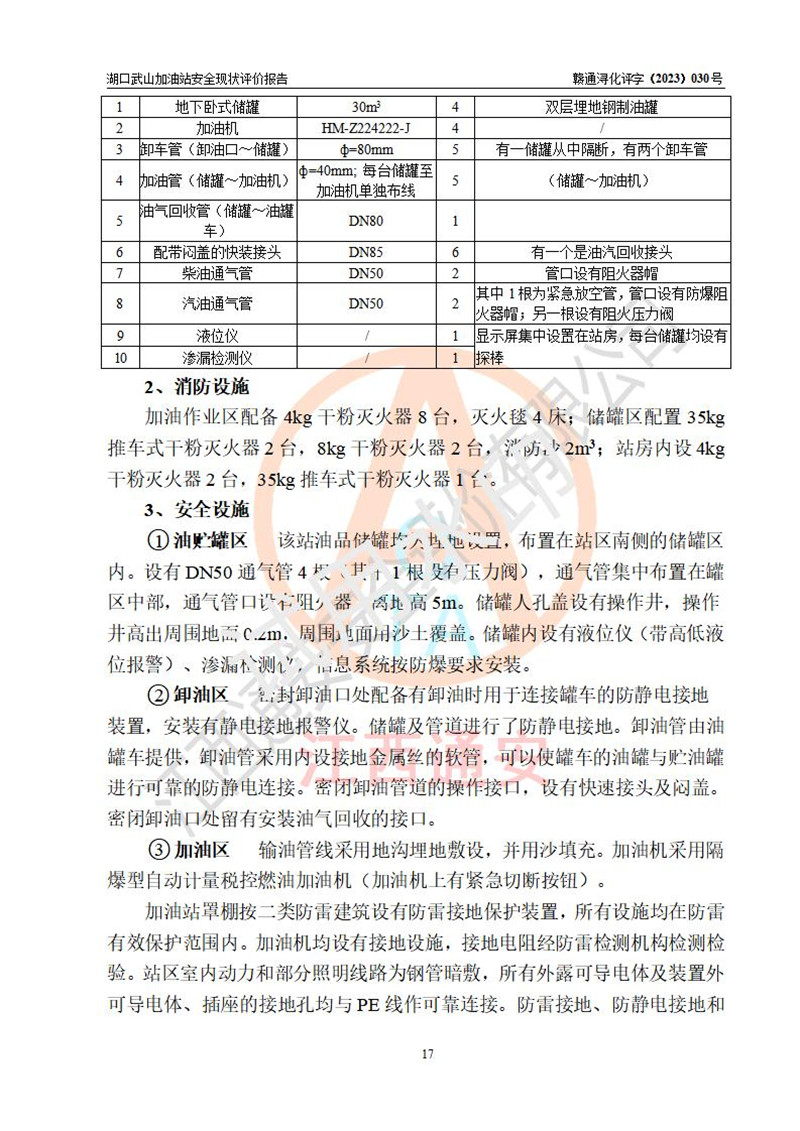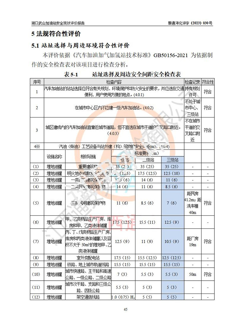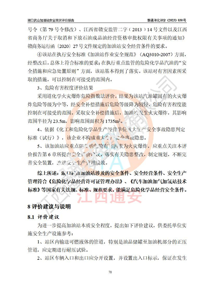 湖口武山加油站涉及的安全條件、安全經(jīng)營條件、安全生產(chǎn)管理符合《危險化學(xué)品經(jīng)營許可證管理辦法》、《汽車加油加氣加氫站技術(shù)標(biāo)準(zhǔn)》等**有關(guān)法規(guī)、標(biāo)準(zhǔn)、規(guī)范要求,能滿足危險化學(xué)品經(jīng)營安全條件。
