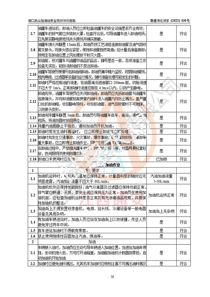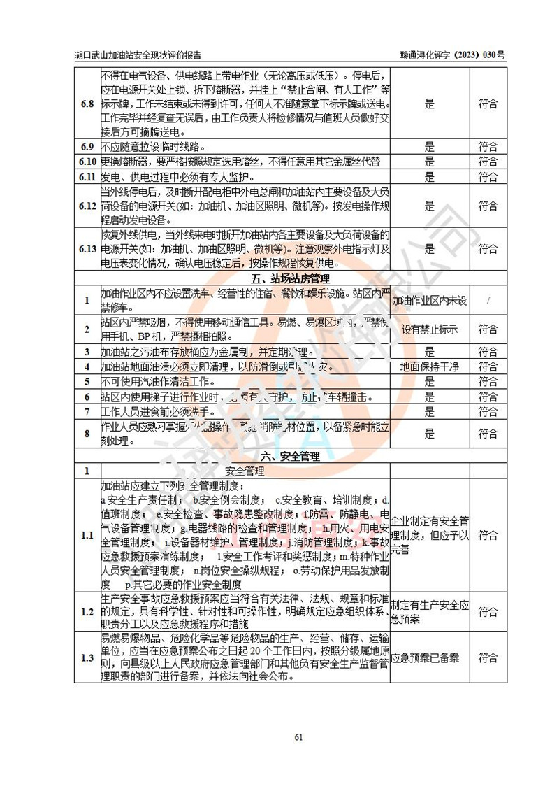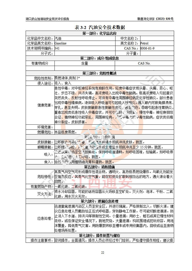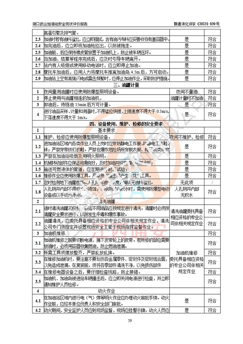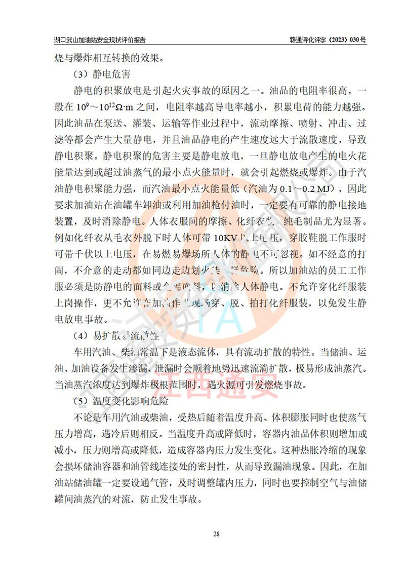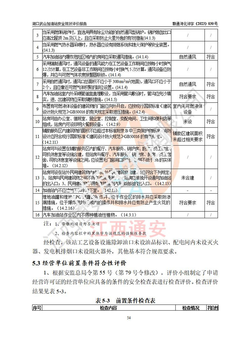 湖口武山加油站涉及的安全條件、安全經(jīng)營條件、安全生產(chǎn)管理符合《危險化學(xué)品經(jīng)營許可證管理辦法》、《汽車加油加氣加氫站技術(shù)標(biāo)準(zhǔn)》等**有關(guān)法規(guī)、標(biāo)準(zhǔn)、規(guī)范要求,能滿足危險化學(xué)品經(jīng)營安全條件。