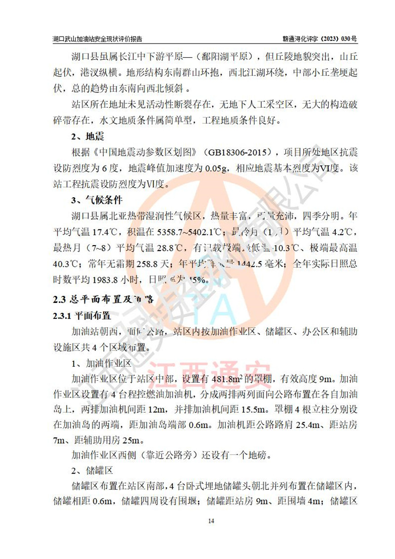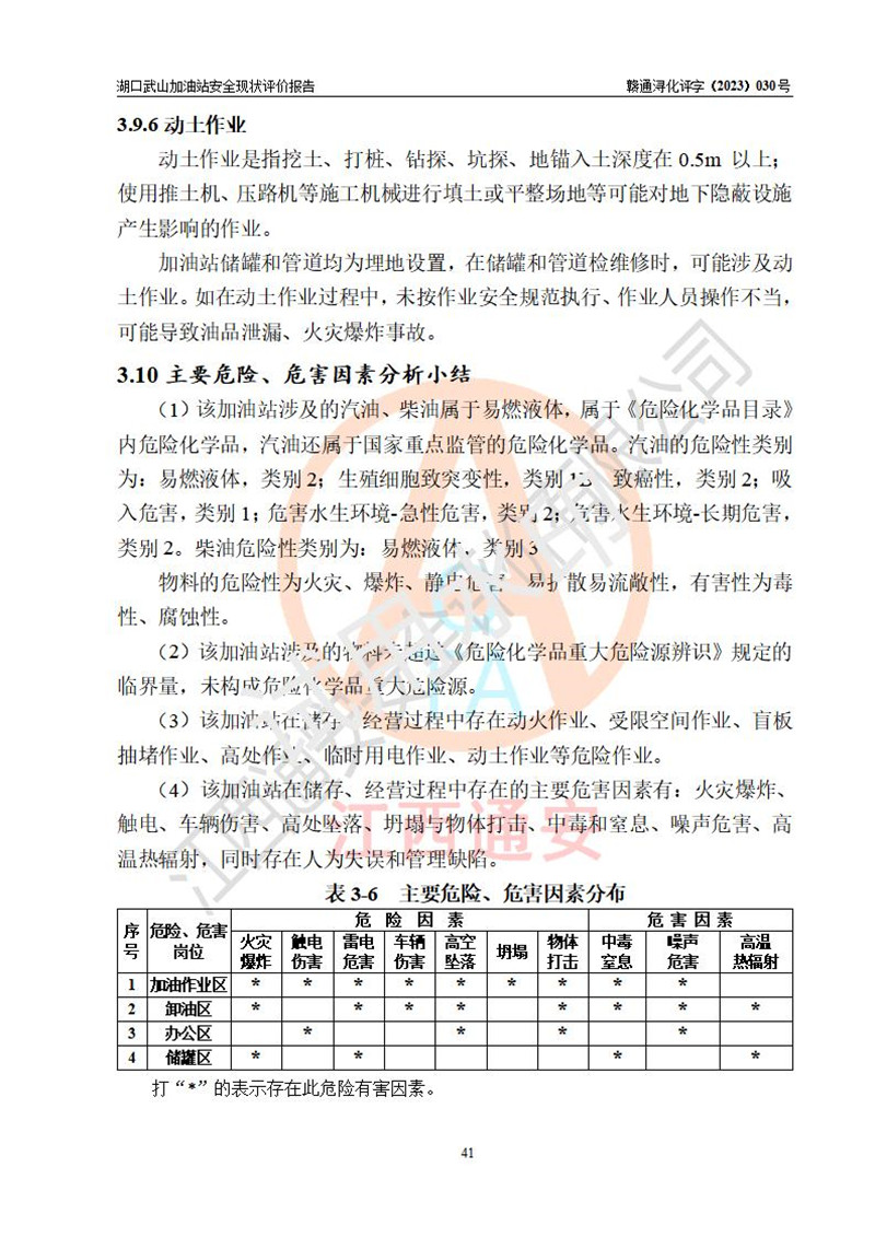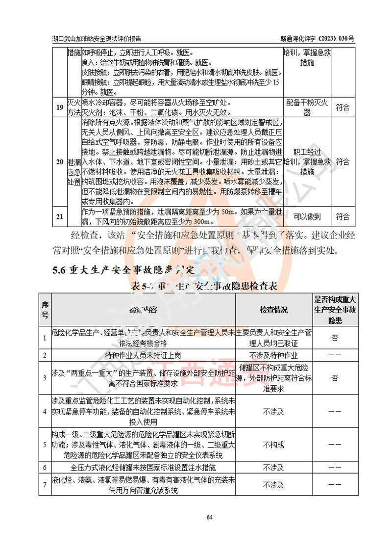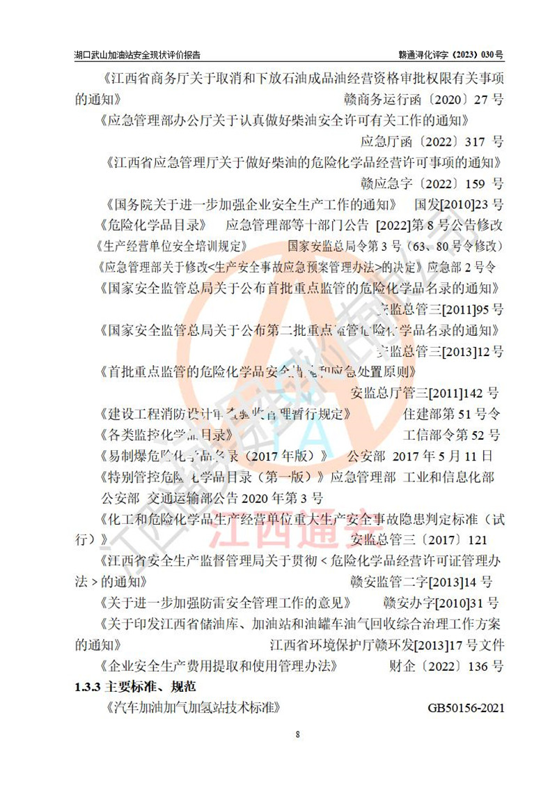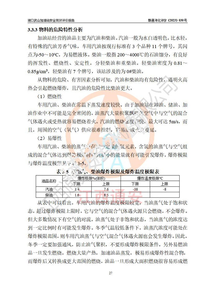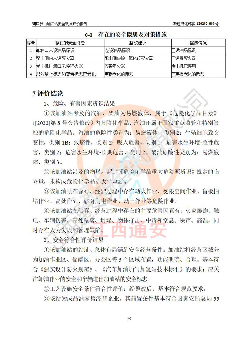 湖口武山加油站涉及的安全條件、安全經(jīng)營條件、安全生產(chǎn)管理符合《危險化學(xué)品經(jīng)營許可證管理辦法》、《汽車加油加氣加氫站技術(shù)標(biāo)準(zhǔn)》等**有關(guān)法規(guī)、標(biāo)準(zhǔn)、規(guī)范要求,能滿足危險化學(xué)品經(jīng)營安全條件。