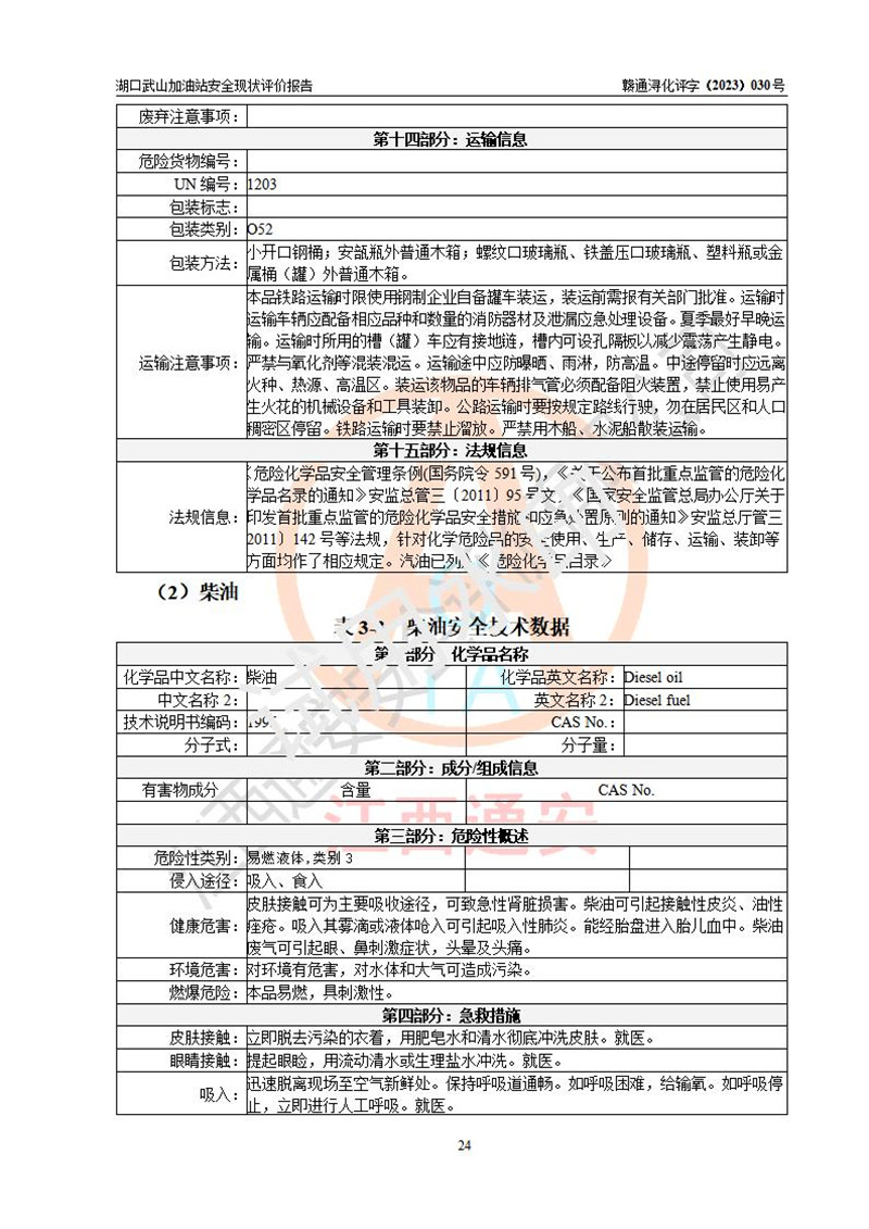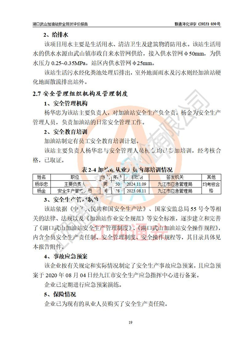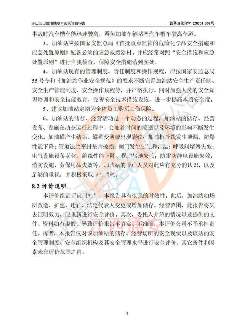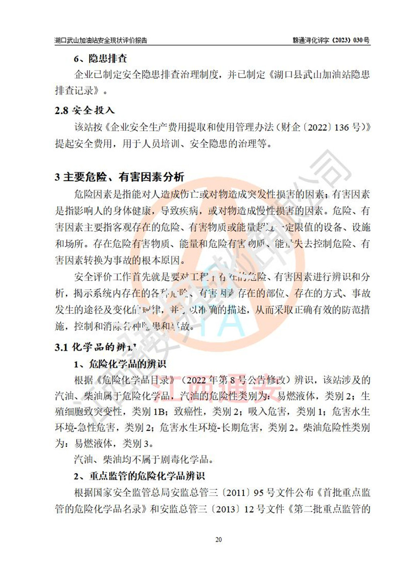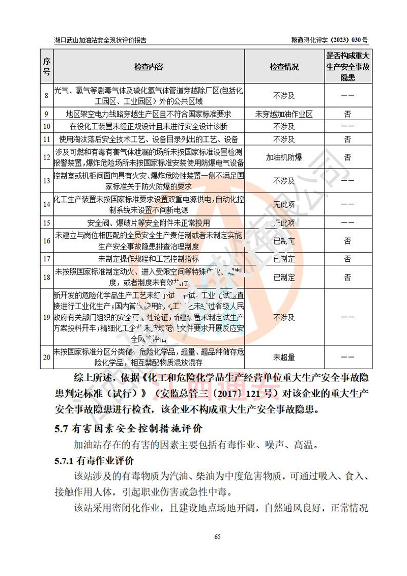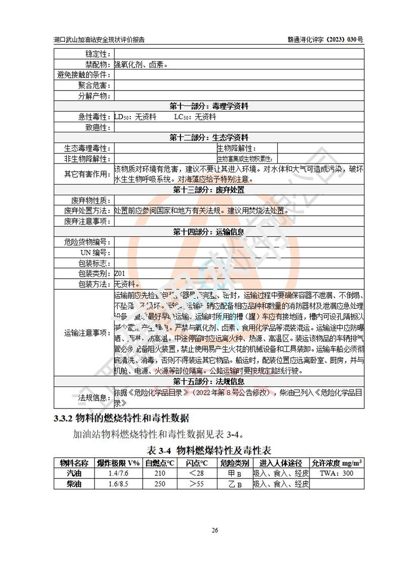 湖口武山加油站涉及的安全條件、安全經(jīng)營條件、安全生產(chǎn)管理符合《危險化學(xué)品經(jīng)營許可證管理辦法》、《汽車加油加氣加氫站技術(shù)標(biāo)準(zhǔn)》等**有關(guān)法規(guī)、標(biāo)準(zhǔn)、規(guī)范要求,能滿足危險化學(xué)品經(jīng)營安全條件。