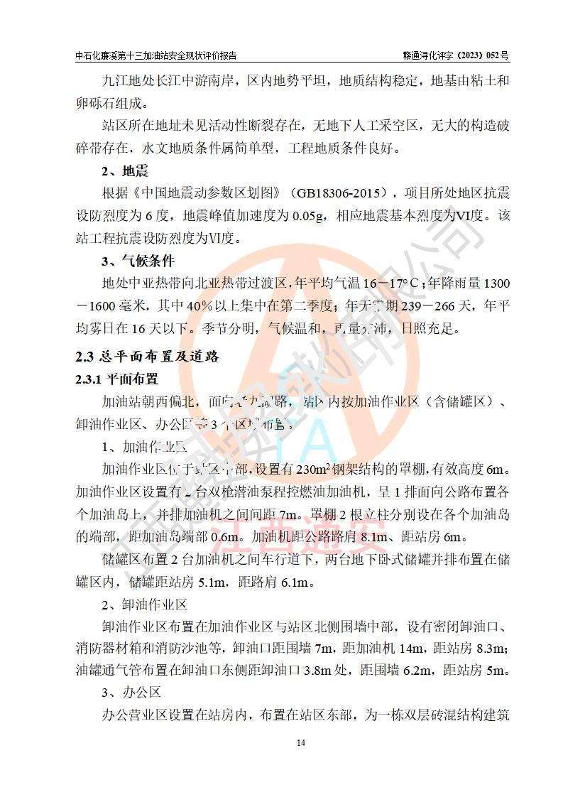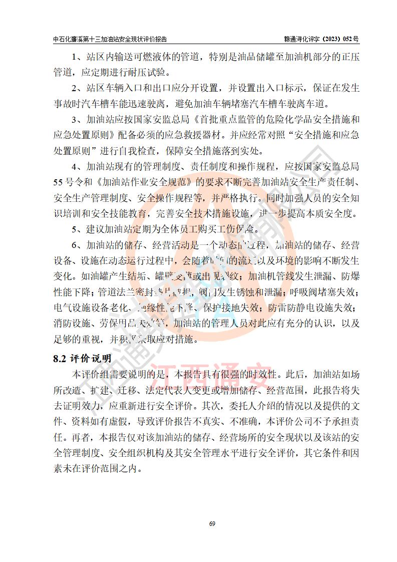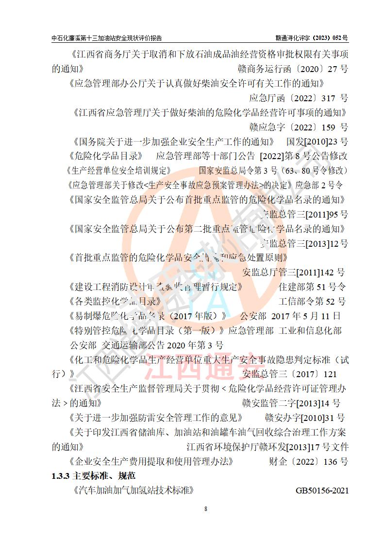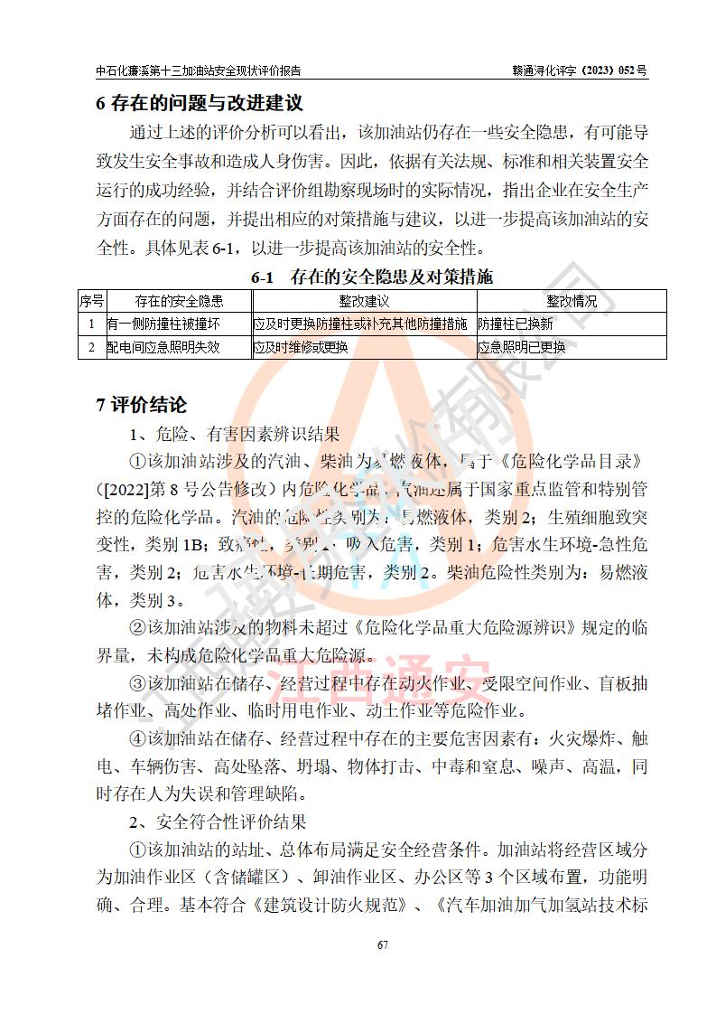 評價報告名稱 | 中國石化銷售股份有限公司江西九江濂溪石油分公司第十三加油站安全現(xiàn)狀評價報告 | |||