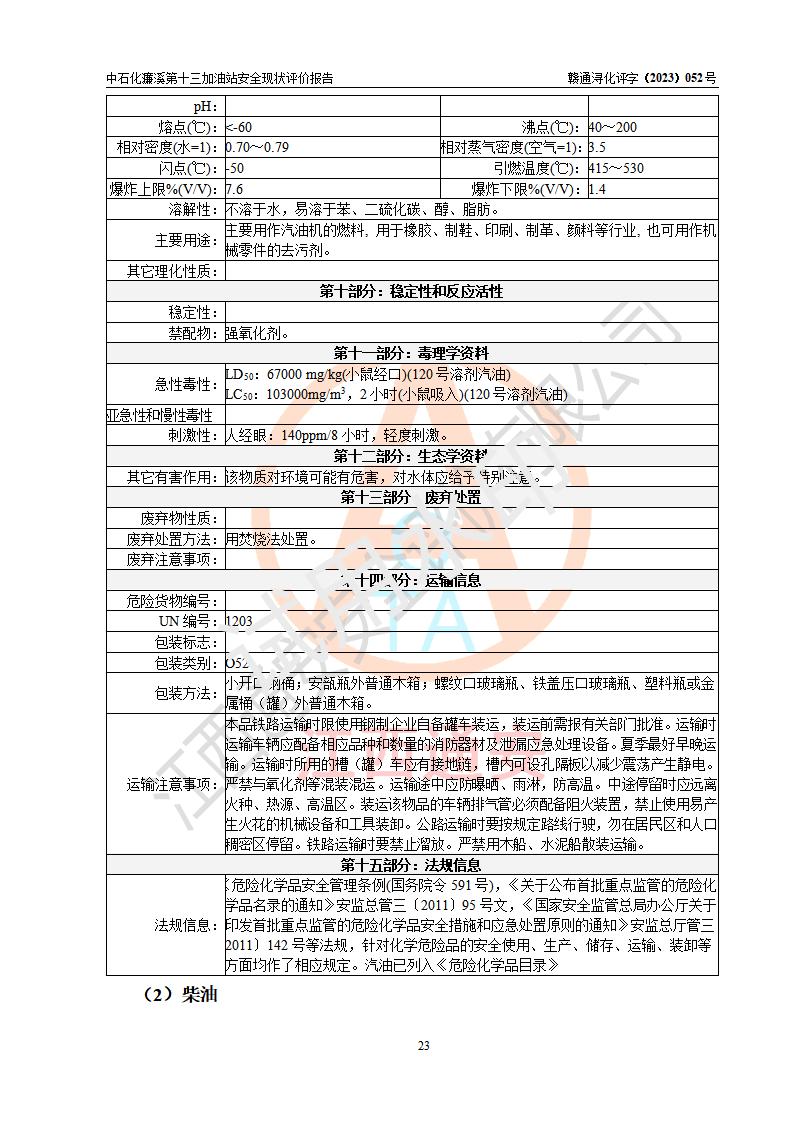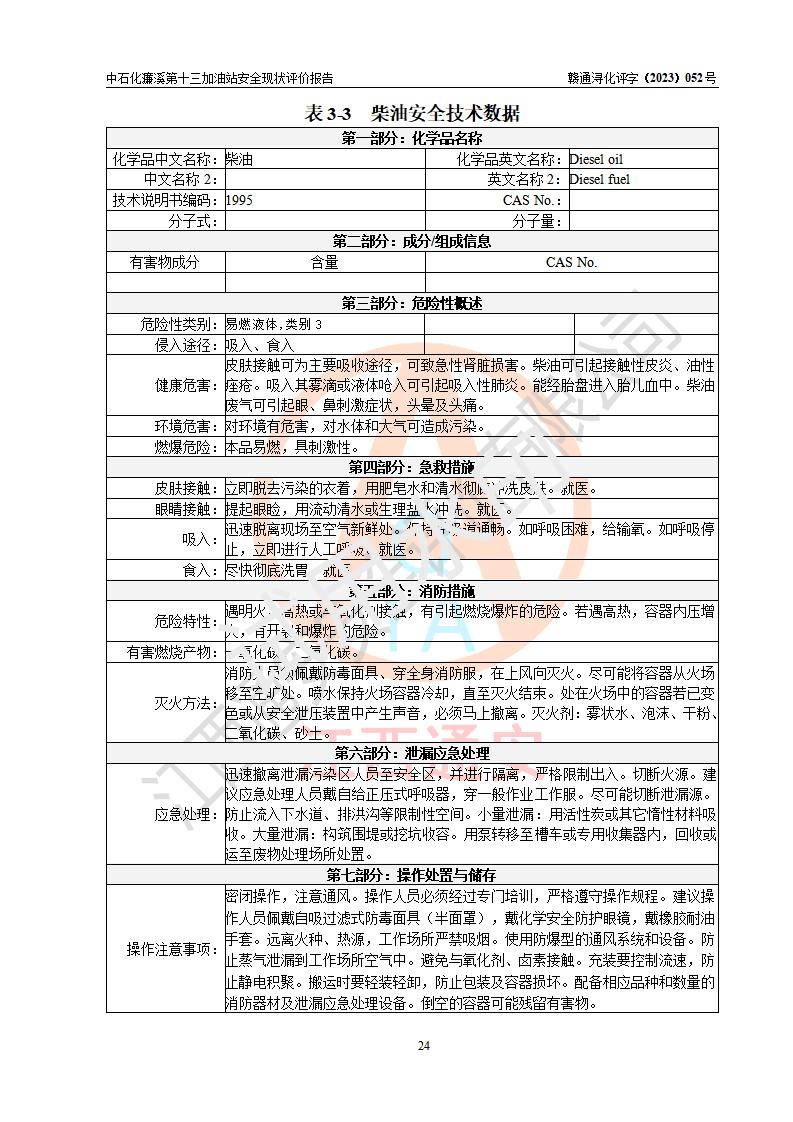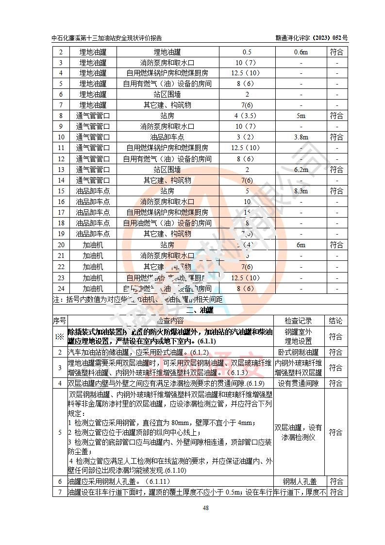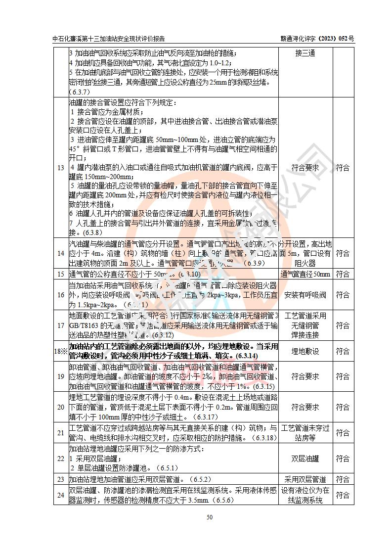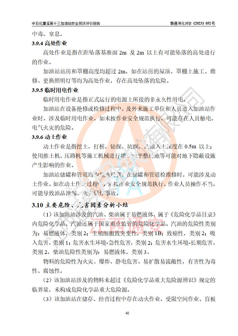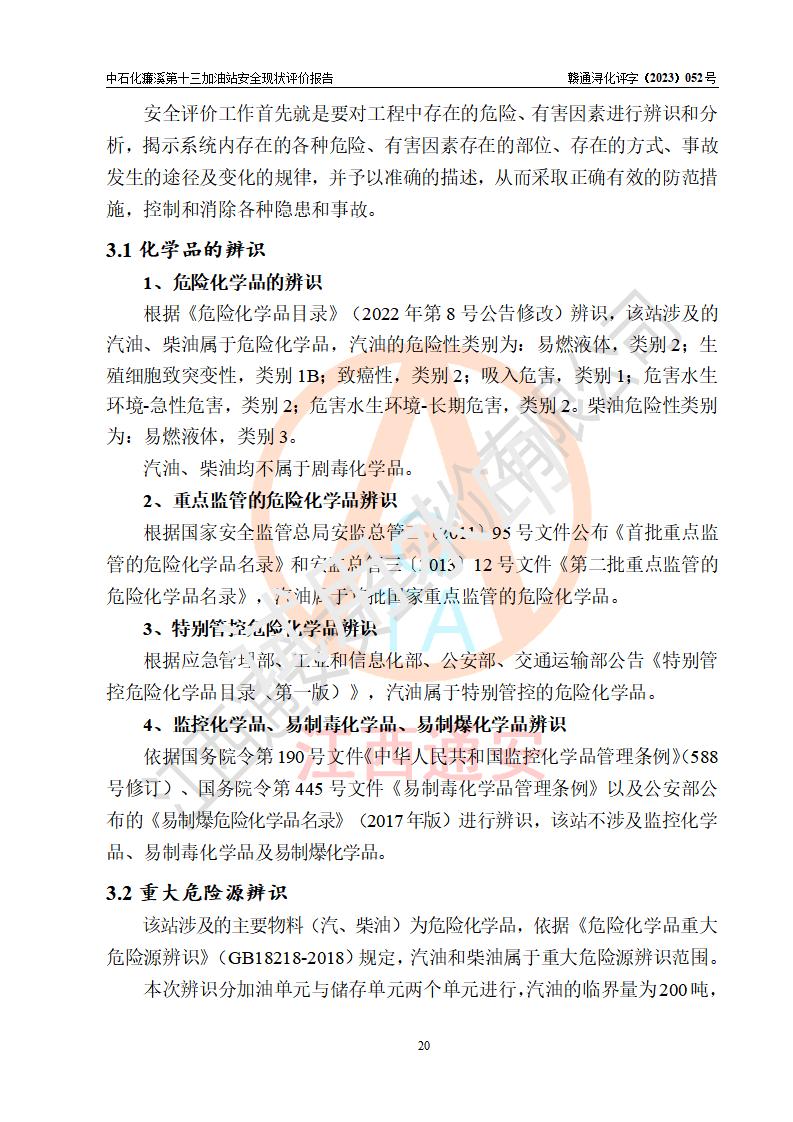 評價結(jié)論 | 中國石化銷售股份有限公司江西九江濂溪石油分公司第十三加油站涉及的安全條件、安全經(jīng)營條件、安全生產(chǎn)管理符合《危險化學品經(jīng)營許可證管理辦法》、《汽車加油加氣加氫站技術(shù)標準》等**有關(guān)法規(guī)、標準、規(guī)范要求,能滿足危險化學品經(jīng)營安全條件。 | |||