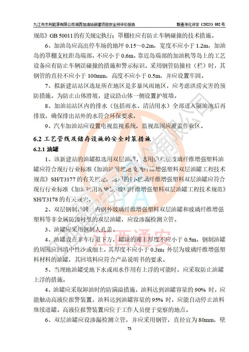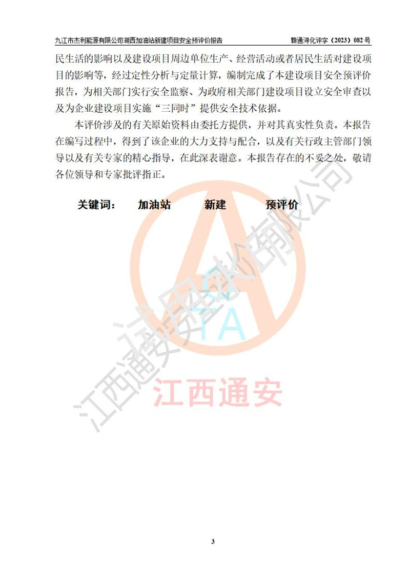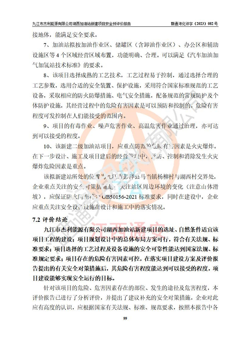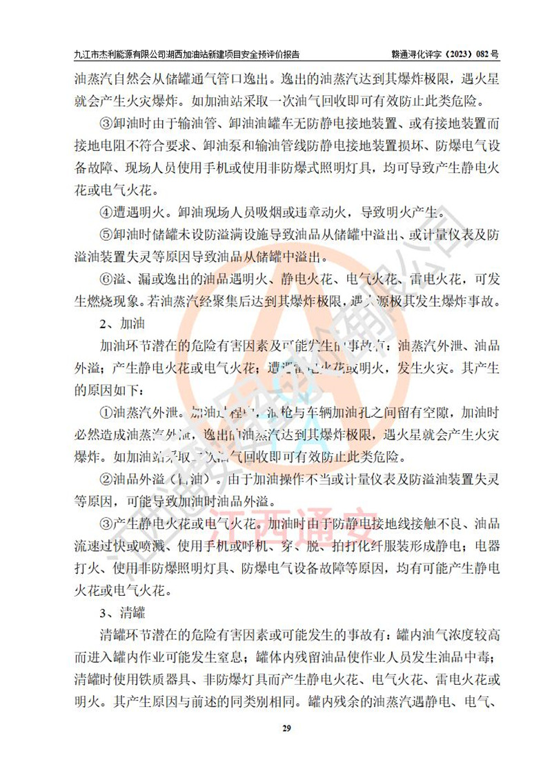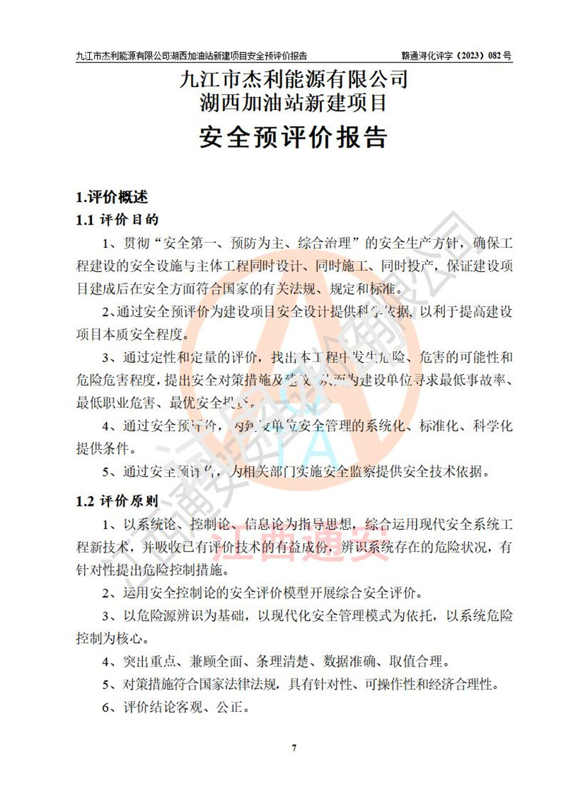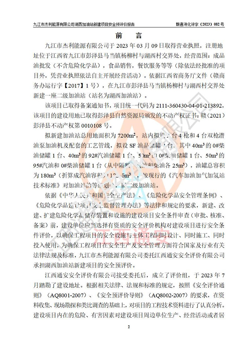 評價報告名稱 | 九江市杰利能源有限公司湖西加油站新建項目安全預(yù)評價報告 | |||