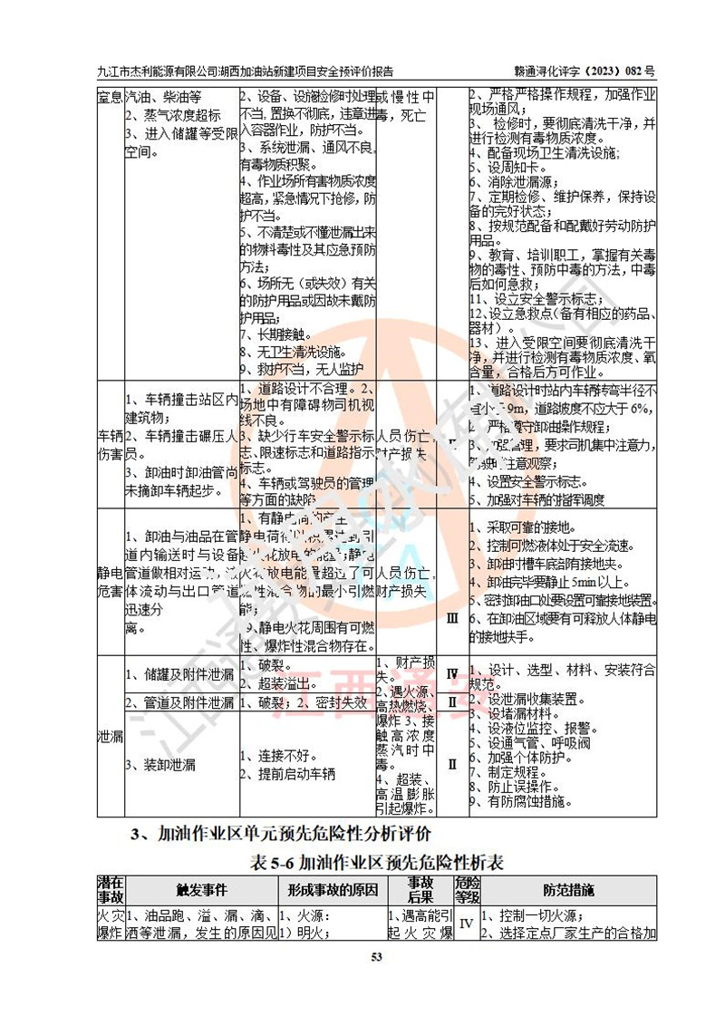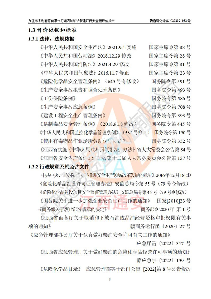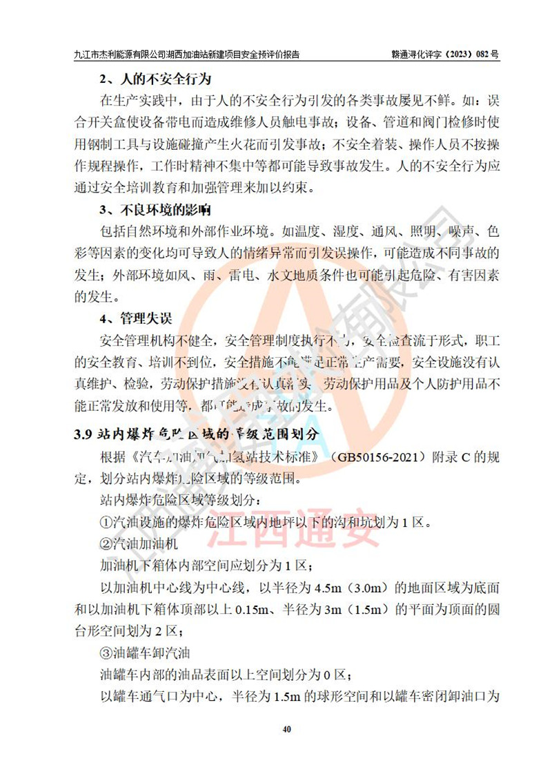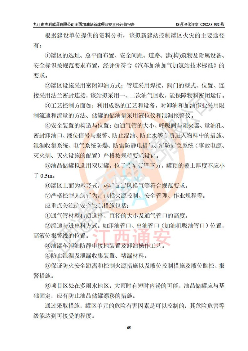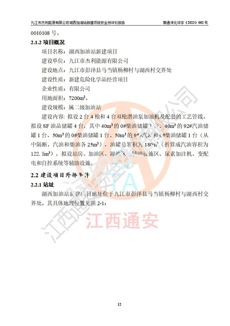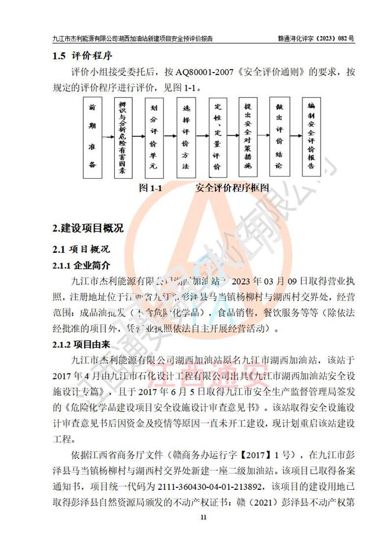 評價報告名稱 | 九江市杰利能源有限公司湖西加油站新建項目安全預(yù)評價報告 | |||