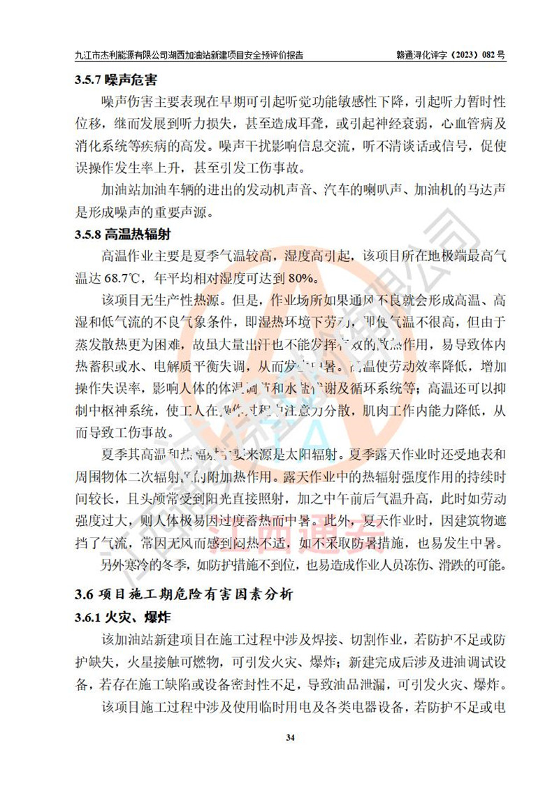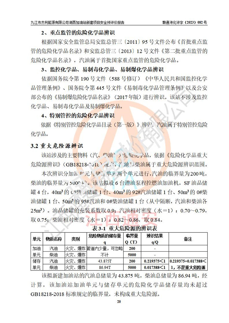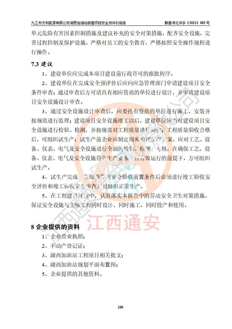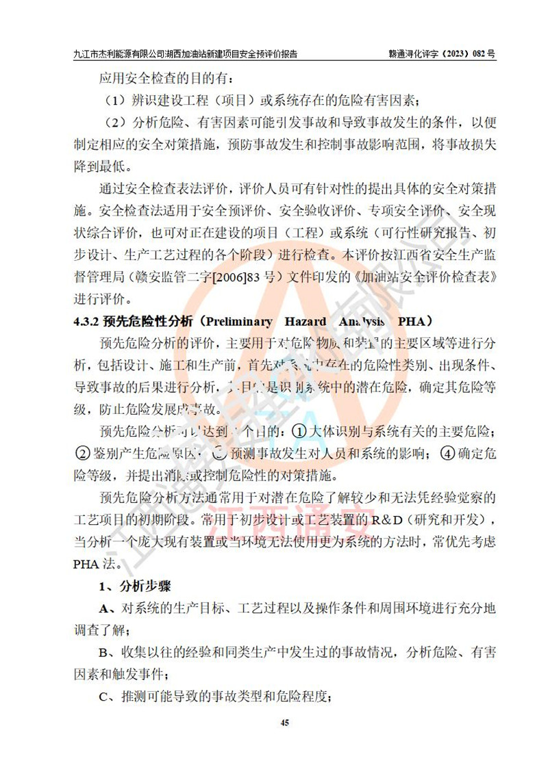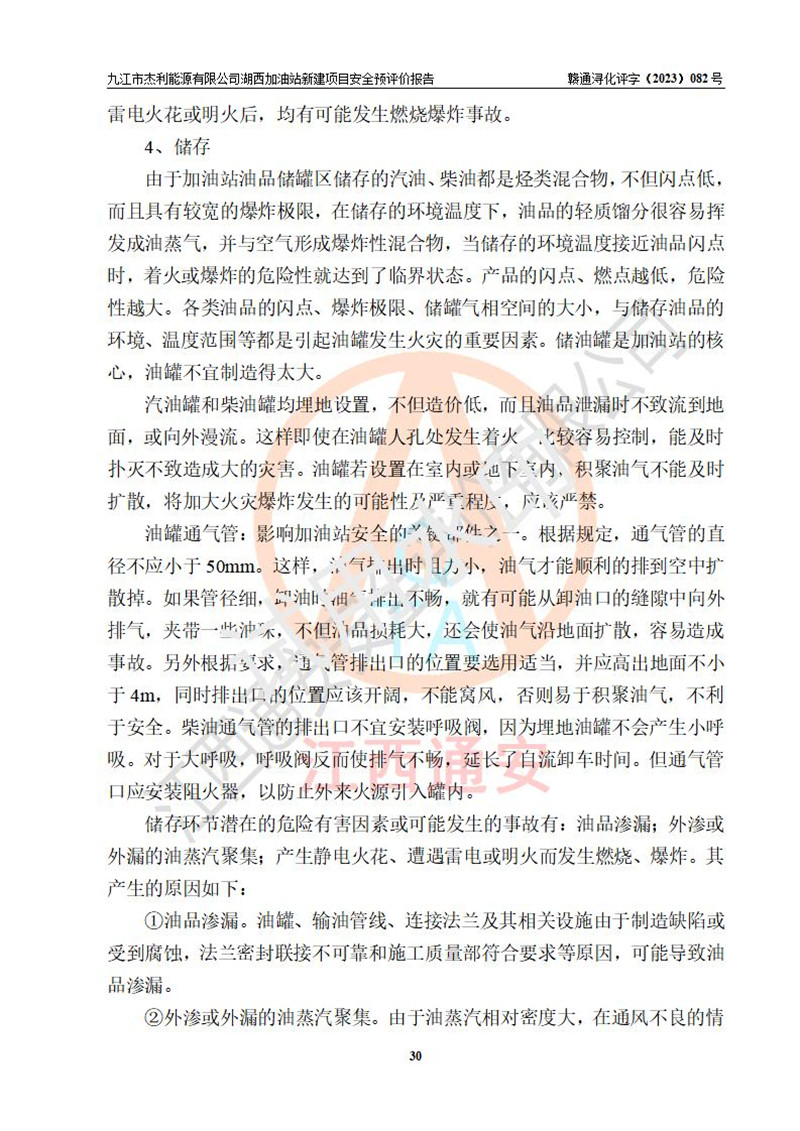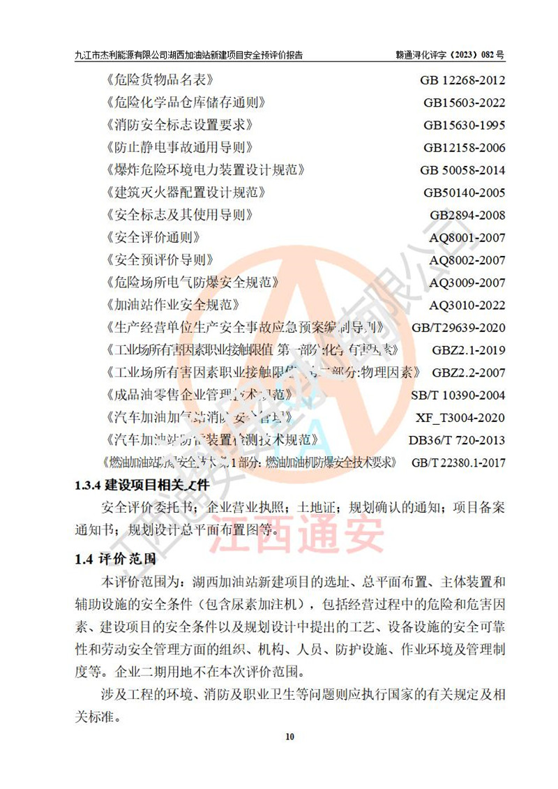 評價報告名稱 | 九江市杰利能源有限公司湖西加油站新建項目安全預(yù)評價報告 | |||