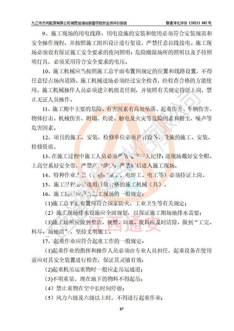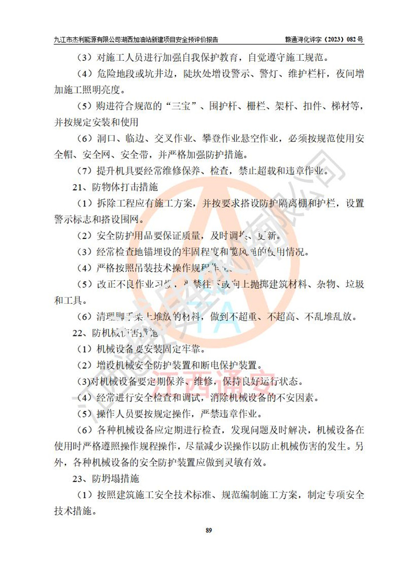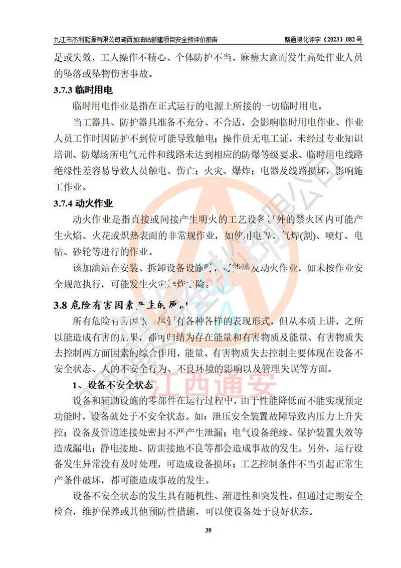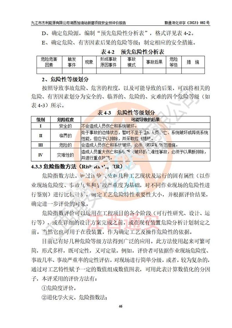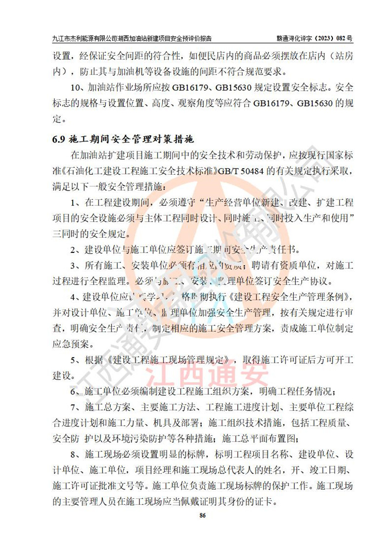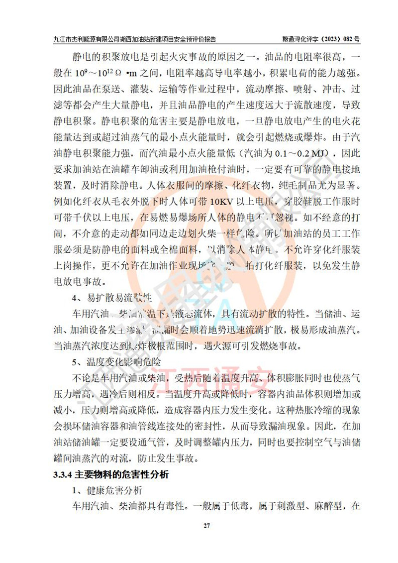 評價報告名稱 | 九江市杰利能源有限公司湖西加油站新建項目安全預(yù)評價報告 | |||