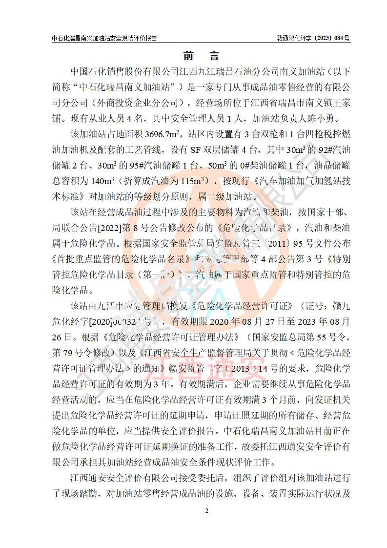 評(píng)價(jià)報(bào)告名稱 | 中國石化銷售股份有限公司江西九江瑞昌石油分公司南義加油站安全現(xiàn)狀評(píng)價(jià)報(bào)告 | |||