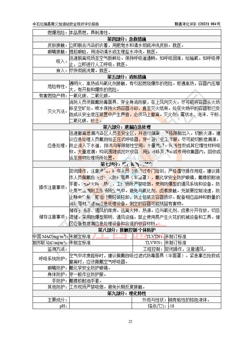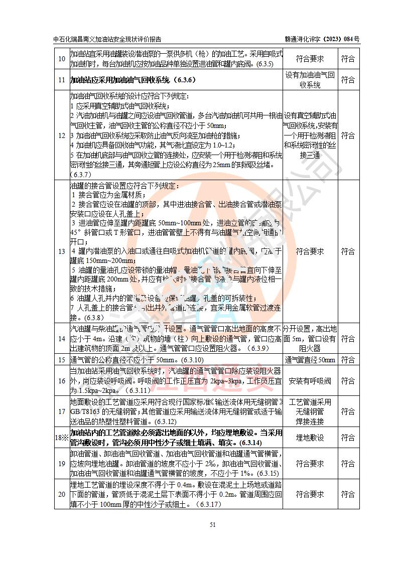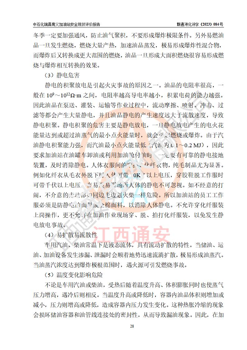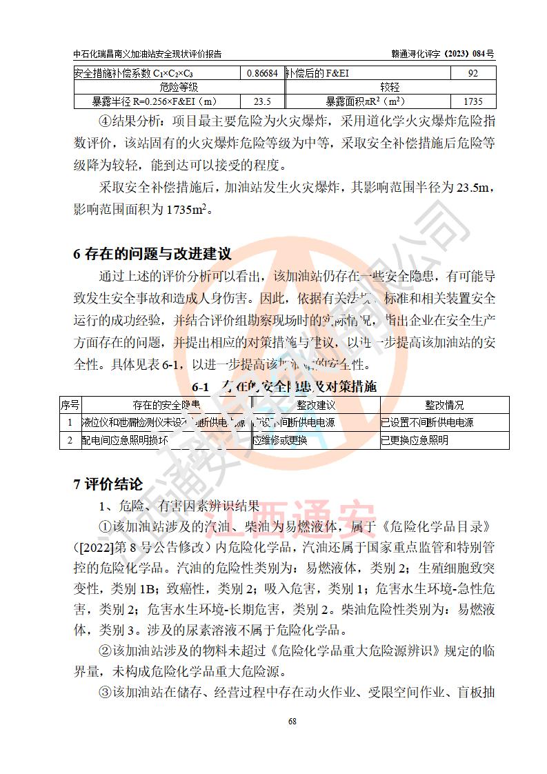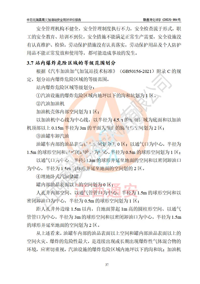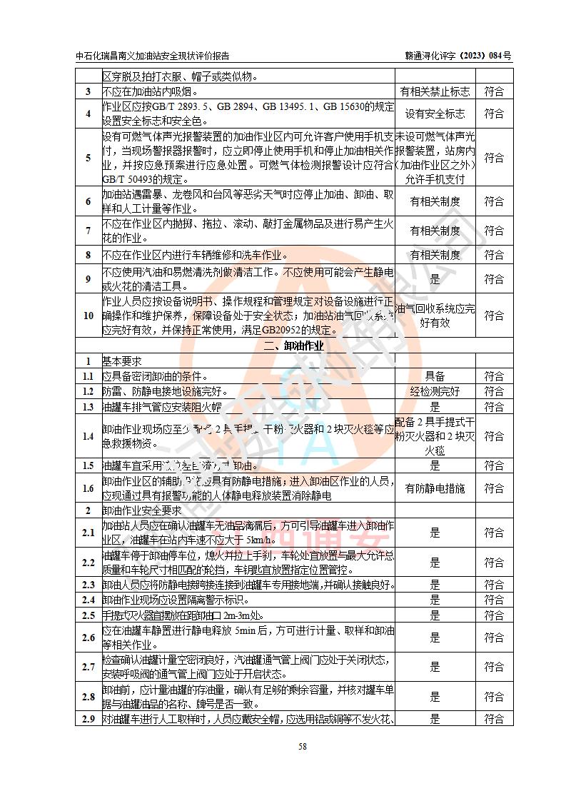 評(píng)價(jià)結(jié)論 | 中國石化銷售股份有限公司江西九江瑞昌石油分公司南義加油站涉及的安全條件、安全經(jīng)營(yíng)條件、安全生產(chǎn)管理符合《危險(xiǎn)化學(xué)品經(jīng)營(yíng)許可證管理辦法》、《汽車加油加氣加氫站技術(shù)標(biāo)準(zhǔn)》等**有關(guān)法規(guī)、標(biāo)準(zhǔn)、規(guī)范要求,能滿足危險(xiǎn)化學(xué)品經(jīng)營(yíng)安全條件。 | |||