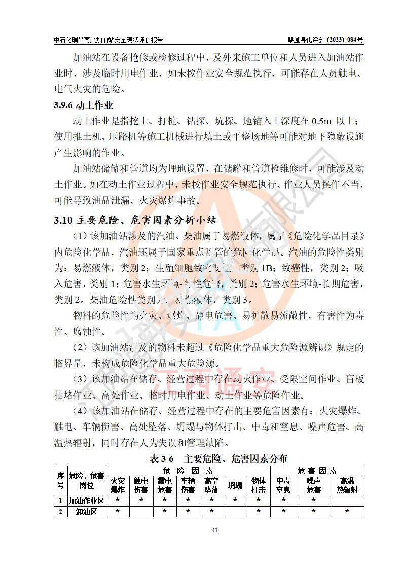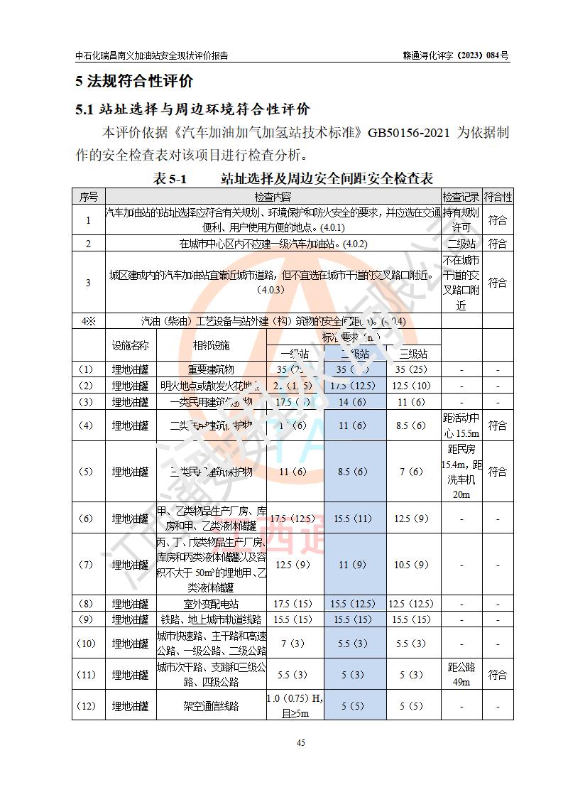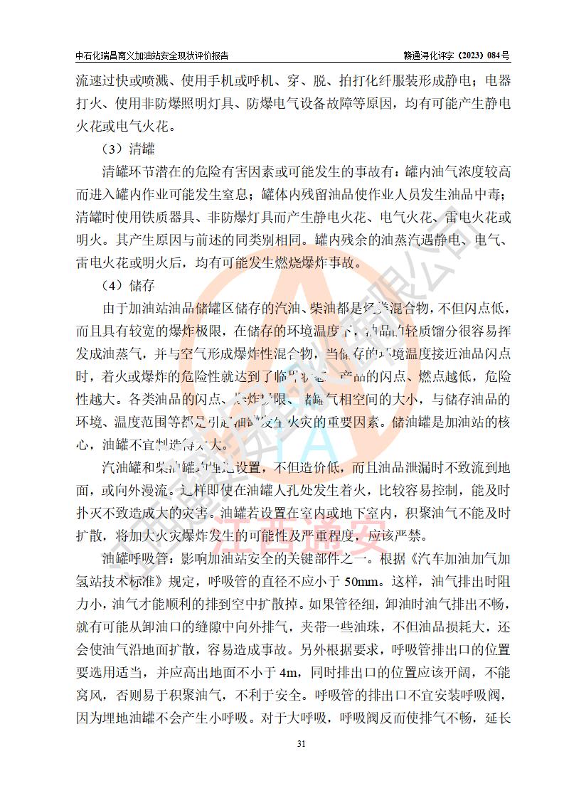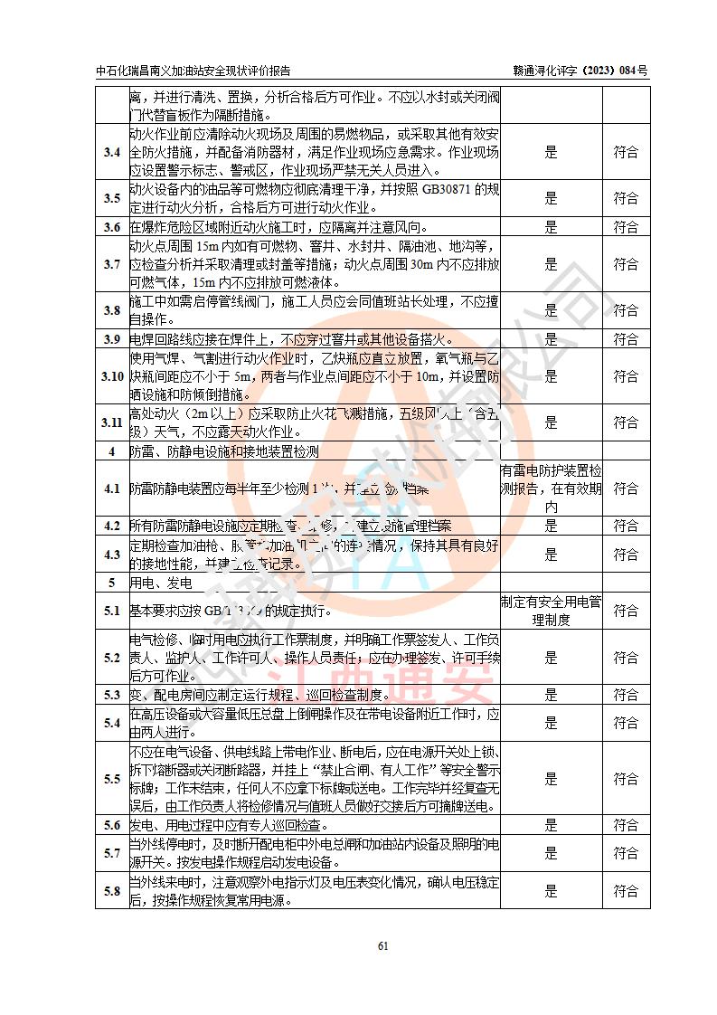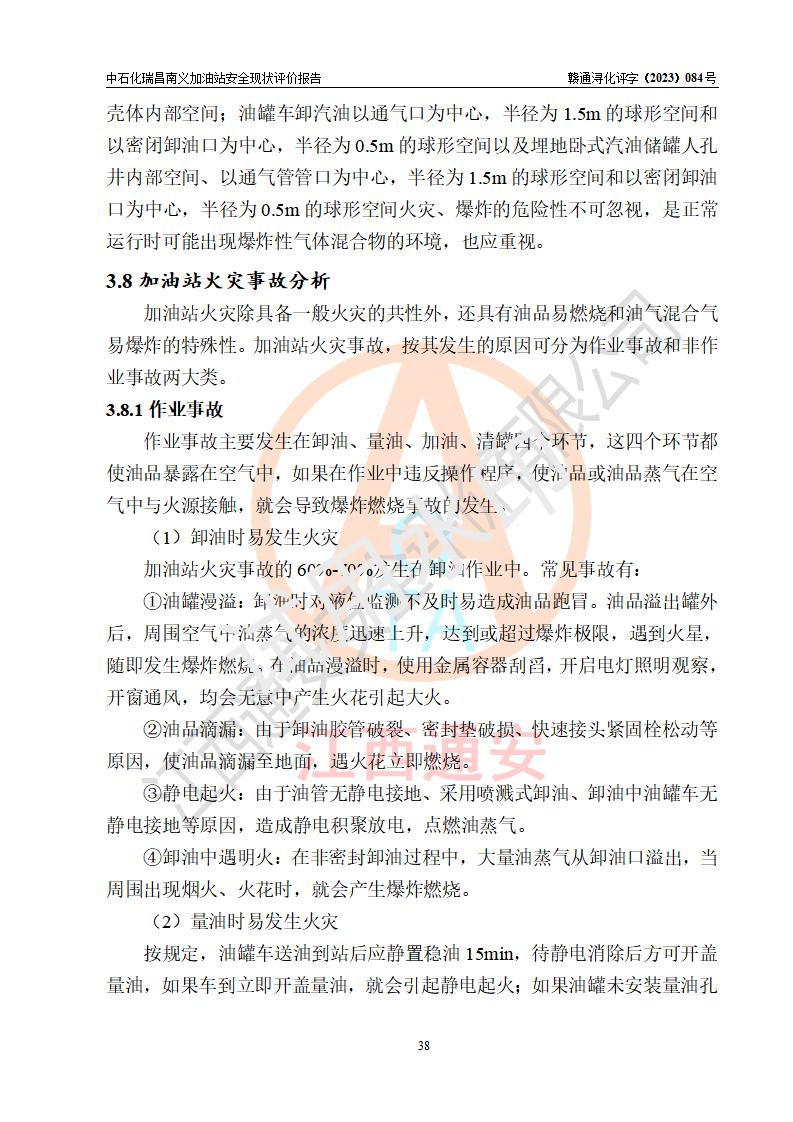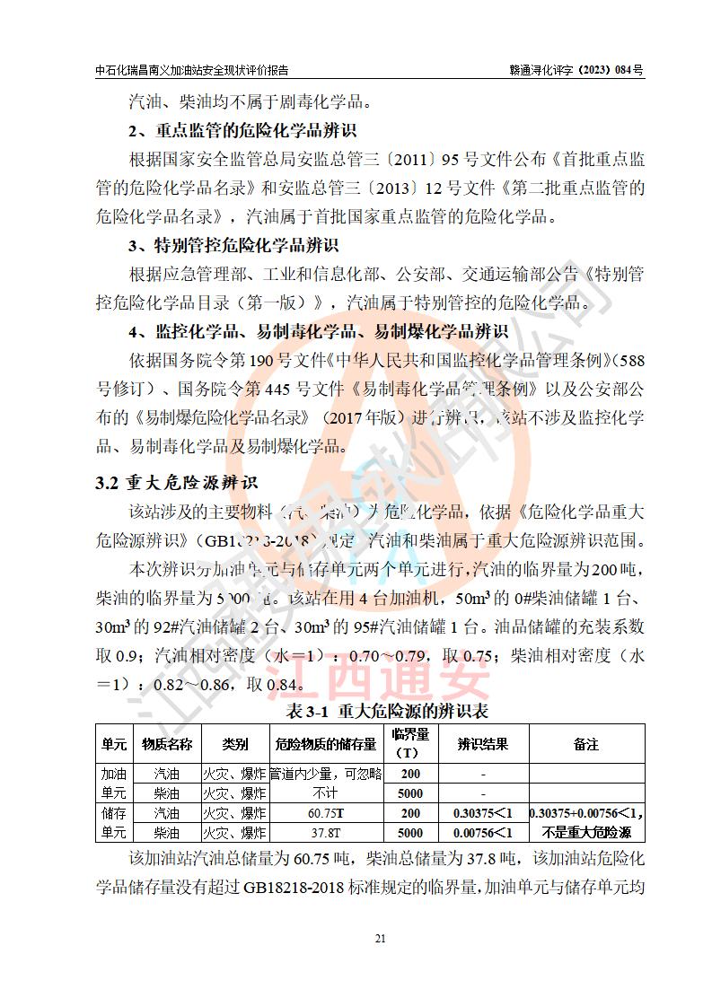 評(píng)價(jià)結(jié)論 | 中國石化銷售股份有限公司江西九江瑞昌石油分公司南義加油站涉及的安全條件、安全經(jīng)營(yíng)條件、安全生產(chǎn)管理符合《危險(xiǎn)化學(xué)品經(jīng)營(yíng)許可證管理辦法》、《汽車加油加氣加氫站技術(shù)標(biāo)準(zhǔn)》等**有關(guān)法規(guī)、標(biāo)準(zhǔn)、規(guī)范要求,能滿足危險(xiǎn)化學(xué)品經(jīng)營(yíng)安全條件。 | |||