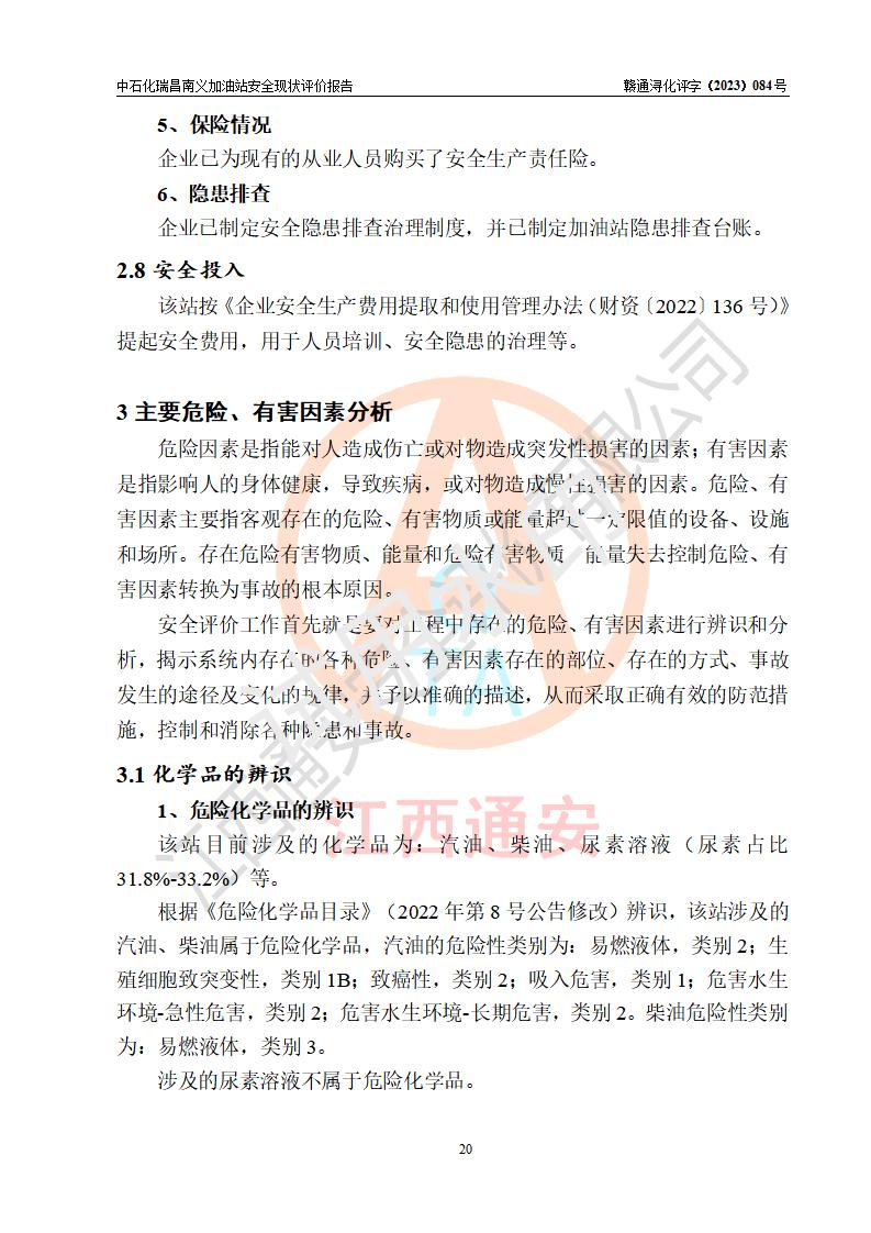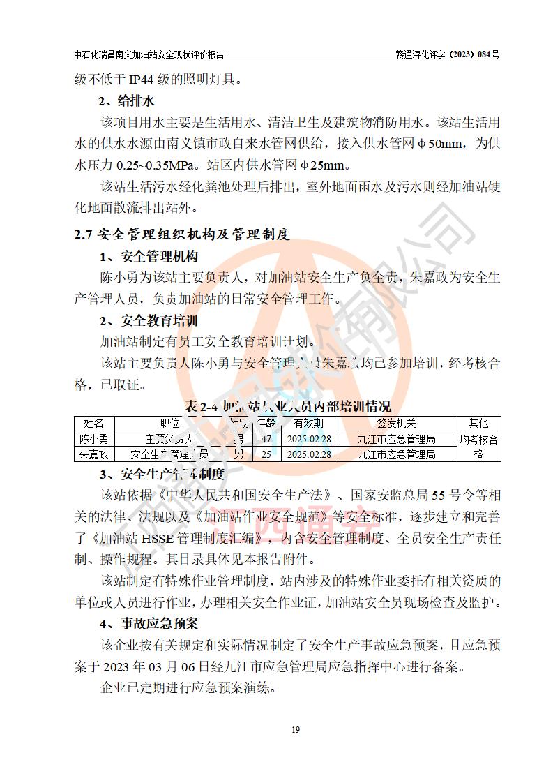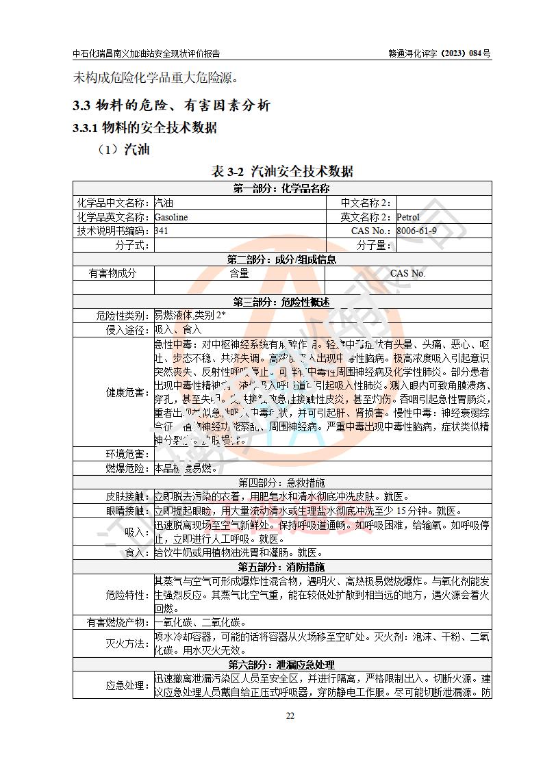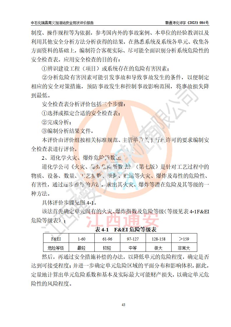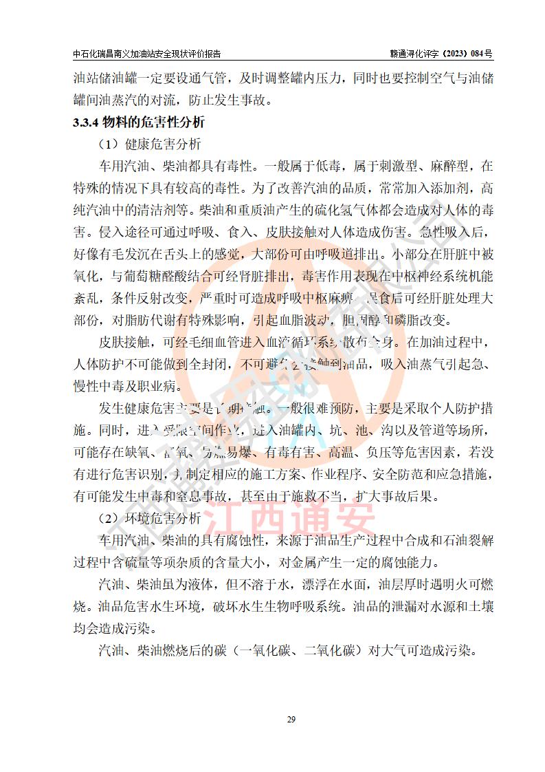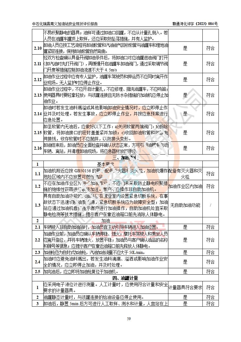 評(píng)價(jià)結(jié)論 | 中國石化銷售股份有限公司江西九江瑞昌石油分公司南義加油站涉及的安全條件、安全經(jīng)營(yíng)條件、安全生產(chǎn)管理符合《危險(xiǎn)化學(xué)品經(jīng)營(yíng)許可證管理辦法》、《汽車加油加氣加氫站技術(shù)標(biāo)準(zhǔn)》等**有關(guān)法規(guī)、標(biāo)準(zhǔn)、規(guī)范要求,能滿足危險(xiǎn)化學(xué)品經(jīng)營(yíng)安全條件。 | |||