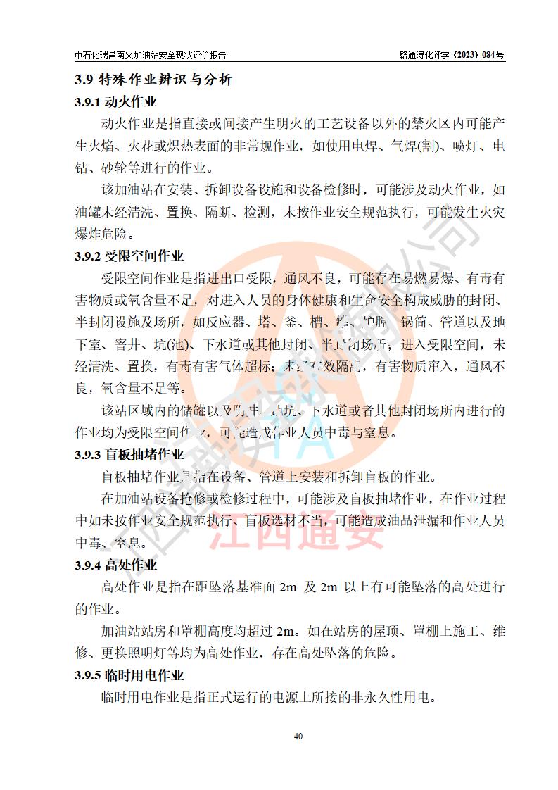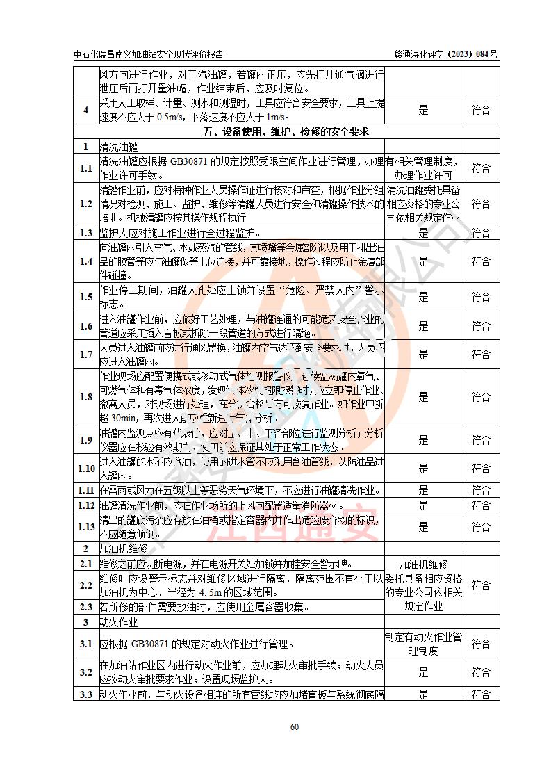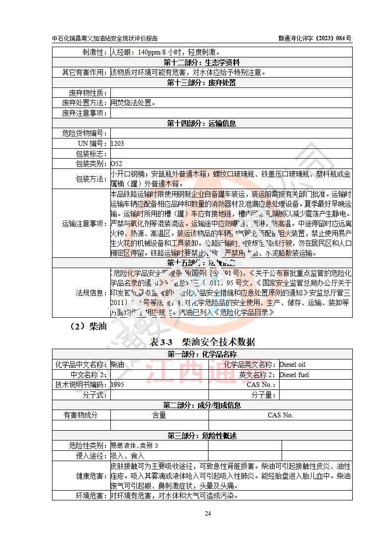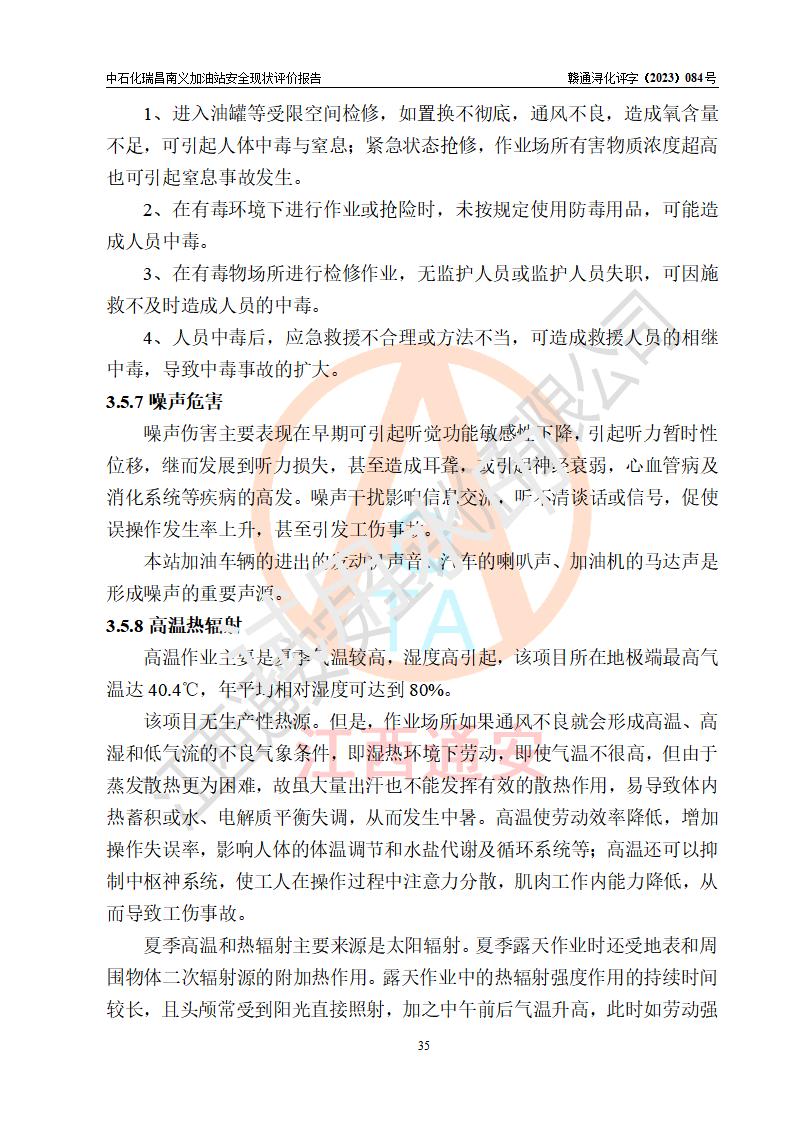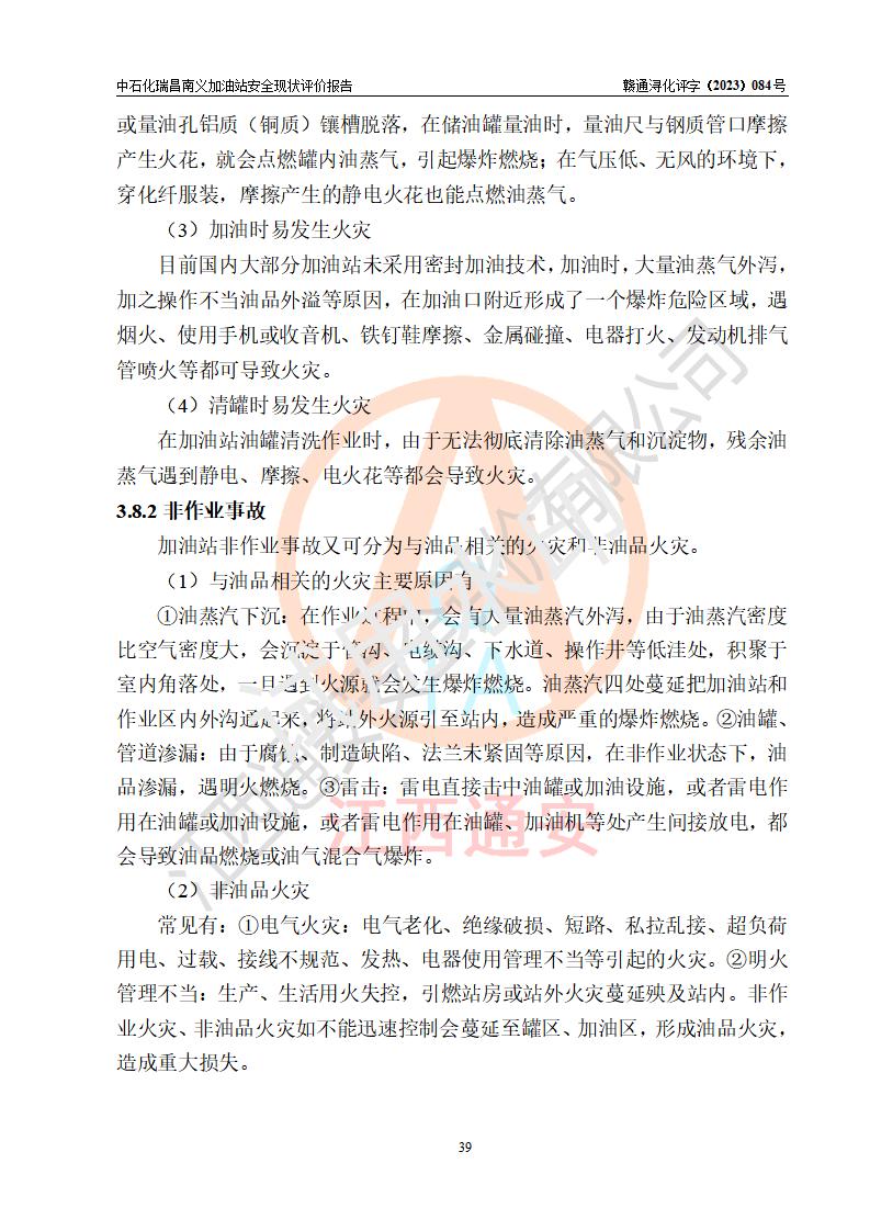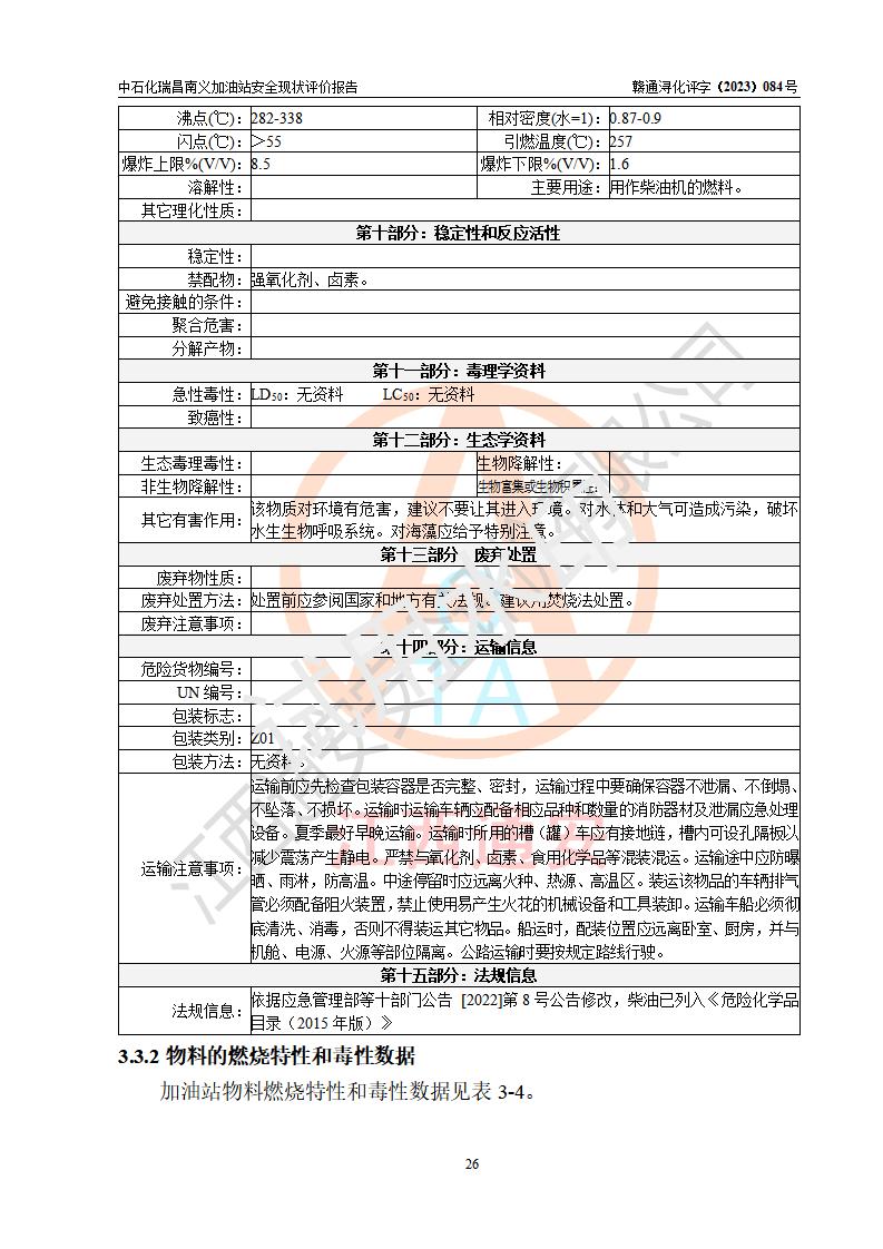 評(píng)價(jià)結(jié)論 | 中國石化銷售股份有限公司江西九江瑞昌石油分公司南義加油站涉及的安全條件、安全經(jīng)營(yíng)條件、安全生產(chǎn)管理符合《危險(xiǎn)化學(xué)品經(jīng)營(yíng)許可證管理辦法》、《汽車加油加氣加氫站技術(shù)標(biāo)準(zhǔn)》等**有關(guān)法規(guī)、標(biāo)準(zhǔn)、規(guī)范要求,能滿足危險(xiǎn)化學(xué)品經(jīng)營(yíng)安全條件。 | |||