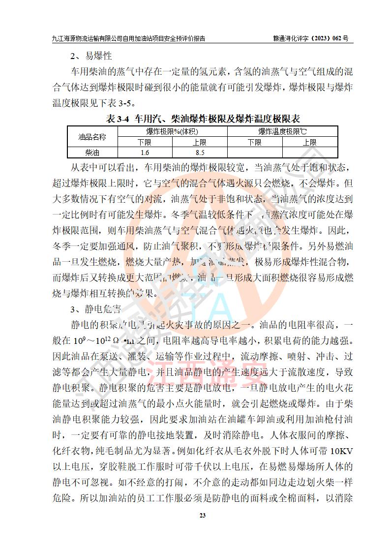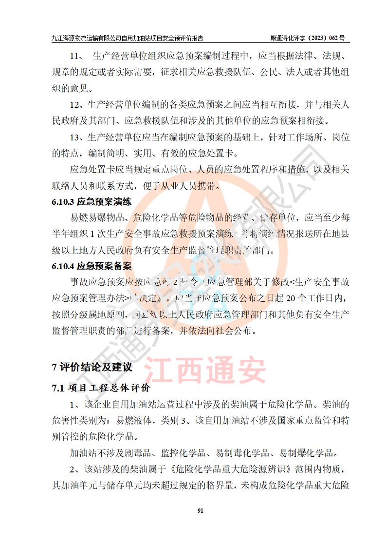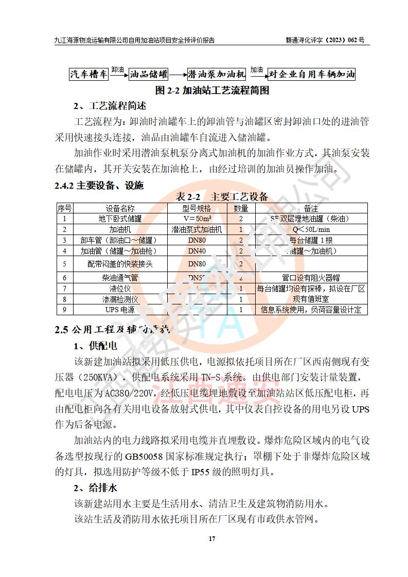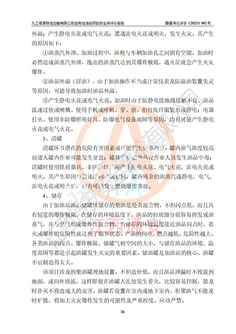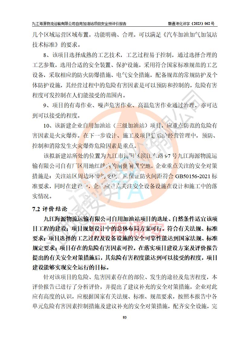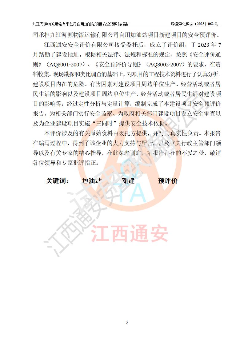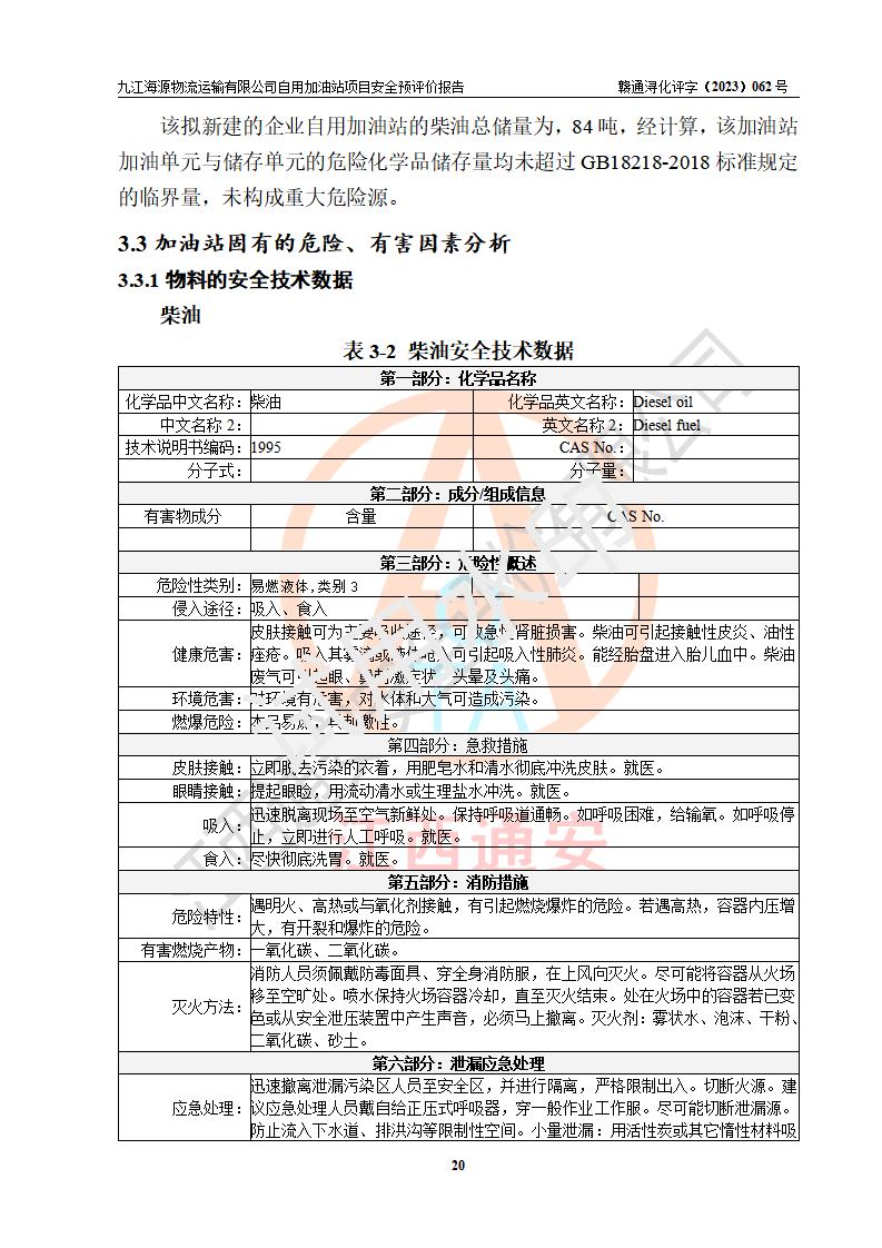 項目簡介 | 九江海源物流運輸有限公司是一家從事普通貨物道路運輸、危險貨物運輸、汽車維修、物流服務(wù)、倉儲服務(wù)、貨運信息服務(wù)等業(yè)務(wù)的公司,成立于2018年04月13日。公司辦公地址位于江西省九江市潯陽區(qū)長虹北路22號豐源克拉城公寓13棟131號。 九江海源物流運輸有限公司為了滿足公司自有普通貨物道路運輸**及危險貨物運輸**(注:公司危險貨物運輸**主要為液堿運輸**)內(nèi)部加油的需要,擬在江西省九江市潯陽區(qū)濱江東路97號九江海源物流運輸有限公司自有廠區(qū)用地紅線內(nèi)的南側(cè)閑置空地新建一處自用加油站,該企業(yè)擬新建的企業(yè)自用加油站占地面積約為1600m2,站內(nèi)擬設(shè)1臺2槍潛油泵加油機(jī)及配套的工藝管線,站內(nèi)油罐區(qū)擬設(shè)50m3的0#臥式柴油儲罐2臺,油罐總?cè)莘e為100m3(折算成汽油容積為50m3),按現(xiàn)行的《汽車加油加氣加氫站技術(shù)標(biāo)準(zhǔn)》對加油站的等級劃分,屬三級加油站。 依據(jù)《應(yīng)急管理部辦公廳關(guān)于認(rèn)真做好柴油安全許可有關(guān)工作的通知》,九江海源物流運輸有限公司擬新建的位于九江市潯陽區(qū)濱江東路97號的自用加油站為企業(yè)自用柴油加油裝置(不對外經(jīng)營),不對其他外界**提供加油服務(wù)。 | |||