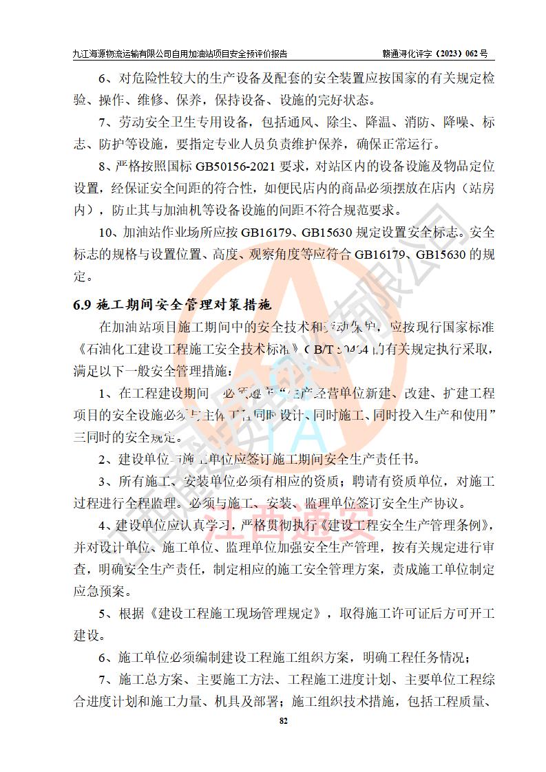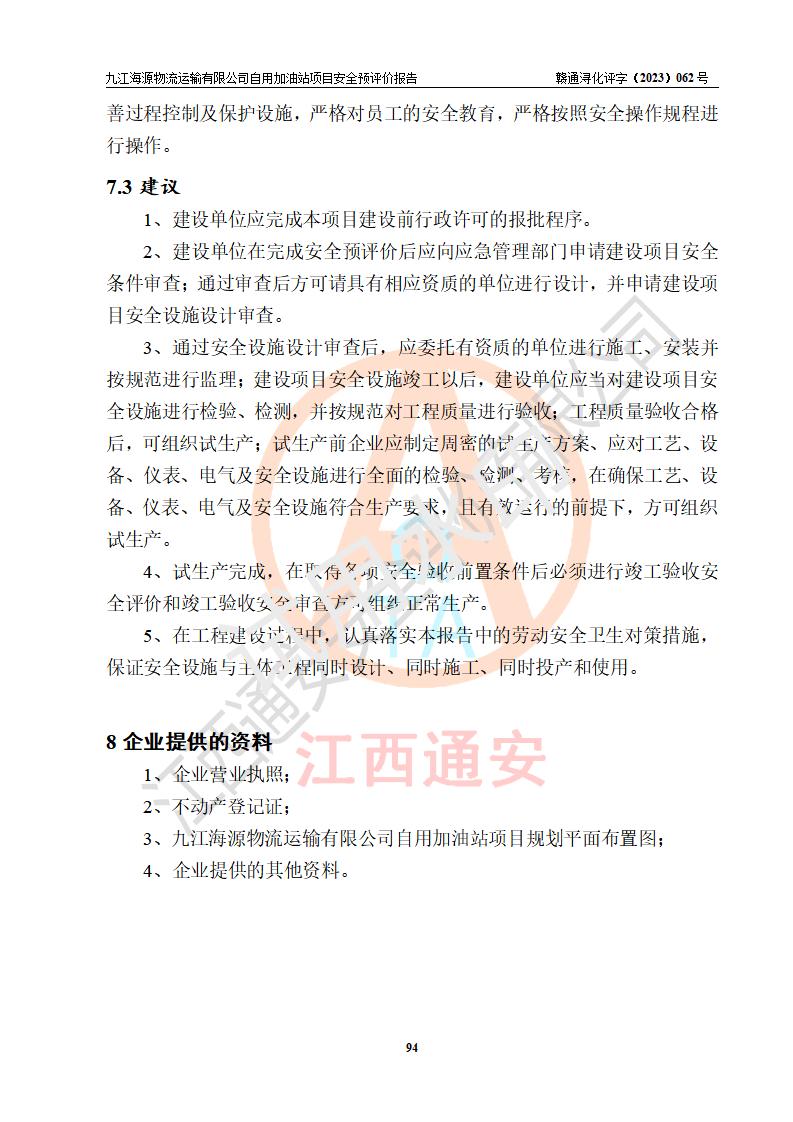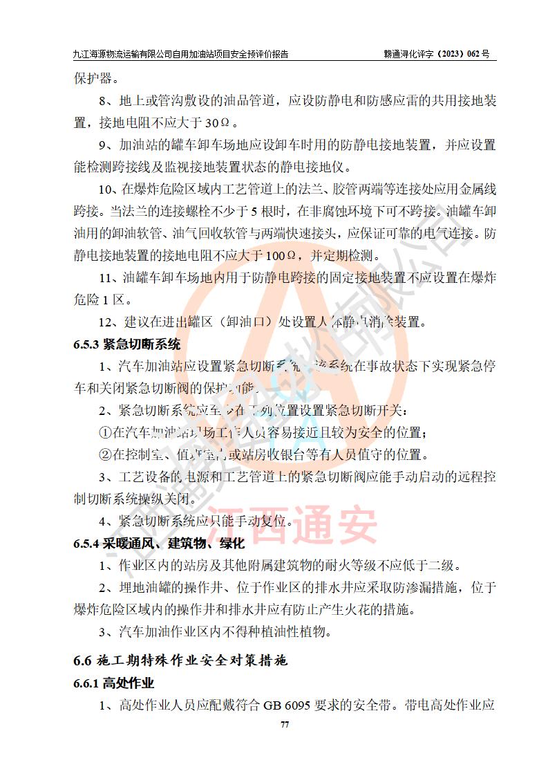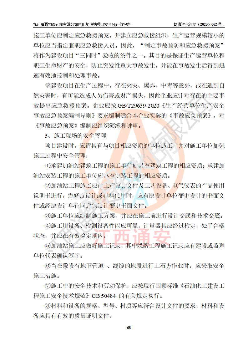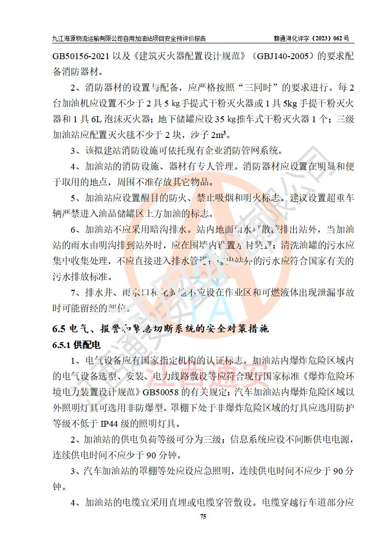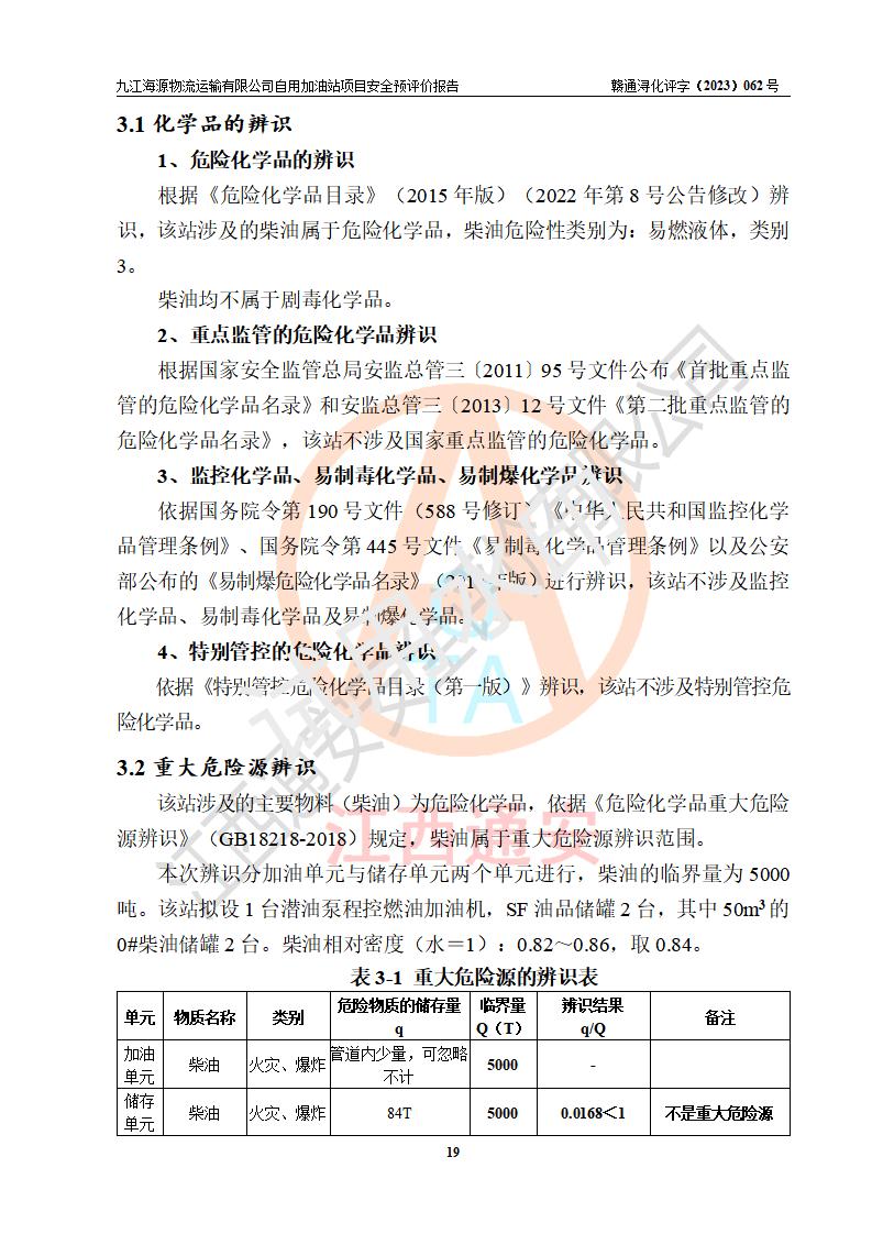 項目簡介 | 九江海源物流運輸有限公司是一家從事普通貨物道路運輸、危險貨物運輸、汽車維修、物流服務(wù)、倉儲服務(wù)、貨運信息服務(wù)等業(yè)務(wù)的公司,成立于2018年04月13日。公司辦公地址位于江西省九江市潯陽區(qū)長虹北路22號豐源克拉城公寓13棟131號。 九江海源物流運輸有限公司為了滿足公司自有普通貨物道路運輸**及危險貨物運輸**(注:公司危險貨物運輸**主要為液堿運輸**)內(nèi)部加油的需要,擬在江西省九江市潯陽區(qū)濱江東路97號九江海源物流運輸有限公司自有廠區(qū)用地紅線內(nèi)的南側(cè)閑置空地新建一處自用加油站,該企業(yè)擬新建的企業(yè)自用加油站占地面積約為1600m2,站內(nèi)擬設(shè)1臺2槍潛油泵加油機(jī)及配套的工藝管線,站內(nèi)油罐區(qū)擬設(shè)50m3的0#臥式柴油儲罐2臺,油罐總?cè)莘e為100m3(折算成汽油容積為50m3),按現(xiàn)行的《汽車加油加氣加氫站技術(shù)標(biāo)準(zhǔn)》對加油站的等級劃分,屬三級加油站。 依據(jù)《應(yīng)急管理部辦公廳關(guān)于認(rèn)真做好柴油安全許可有關(guān)工作的通知》,九江海源物流運輸有限公司擬新建的位于九江市潯陽區(qū)濱江東路97號的自用加油站為企業(yè)自用柴油加油裝置(不對外經(jīng)營),不對其他外界**提供加油服務(wù)。 | |||