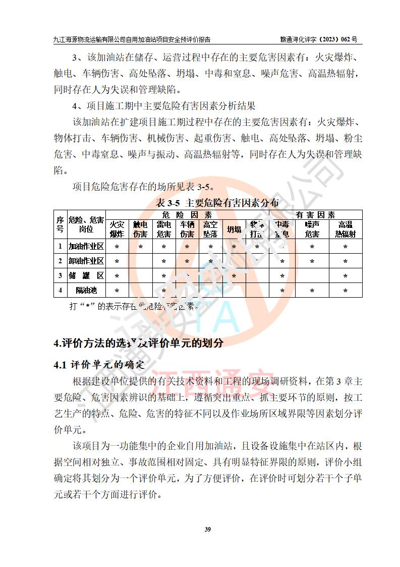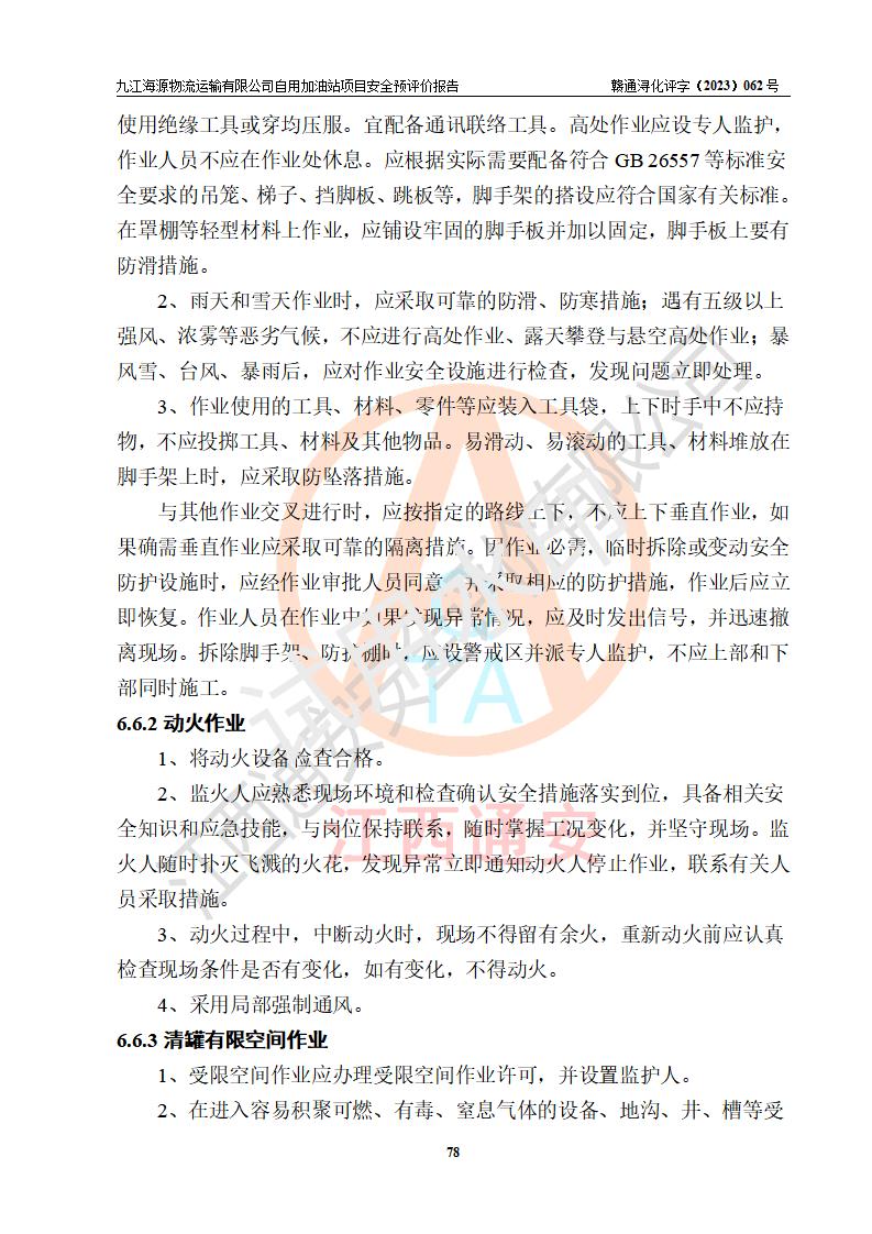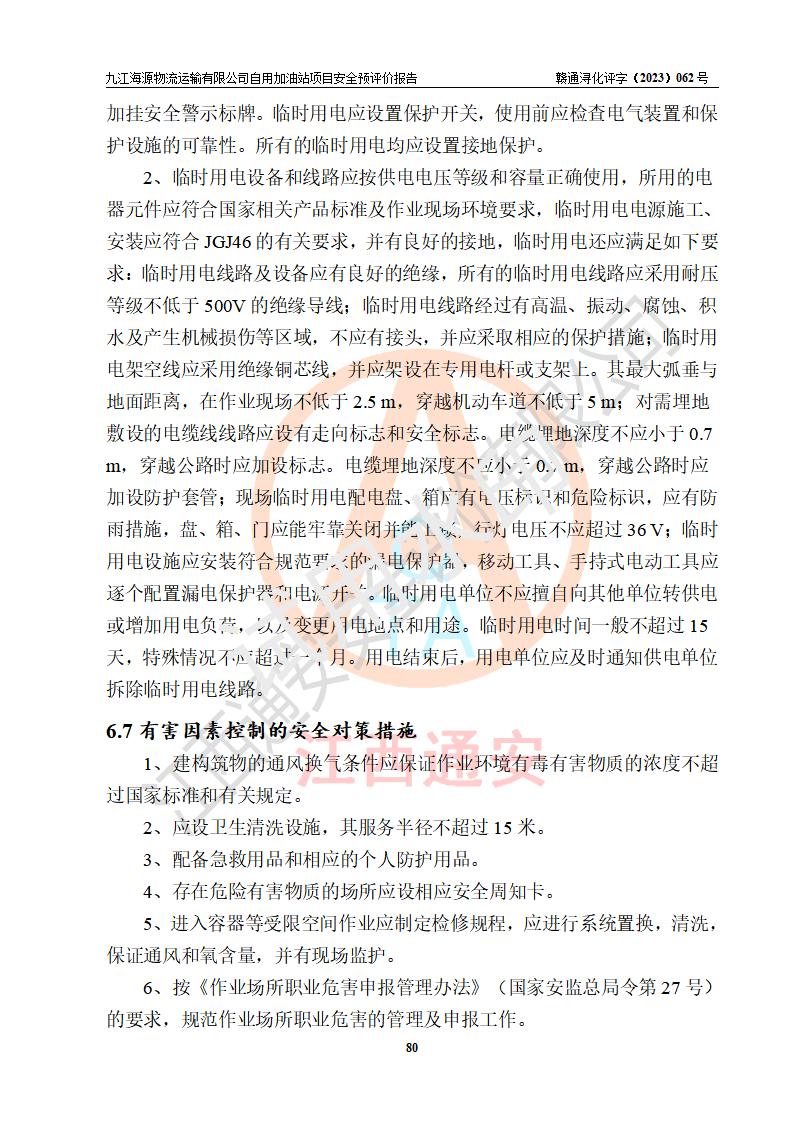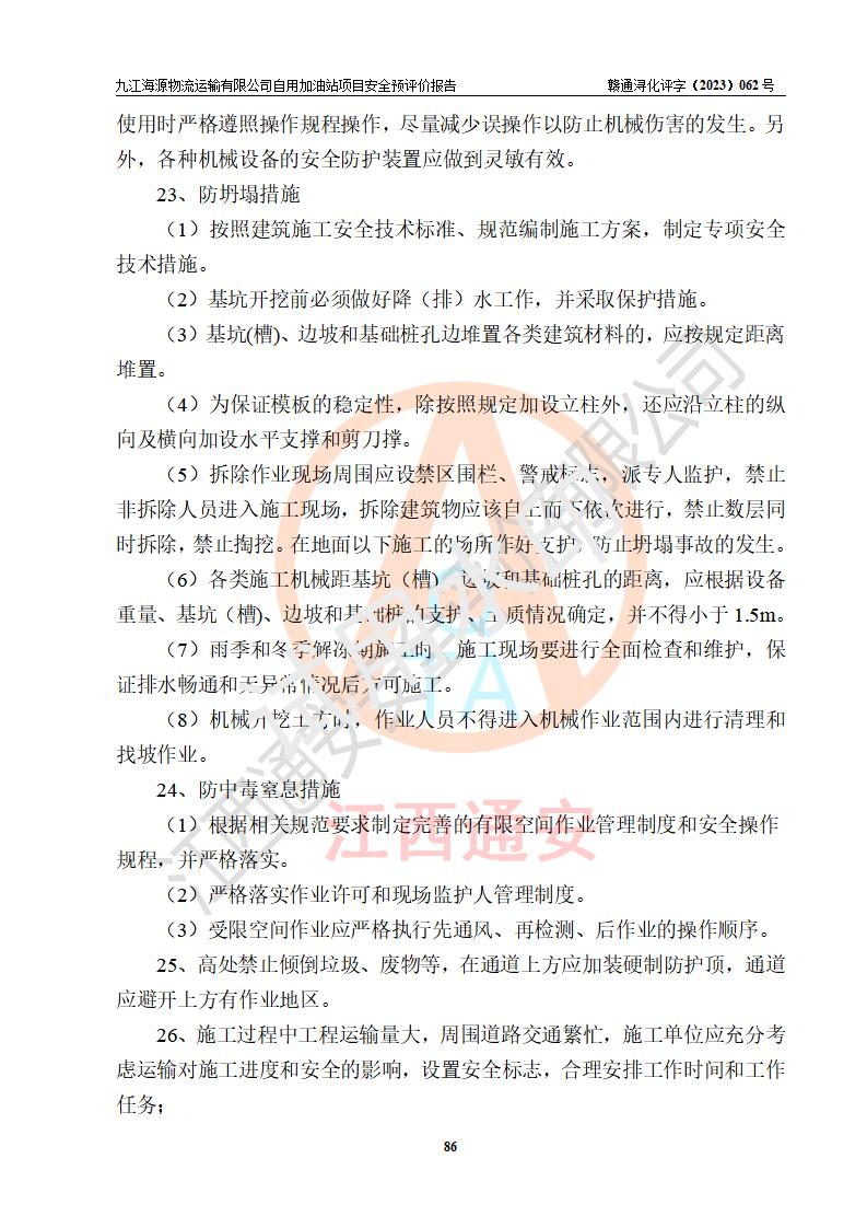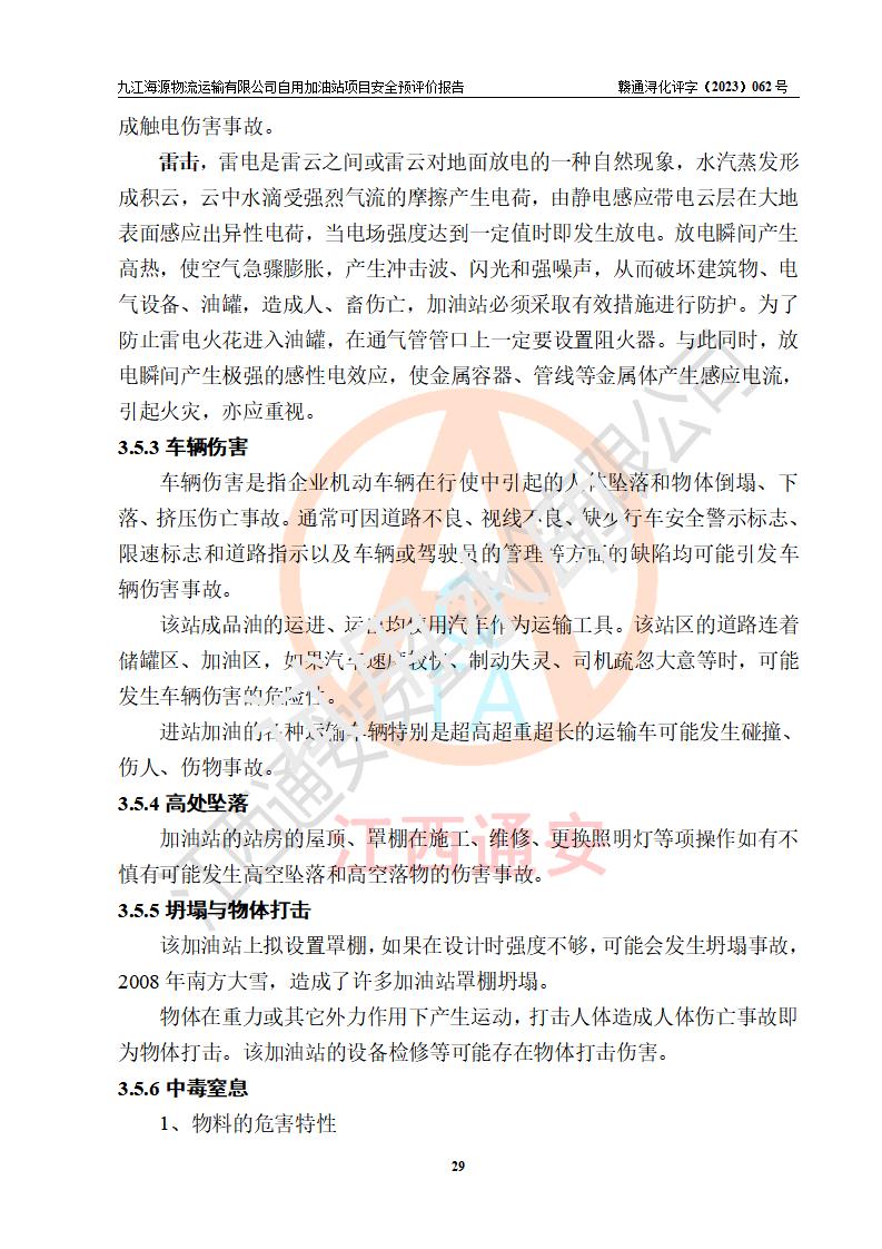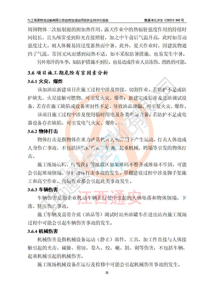 評價結(jié)論 | 九江海源物流運輸有限公司自用加油站項目的選址、自然條件適宜該項目工程的建設(shè);項目規(guī)劃設(shè)計中的總體布局方案可行,符合有關(guān)法規(guī)、標(biāo)準(zhǔn)要求;項目選擇的工藝過程及設(shè)備設(shè)施的安全可靠性能達(dá)到**法規(guī)、標(biāo)準(zhǔn)規(guī)定要求;項目存在的危險有害因素可控,在落實項目建設(shè)方案及評價報告提出的有關(guān)安全對策措施后,其危險有害程度能達(dá)到可以接受的程度,項目建設(shè)能夠?qū)崿F(xiàn)安全運行的目標(biāo)。 | |||