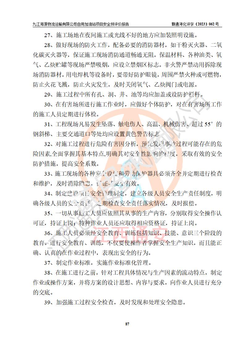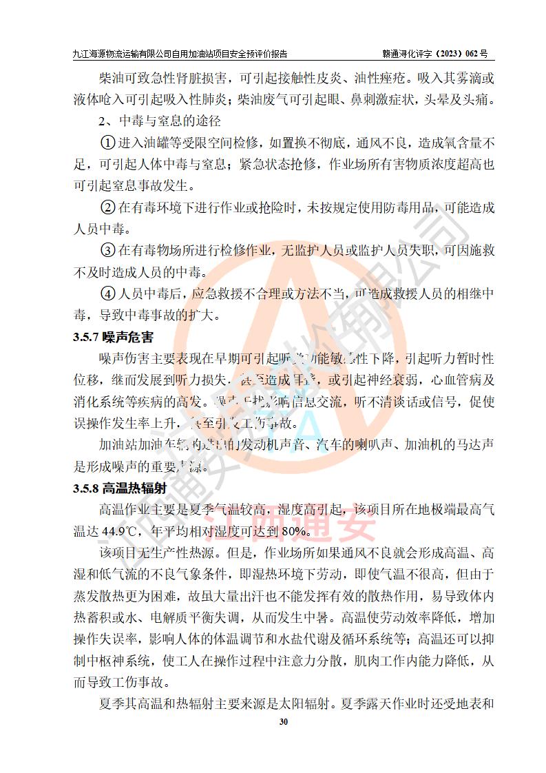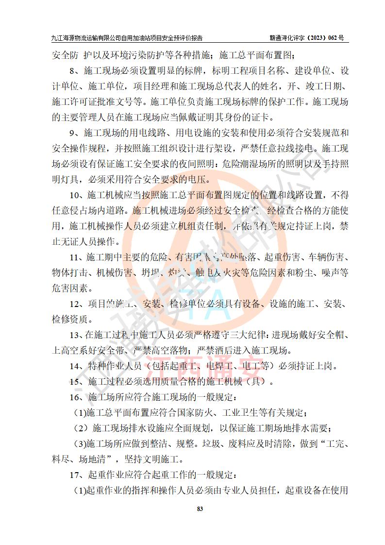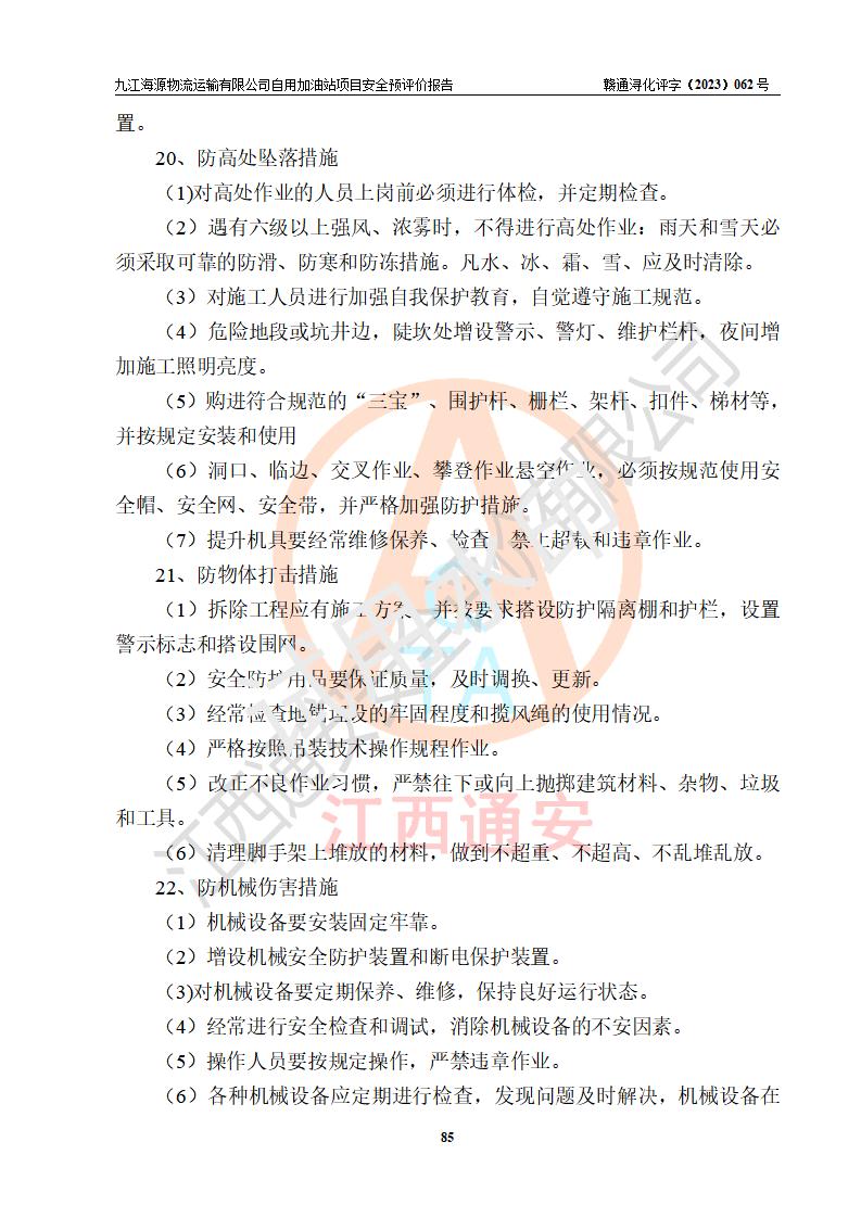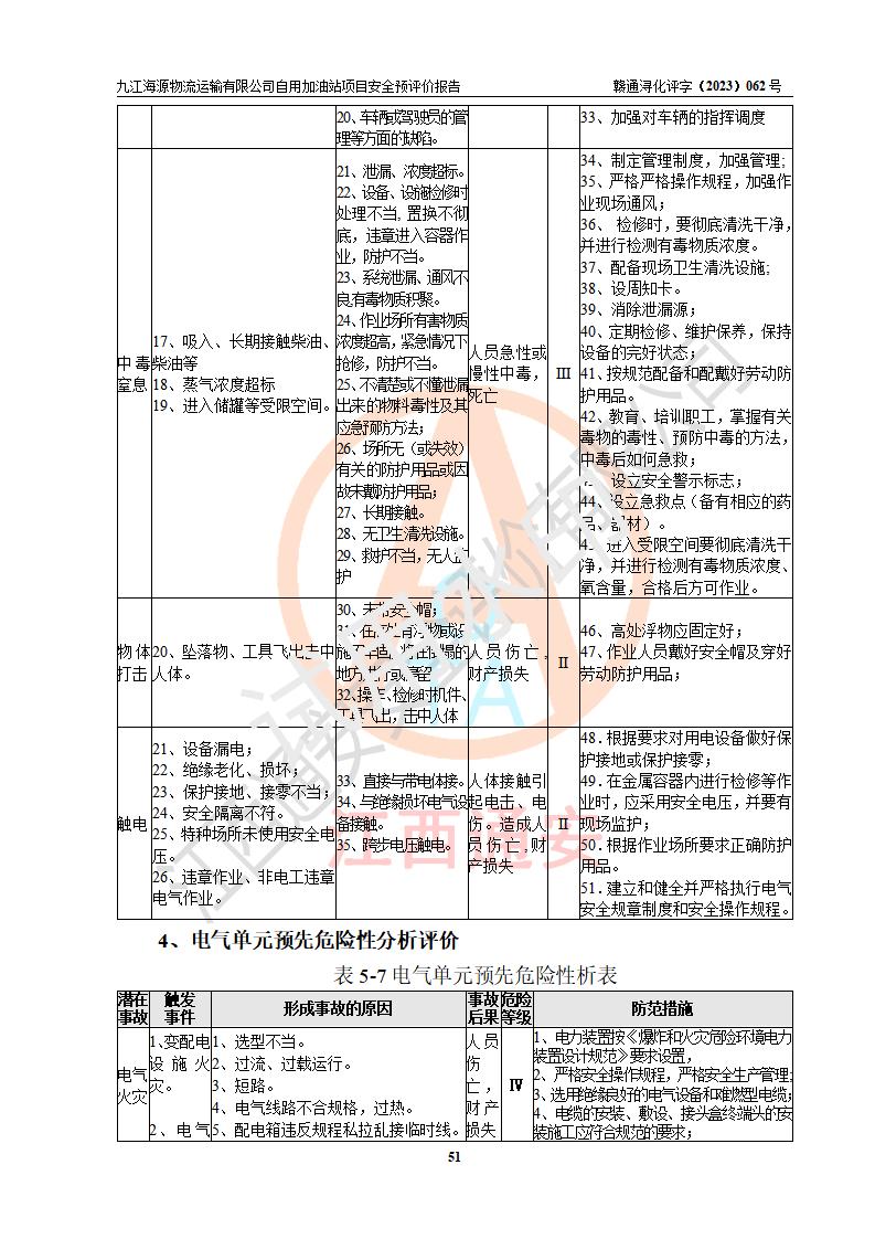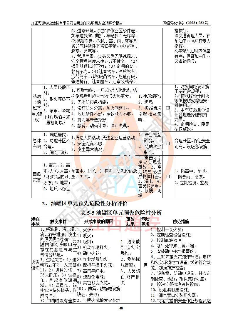 評價結(jié)論 | 九江海源物流運輸有限公司自用加油站項目的選址、自然條件適宜該項目工程的建設(shè);項目規(guī)劃設(shè)計中的總體布局方案可行,符合有關(guān)法規(guī)、標(biāo)準(zhǔn)要求;項目選擇的工藝過程及設(shè)備設(shè)施的安全可靠性能達(dá)到**法規(guī)、標(biāo)準(zhǔn)規(guī)定要求;項目存在的危險有害因素可控,在落實項目建設(shè)方案及評價報告提出的有關(guān)安全對策措施后,其危險有害程度能達(dá)到可以接受的程度,項目建設(shè)能夠?qū)崿F(xiàn)安全運行的目標(biāo)。 | |||