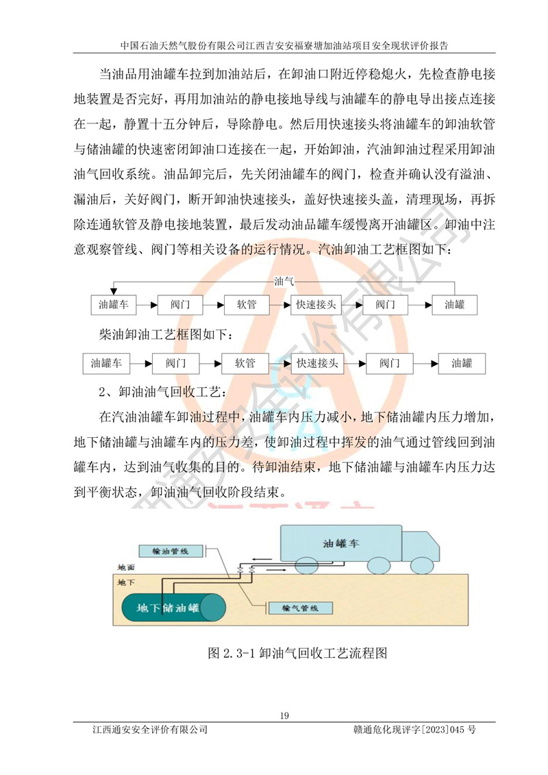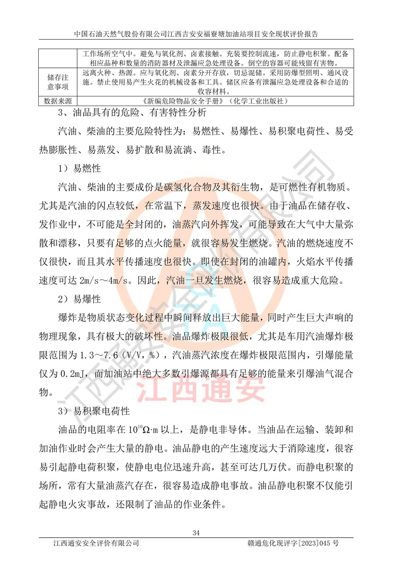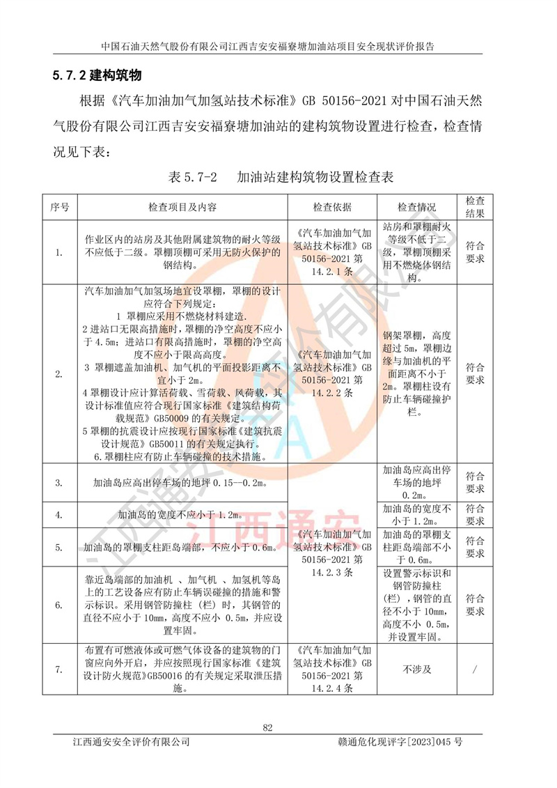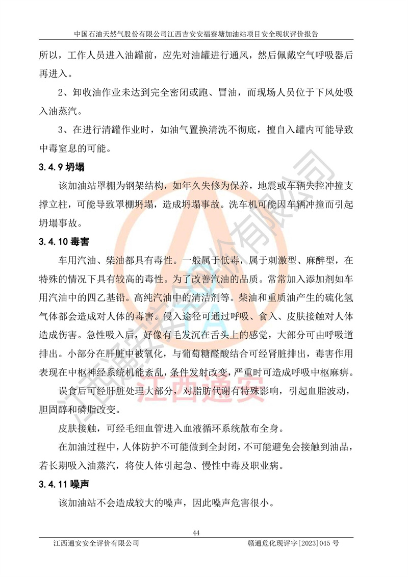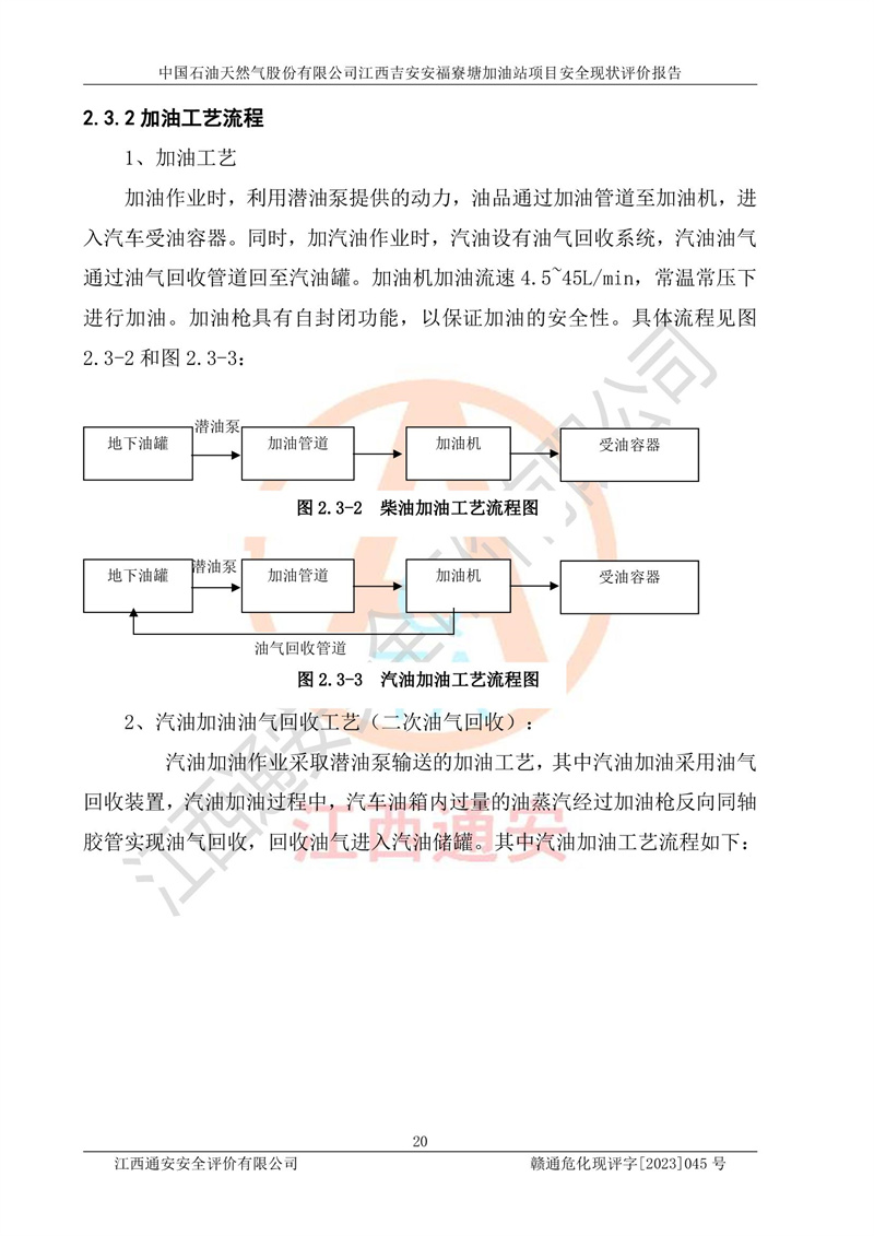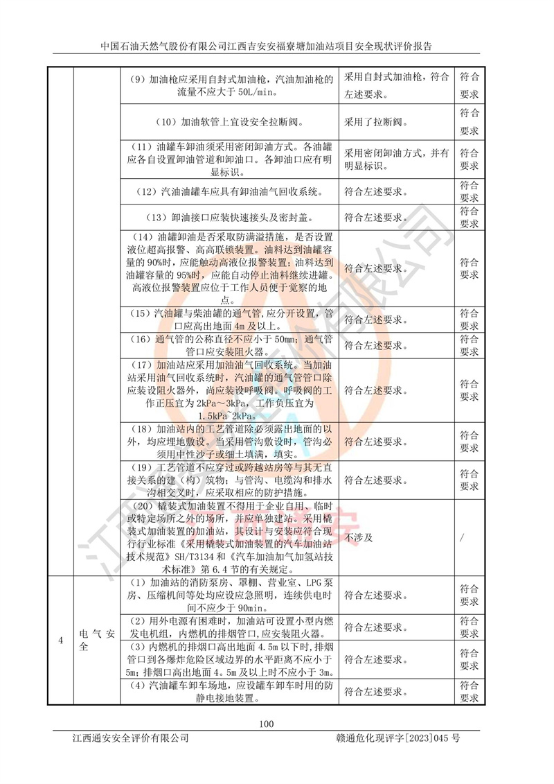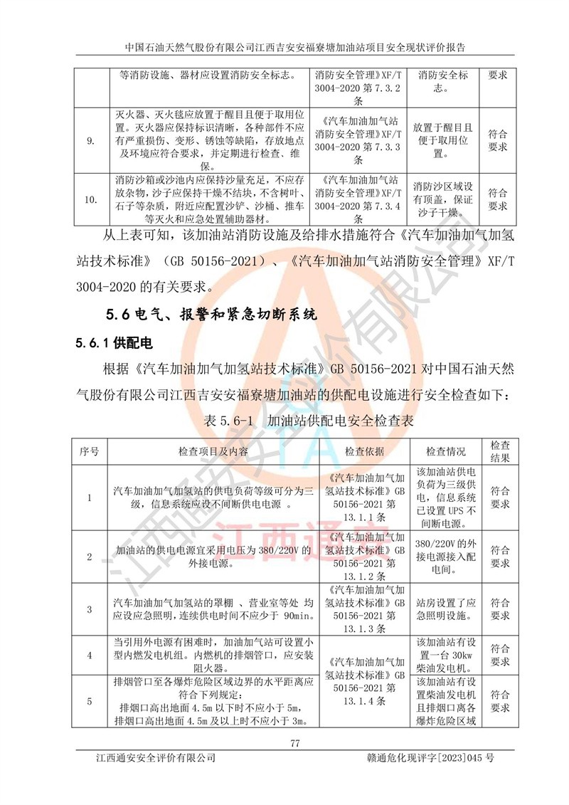 中國石油天然氣股份有限公司江西吉安安福寮塘加油站是一家從事成品油批發(fā)、成品油零售經(jīng)營的企業(yè)。該加油站成立于2011年5月4日,并獲得安??h市場監(jiān)督管理局頒發(fā)的營業(yè)執(zhí)照,營業(yè)執(zhí)照統(tǒng)一社會(huì)信用代碼為:91360829573618262D,加油站類型為股份有限公司分公司(上市,國有控股),負(fù)責(zé)人為鄢**,經(jīng)營范圍:許可項(xiàng)目:成品油批發(fā),成品油零售,住宿服務(wù),餐飲服務(wù),食品銷售,煙草制品零售,***零售,農(nóng)藥零售,藥品零售(依法須經(jīng)批準(zhǔn)的項(xiàng)目,經(jīng)相關(guān)部門批準(zhǔn)后在許可**期內(nèi)方可開展經(jīng)營活動(dòng),具體經(jīng)營項(xiàng)目和許可期限以相關(guān)部門批準(zhǔn)文件或許可證件為準(zhǔn))一般項(xiàng)目:潤滑油銷售,日用陶瓷制品銷售,汽車銷售,新能源汽車整車銷售,新能源汽車換電設(shè)施銷售,新能源汽車電附件銷售,互聯(lián)網(wǎng)銷售(除銷售需要許可的商品),汽車裝飾用品銷售,日用品銷售單用途商業(yè)預(yù)付卡代理銷售,日用化學(xué)產(chǎn)品銷售,勞動(dòng)保護(hù)用品銷售,家用電器銷售,塑料制品銷售,嬰幼兒配方乳粉及其他嬰幼兒配方食品銷售,食品用洗滌劑銷售,飼料添加劑銷售,肥料銷售,洗車服務(wù),農(nóng)副產(chǎn)品銷售,五金產(chǎn)品零售,辦公用品銷售,第二類醫(yī)療器械銷售,充電樁銷售農(nóng)作物種子經(jīng)營(**不再分裝的包裝種子),廣告設(shè)計(jì)代理,電子過磅服務(wù),化妝品零售,畜牧漁業(yè)飼料銷售消毒劑銷售 (不含危險(xiǎn)化學(xué)品),汽車零配件零售,電車銷售,機(jī)動(dòng)車修理和維護(hù),家具銷售,日用百貨銷售,集中式**充電站,針紡織品銷售,住房租賃 (除依法須經(jīng)批/準(zhǔn)的項(xiàng)目處,憑營業(yè)執(zhí)照依法自主開展經(jīng)營活動(dòng))。經(jīng)營場所:江西省吉安市安??h寮塘鄉(xiāng)龍佳村。 中國石油天然氣股份有限公司江西吉安安福寮塘加油站占地面積1200㎡,加油站中設(shè)有0#柴油雙槍加油機(jī)2臺(tái),92#汽油、95#汽油四槍加油機(jī)2臺(tái);該站設(shè)有4個(gè)30m3SF雙層埋地臥式儲(chǔ)罐,其中有2個(gè)30m3SF雙層埋地臥式0#柴油罐、1個(gè)92#30m3SF雙層埋地臥式汽油罐,1個(gè)95#30m3SF雙層埋地臥式汽油罐,油品折算總?cè)萘繛?/span>90m3(柴油罐容積折半計(jì)入油罐總?cè)莘e),屬三級加油站,汽油卸油、加油設(shè)置了油氣回收系統(tǒng)。 中國石油天然氣股份有限公司江西吉安安福寮塘加油站于2020年11月04日經(jīng)安??h應(yīng)急管理局核準(zhǔn),換發(fā)了新的《危險(xiǎn)化學(xué)品經(jīng)營許可證》,證書編號(hào):贛安安經(jīng)(甲)[2014]000007,許可經(jīng)營范圍:成品油。**期2020年11月04日至2023年11月03日。 中國石油天然氣股份有限公司江西吉安安福寮塘加油站2023年05月11日經(jīng)吉安市商務(wù)局核準(zhǔn),換取了新的《成品油零售經(jīng)營批準(zhǔn)證書》,證書編號(hào):油零售證書第吉0256號(hào),批準(zhǔn)從事成品油(汽油、柴油)零售業(yè)務(wù)。證書**期至2023年5月11日至2028年05月10日。 |